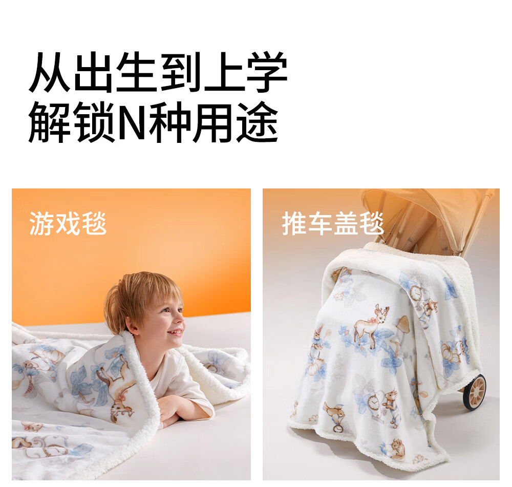 Betis baby blanket autumn and winter baby blanket machine washable quilt children's double-sided fleece blanket double layer rose 120x150cm