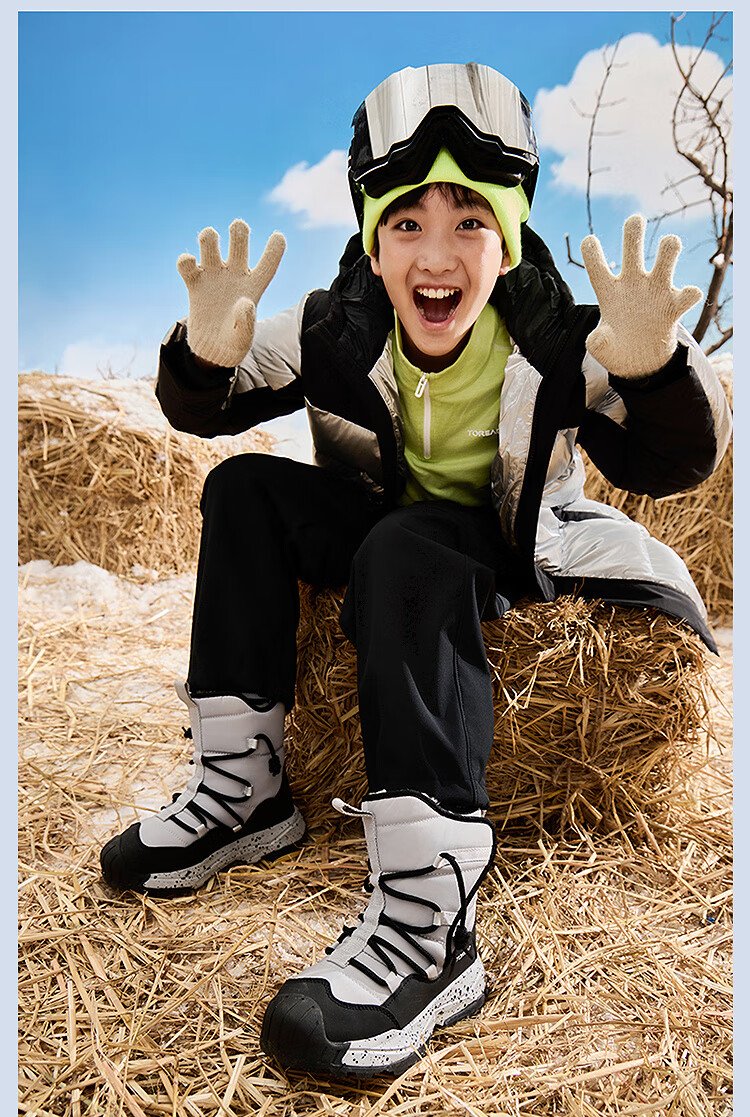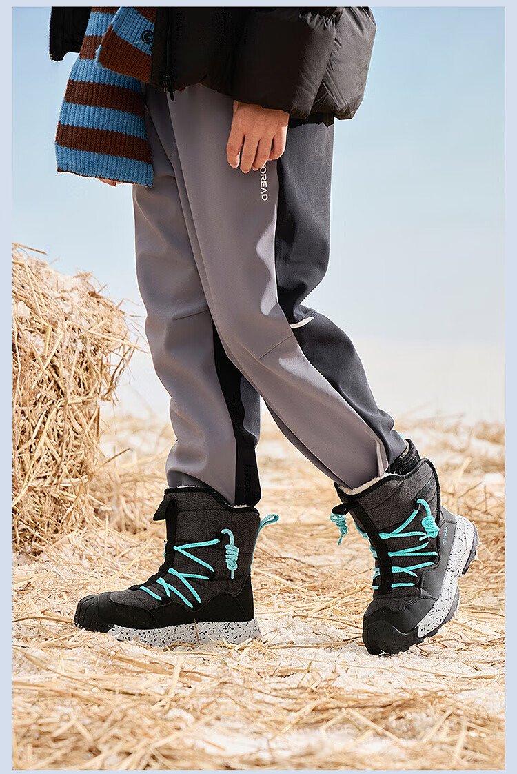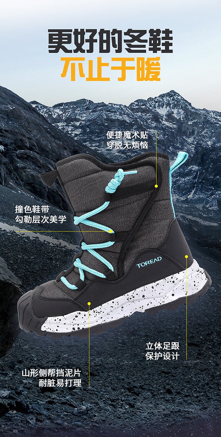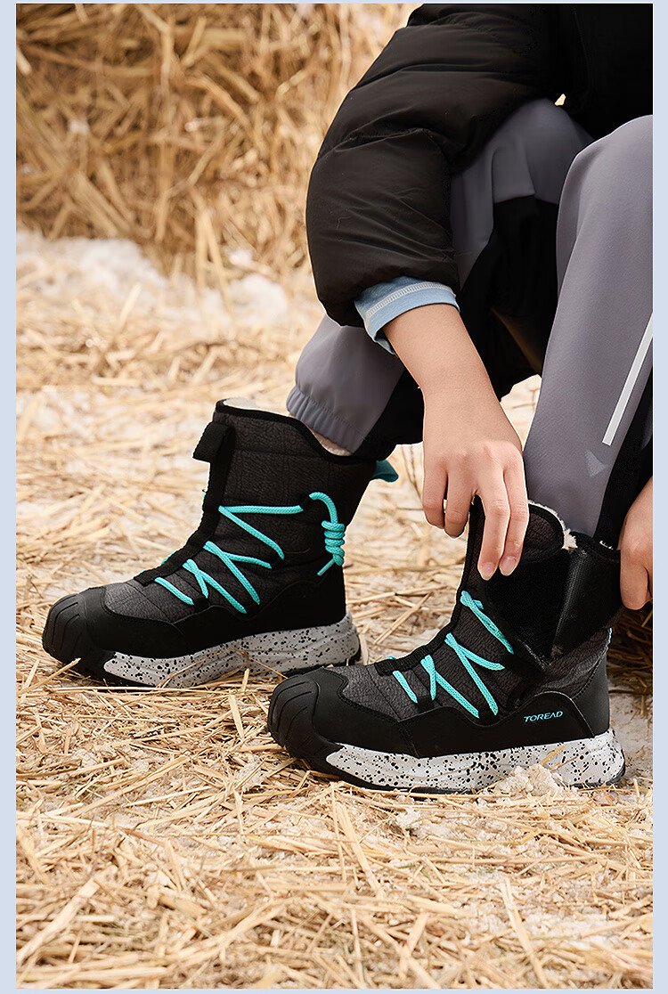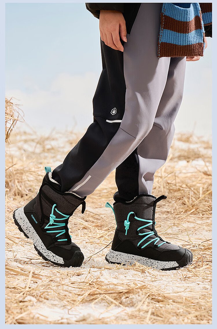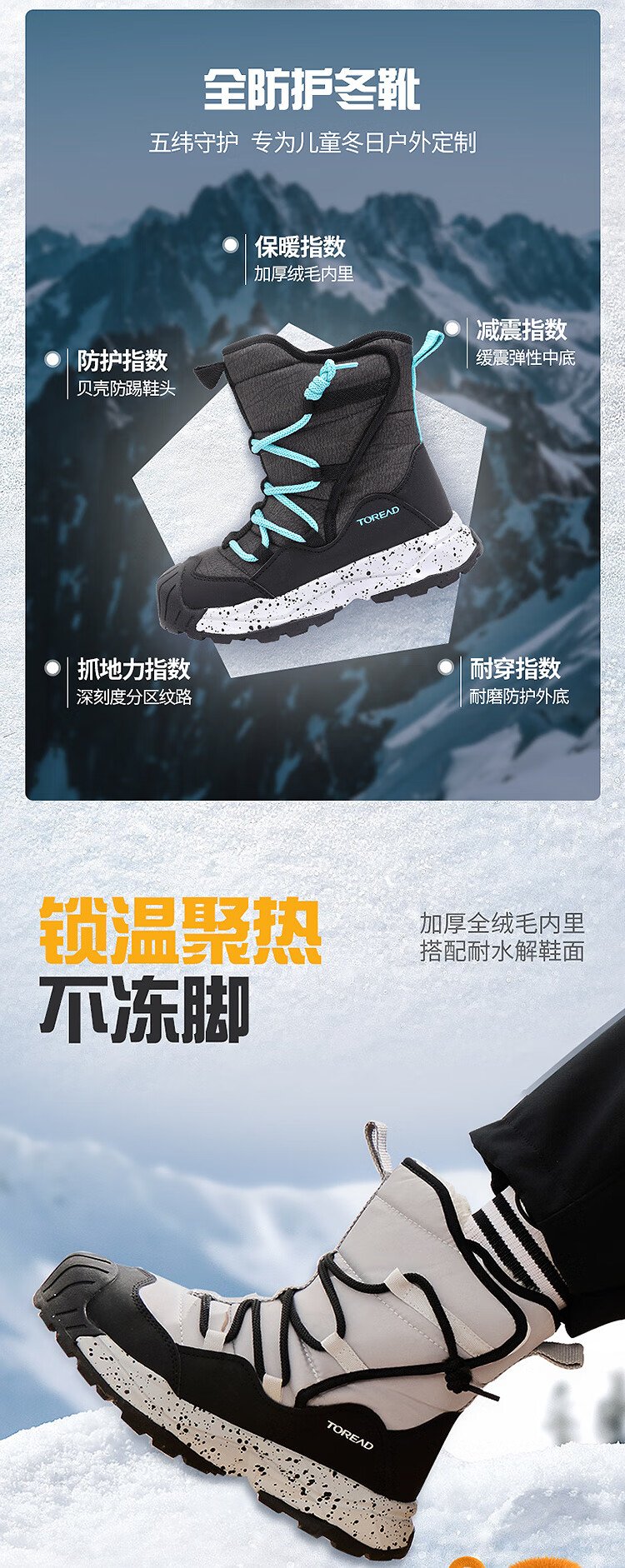 Pathfinder (TOREAD) flagship children's snow boots for men and women, medium and large children's shoes, velvet anti-slip cotton shoes, winter boots, black gray 38