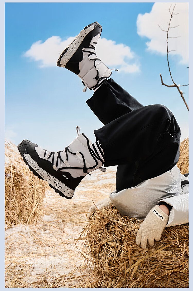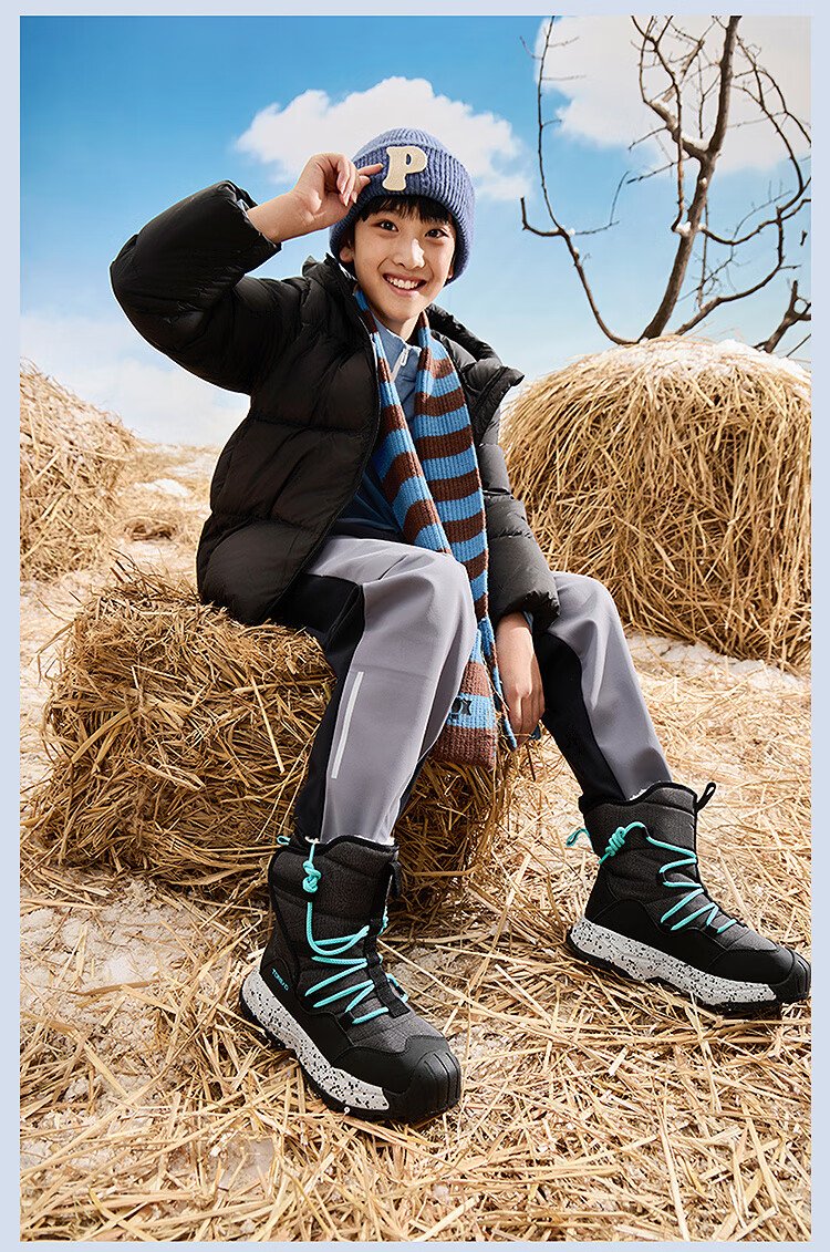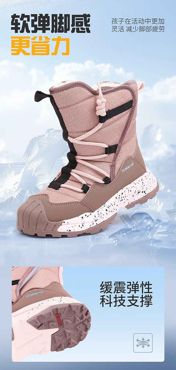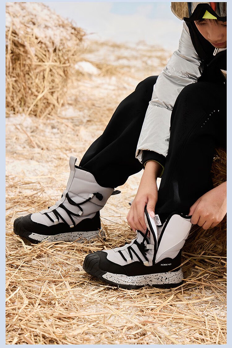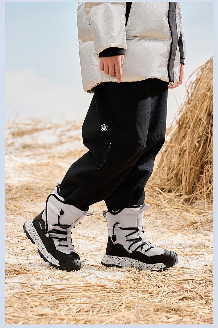 Pathfinder (TOREAD) flagship children's snow boots for men and women, medium and large children's shoes, velvet anti-slip cotton shoes, winter boots, black gray 38