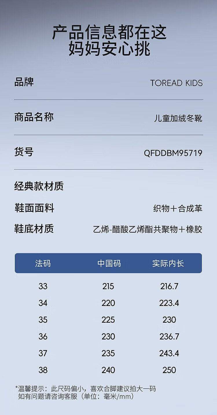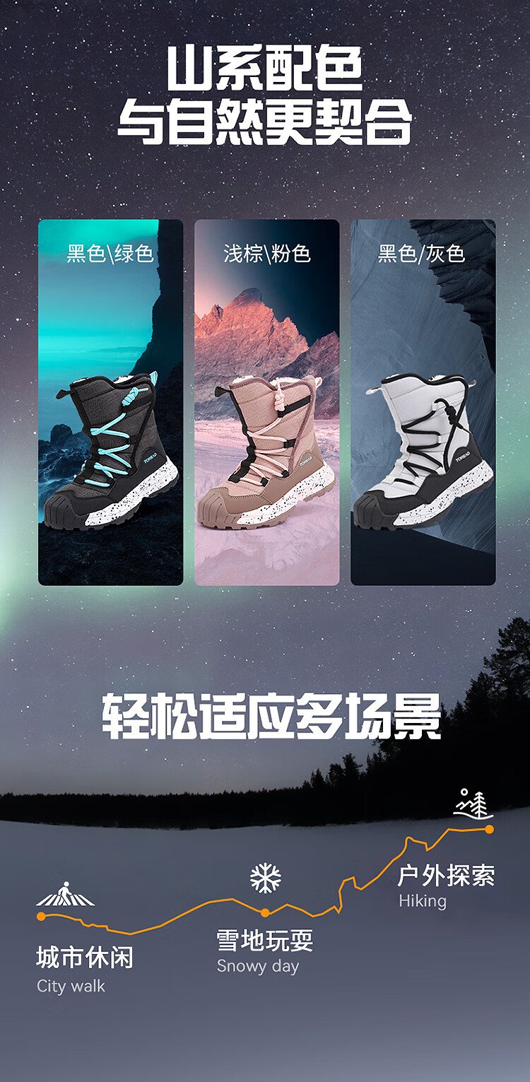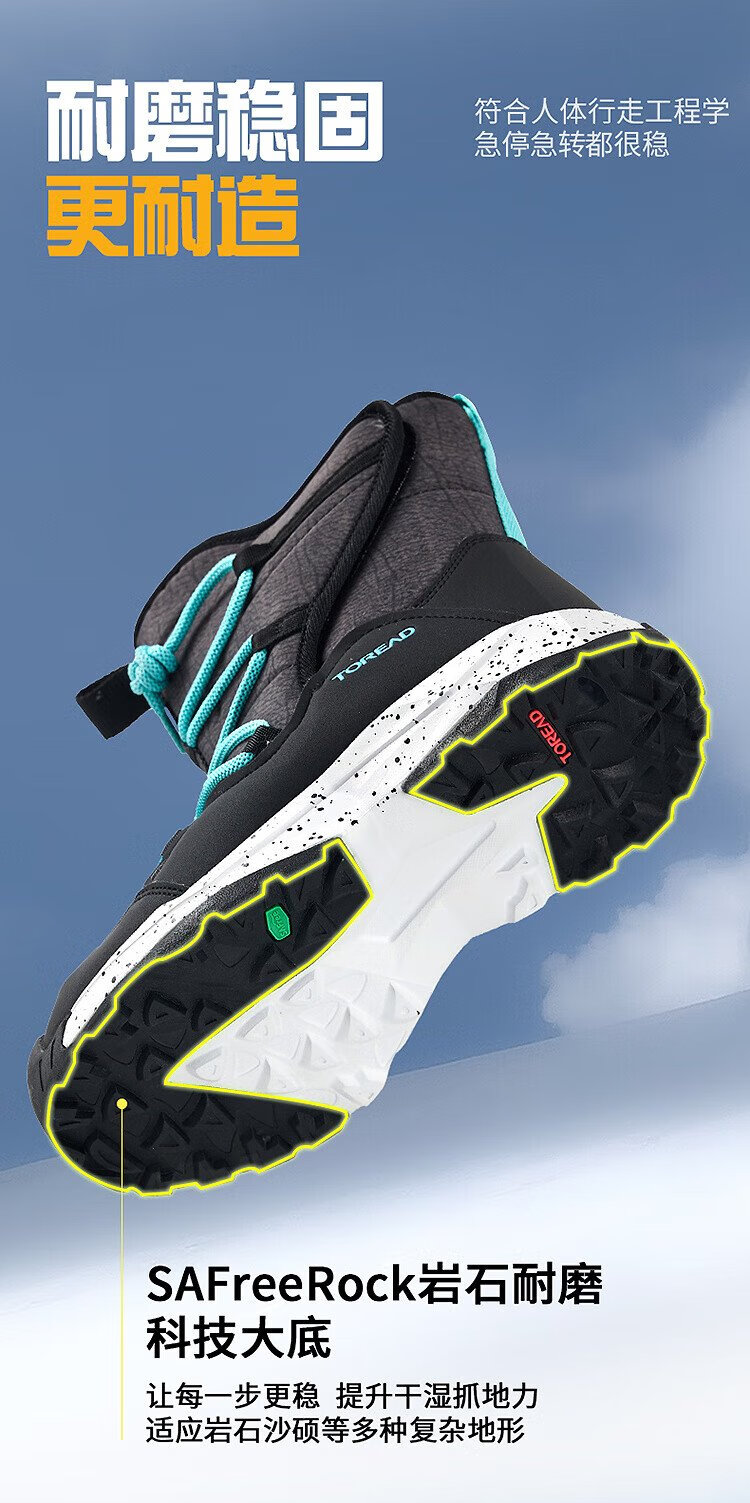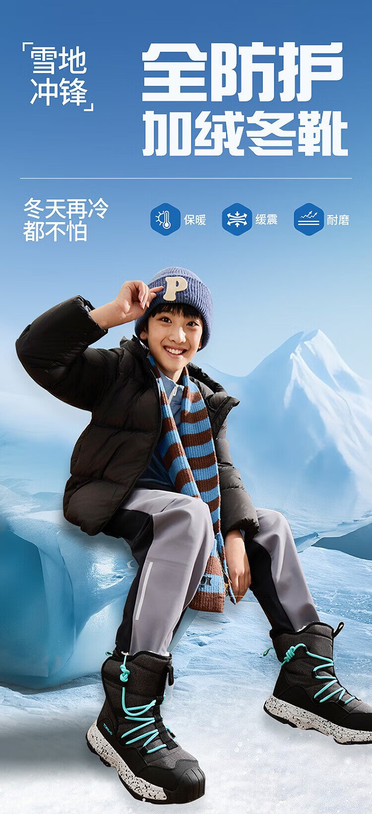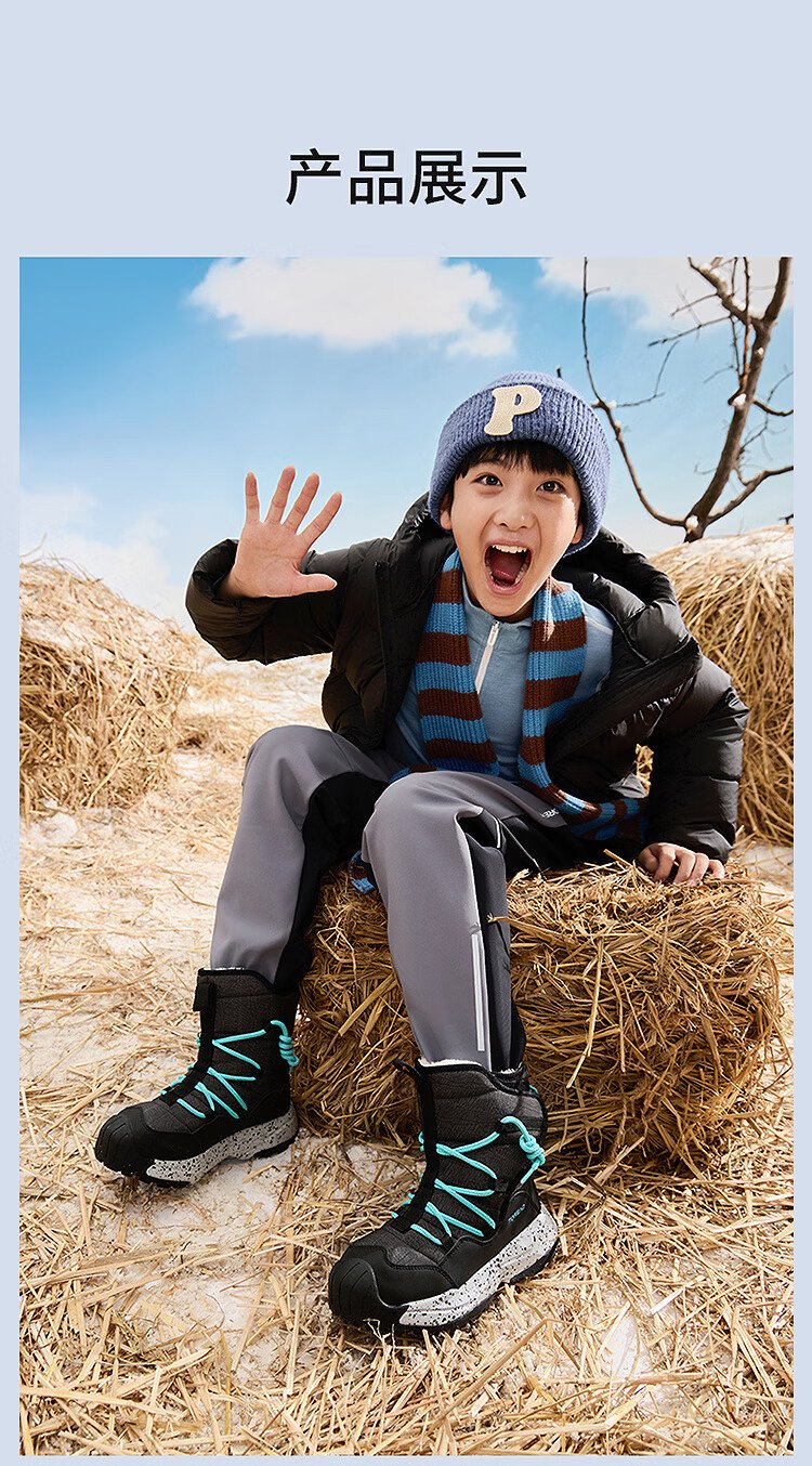 Pathfinder (TOREAD) flagship children's snow boots for men and women, medium and large children's shoes, velvet anti-slip cotton shoes, winter boots, black gray 38
