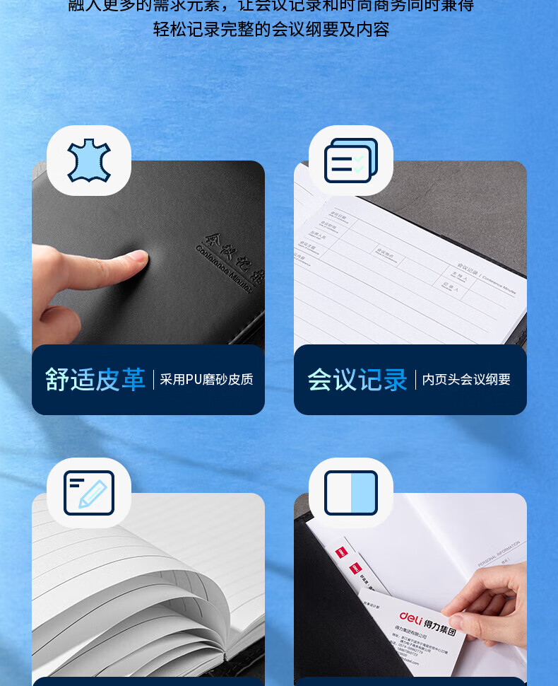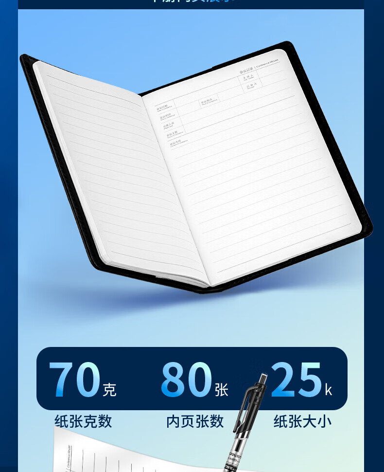 Deli Deli 7950 meeting minutes book (black)-80 sheets-25K (book)
