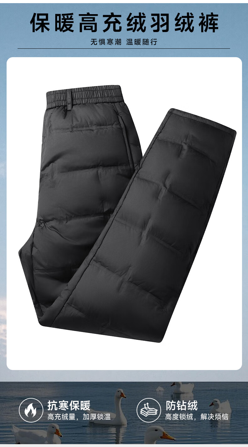 Yalu 90% duck down down trousers for men, plus velvet, middle-aged and elderly large size high-waisted warm and cold-proof trousers for men and women