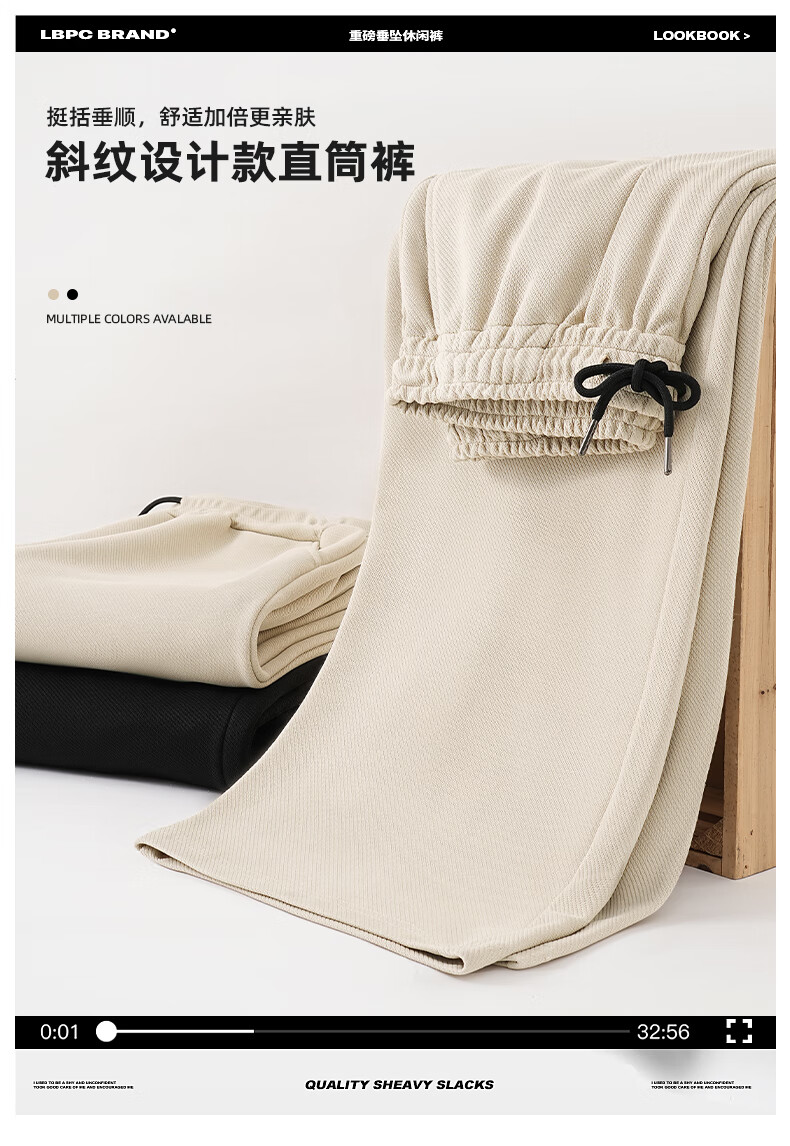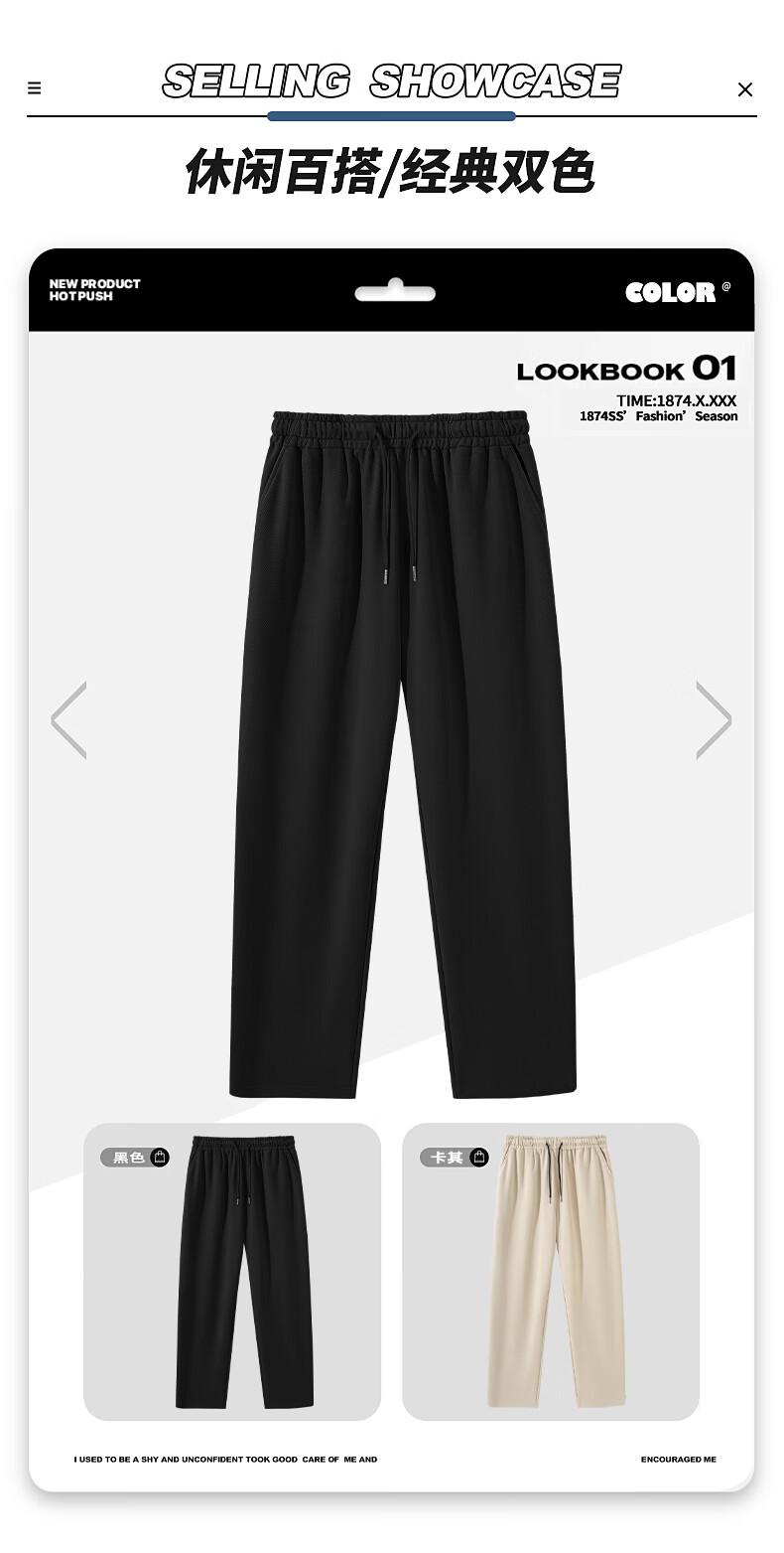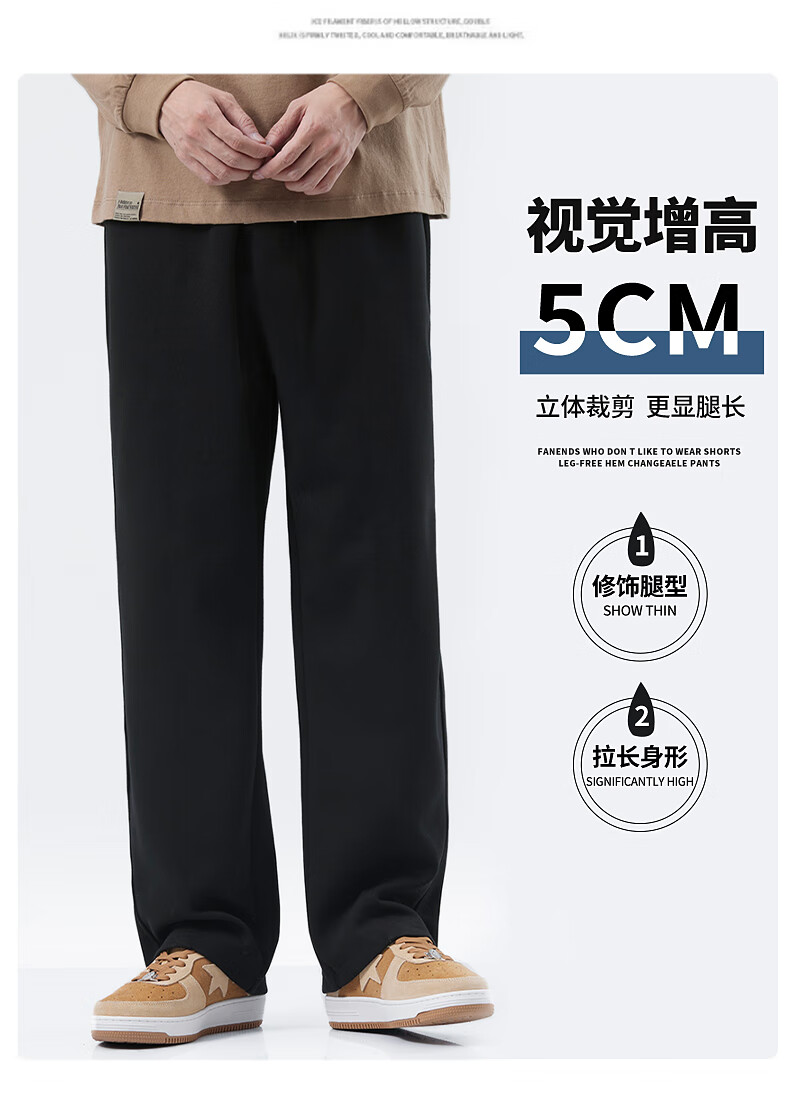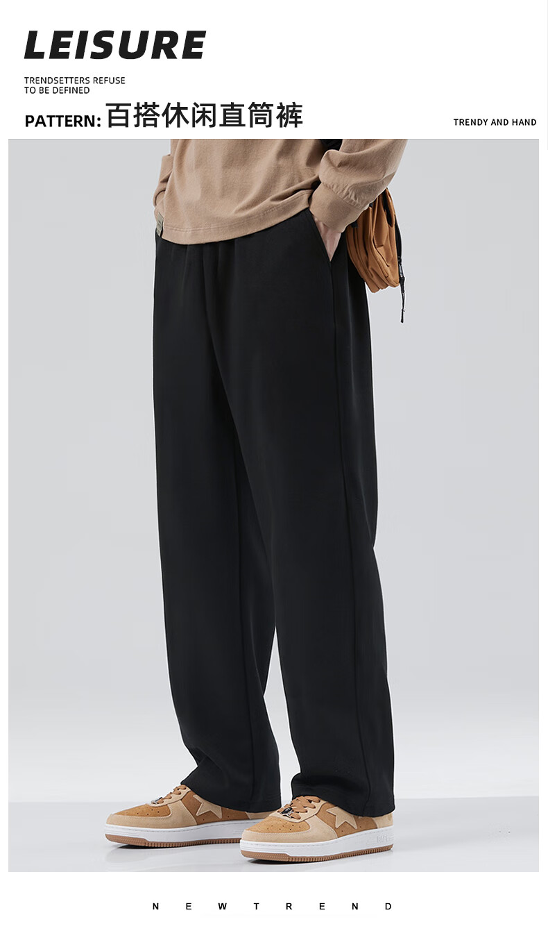 JEANSWEST black twill straight casual pants for men 2025 spring and autumn new wide-leg pants, sweatpants, loose sports pants for men