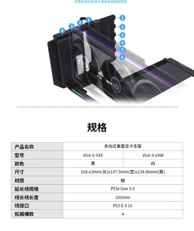 LIANLI Lianli VG4 multi-directional vertical graphics card bracket black with 5.0Specifications graphics card extension cable RGB lighting effect/multi-angle display/