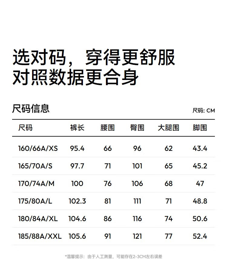 China (cm) 160-165/84-86 165-170 / 88-90 167-172 / 92-96 168-173 / 98-102 170-176 / 106-110