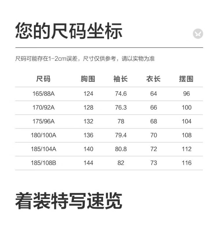 China (cm) 165 / 88-90 170 / 96-98 175 / 108-110 180 / 118-122 185 / 126-130
