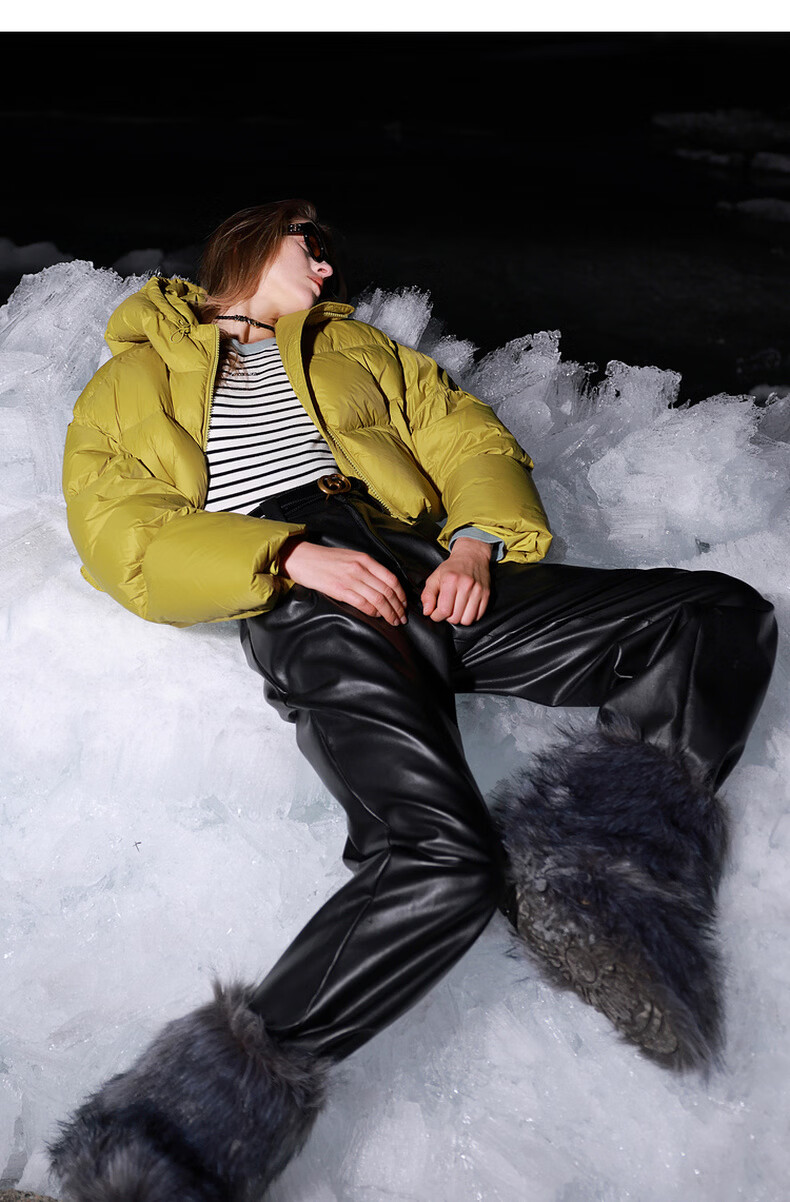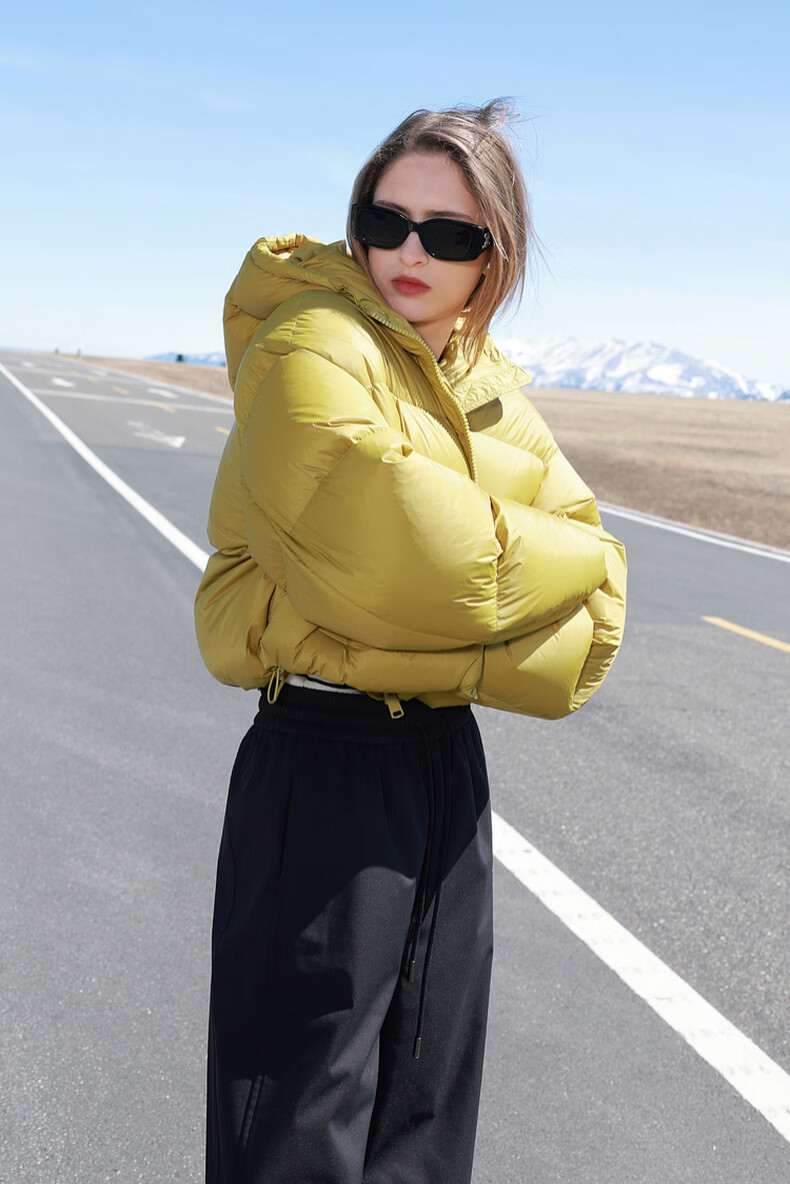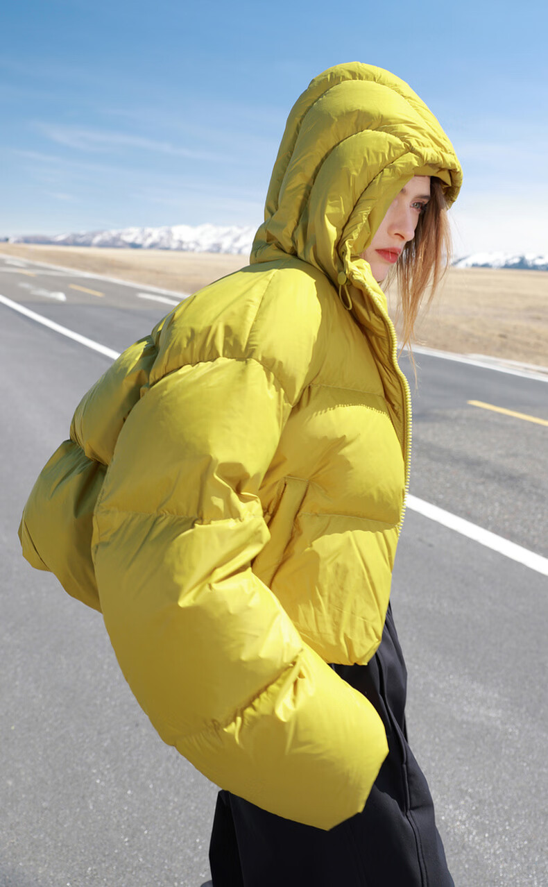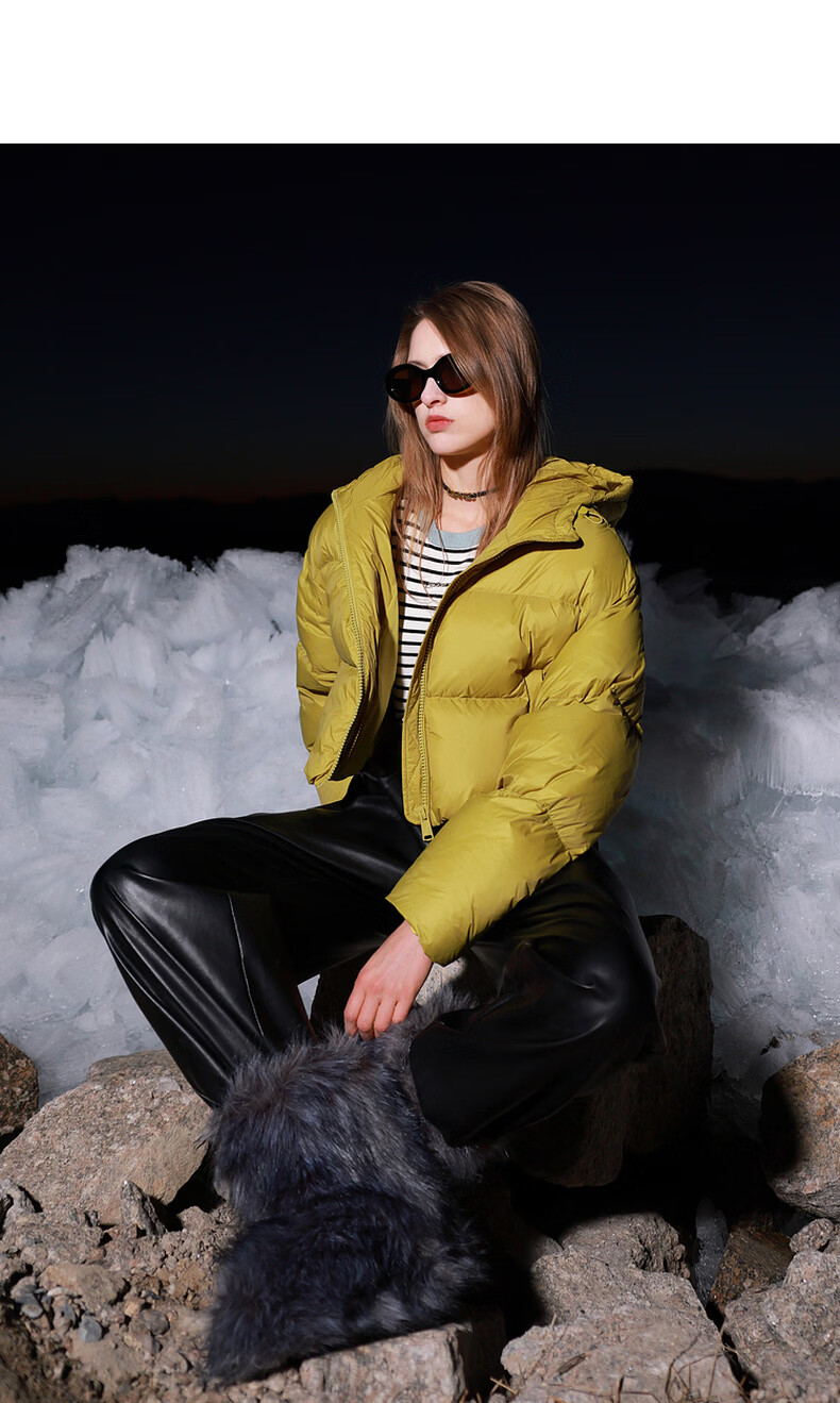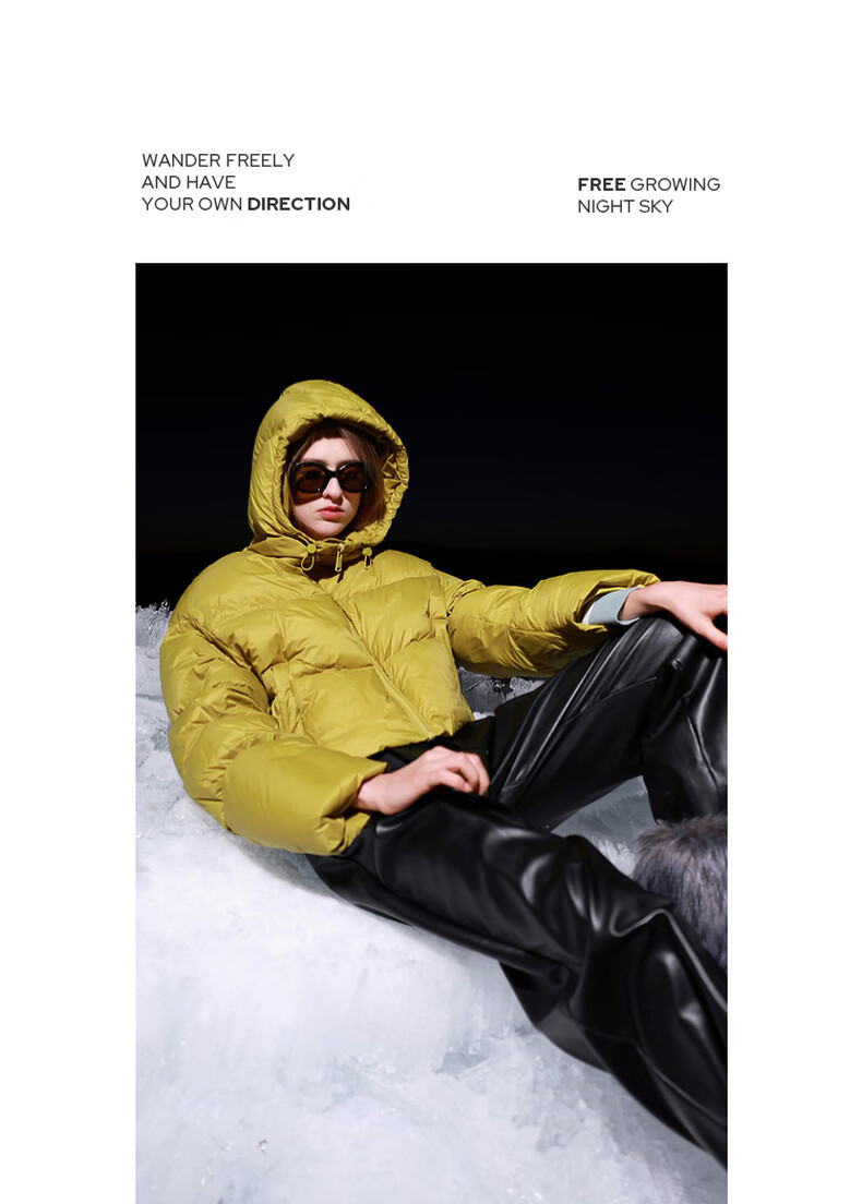Sancai 2025 new winter hooded down jacket short 90 white duck down jacket for women
