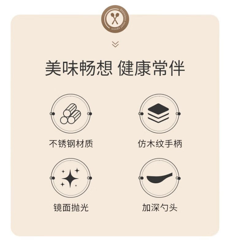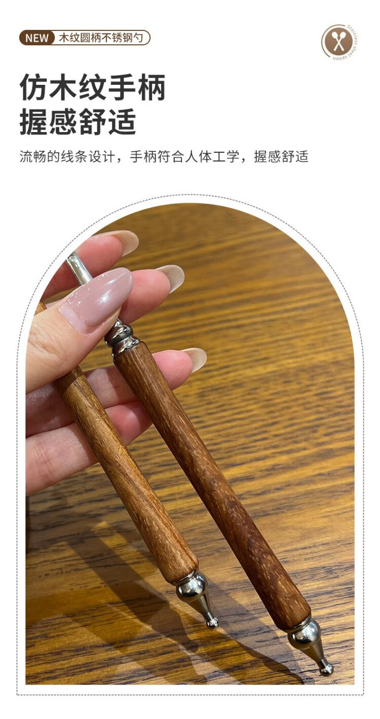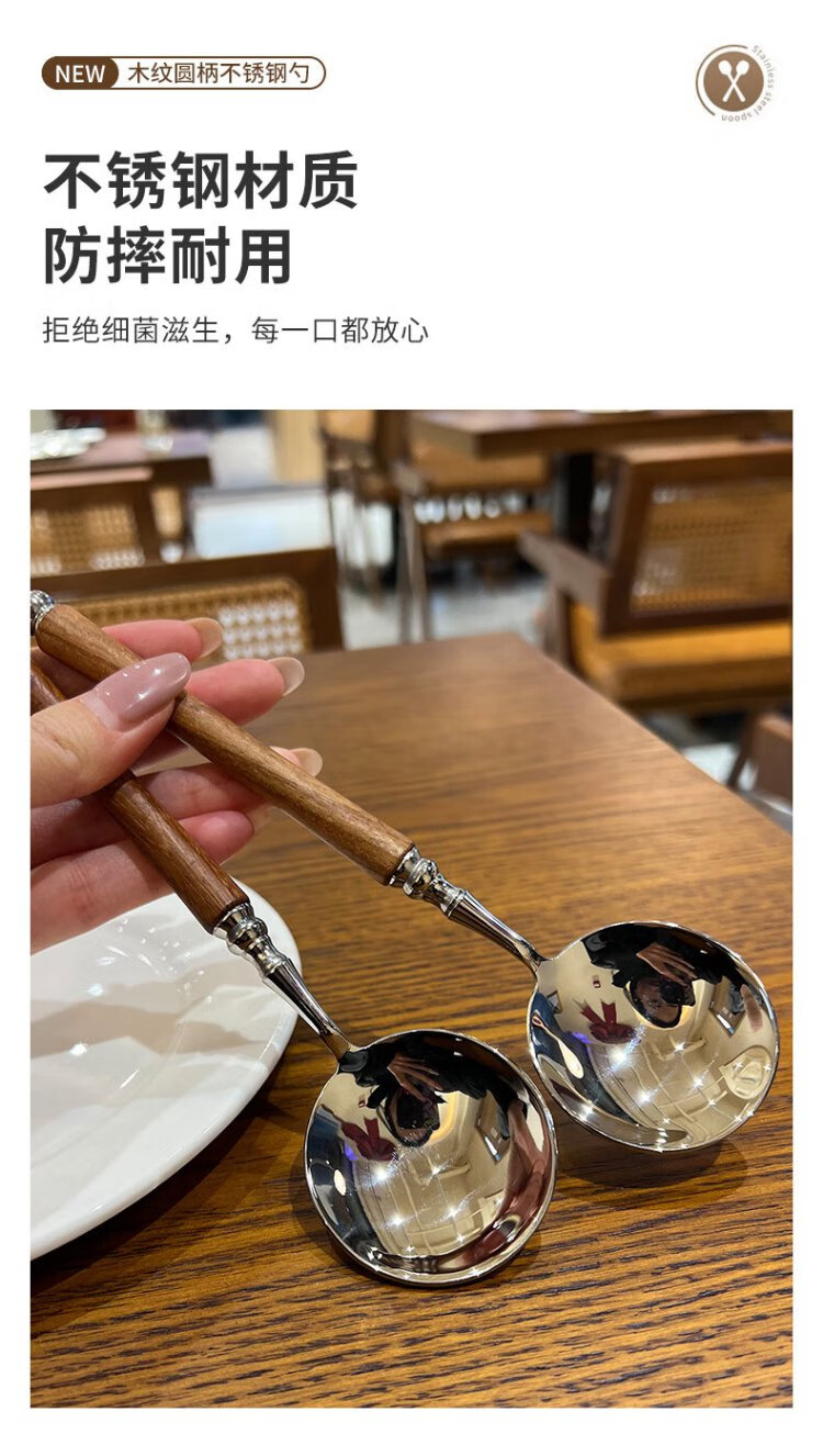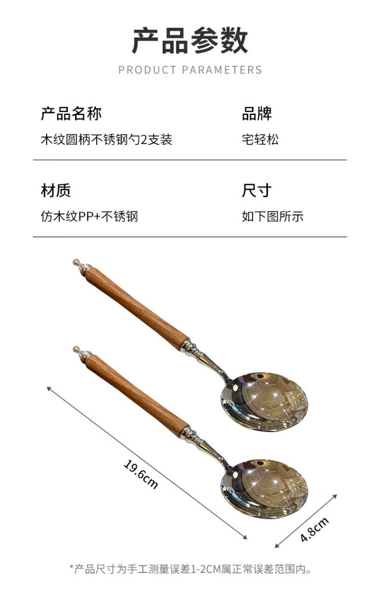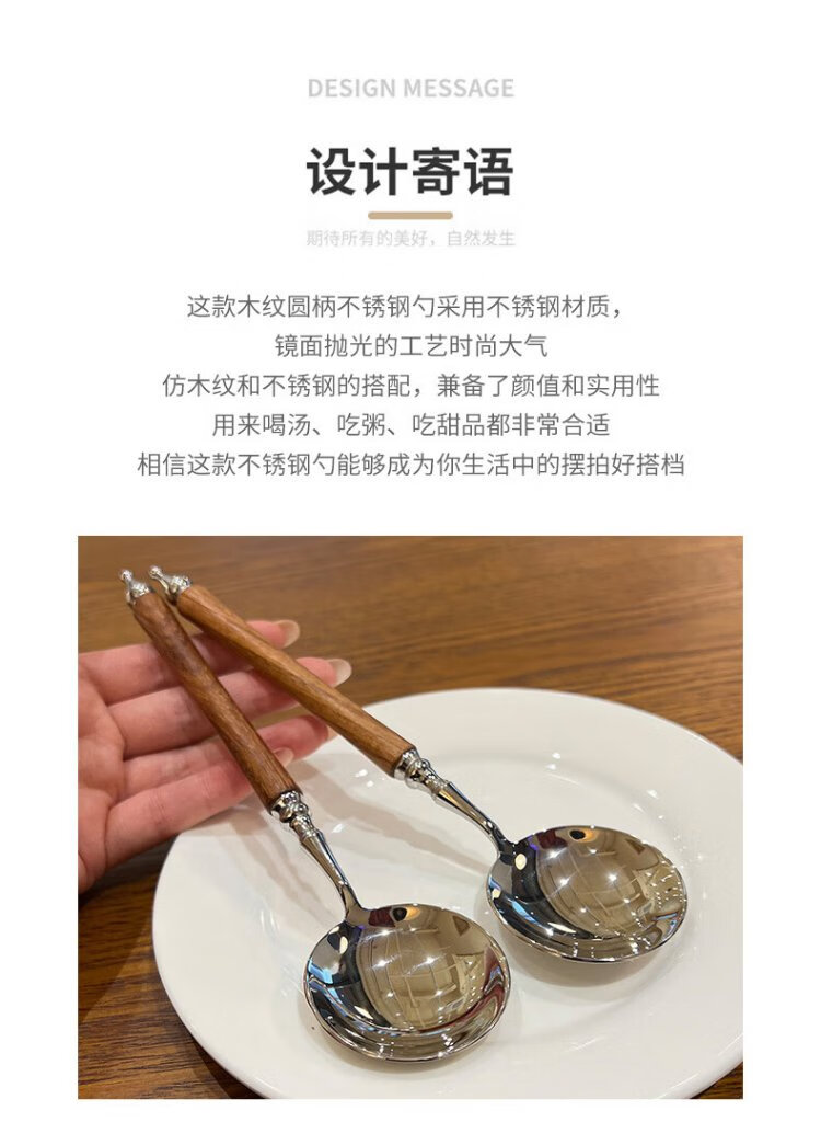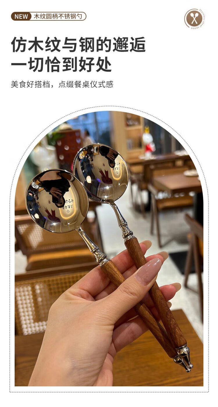 Home Easy Stainless Steel Soup and Rice Spoon Large Thickened Wood Grain Long Handled Dinner Spoon Round Spoon Household Spoon Tableware 2 Pack