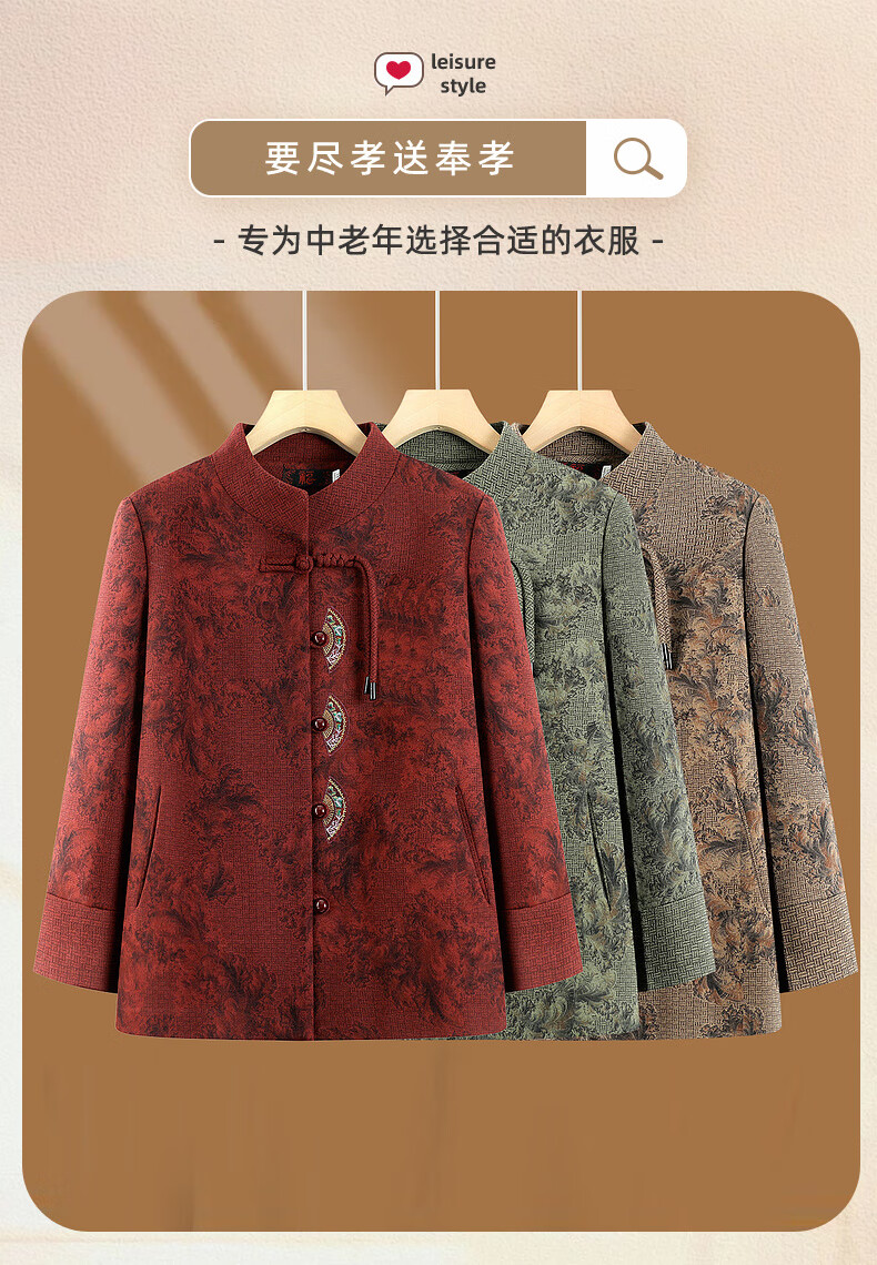 Fengxiao elderly autumn clothing women's new Chinese style coat 60 and 70 years old mother spring and autumn new tops elderly clothes grandma style