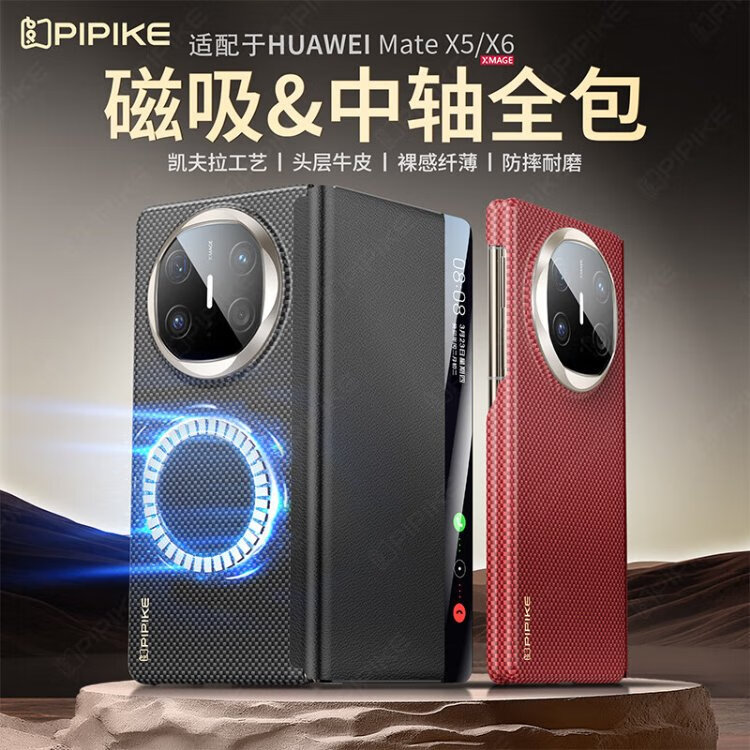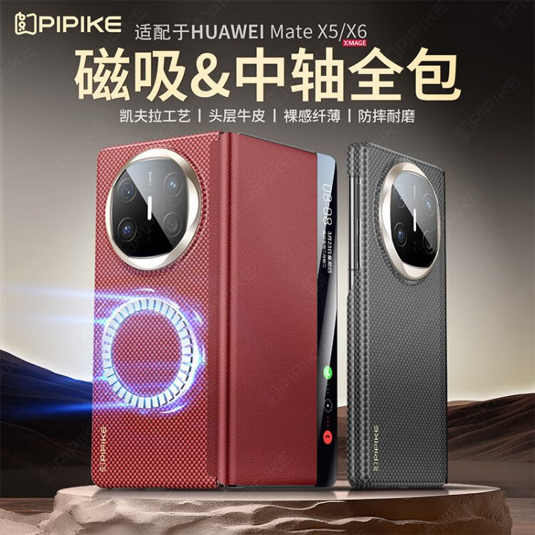 PIPIKE leather shell Kevlar flip cover suitable for Huawei MateX6 biaxial protection Kevlar mobile phone case Huawei x6 all-inclusive anti-fall red flame red flip cover protective cover