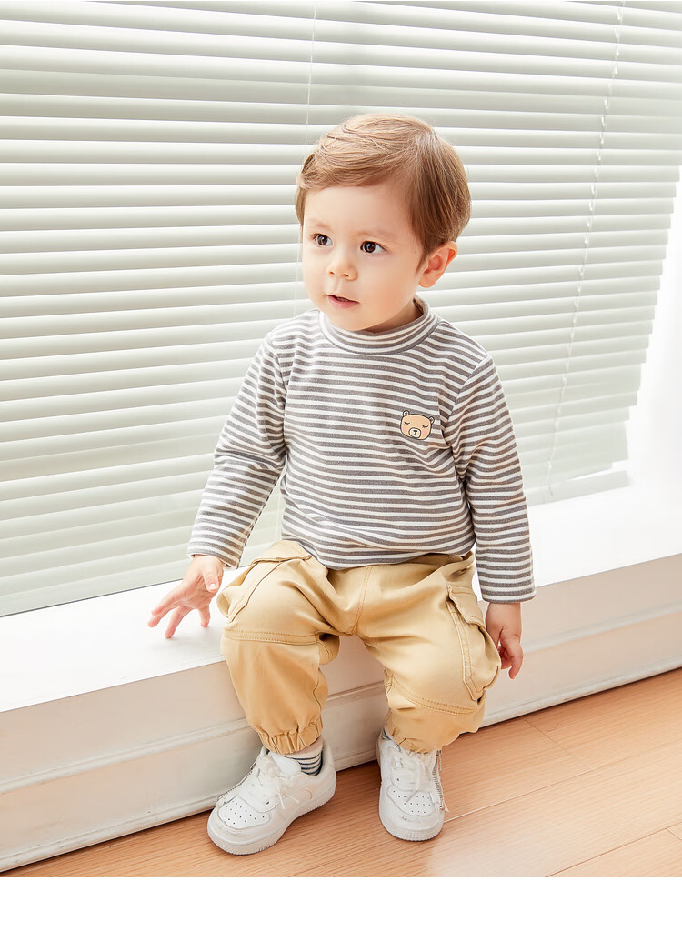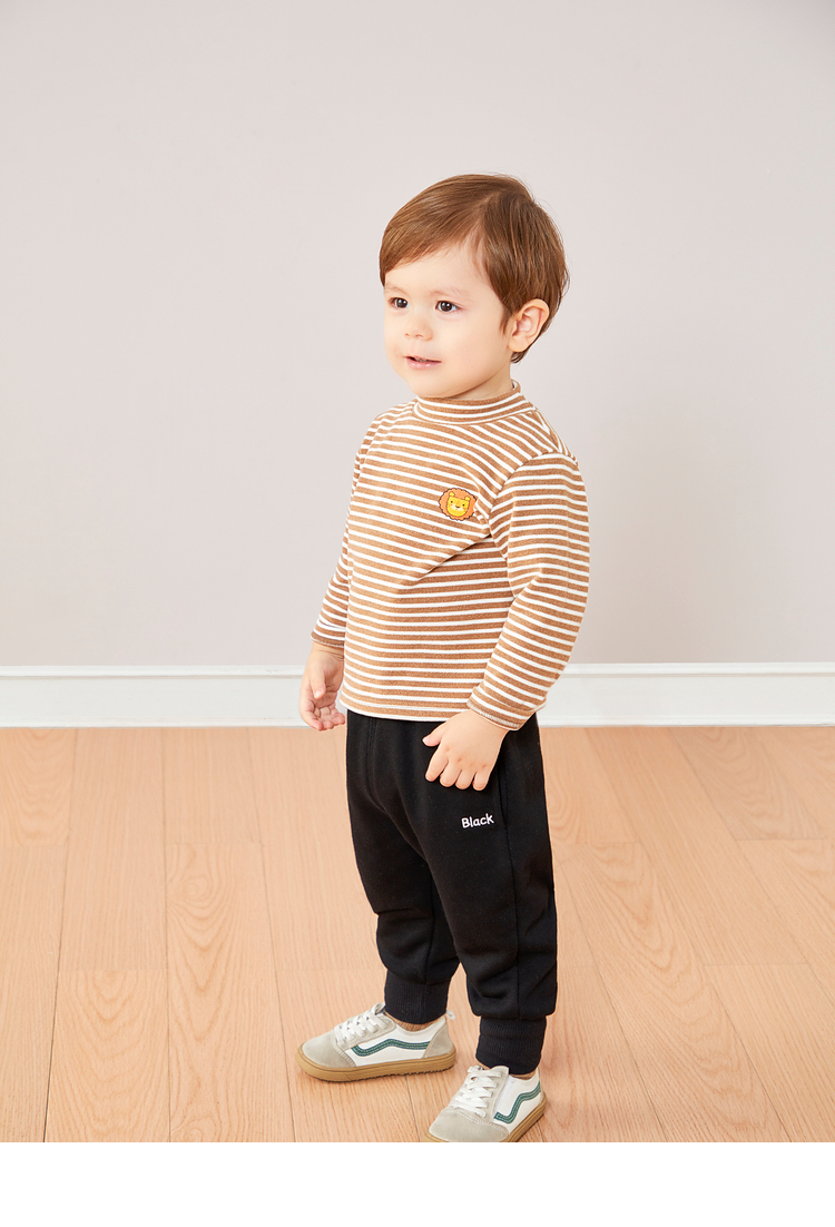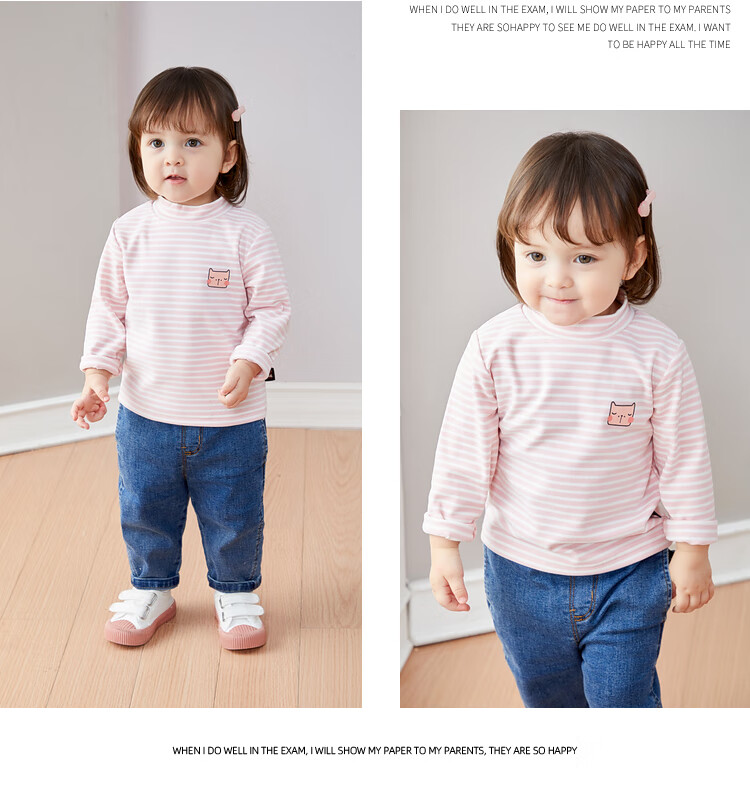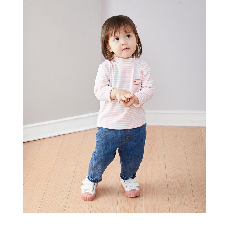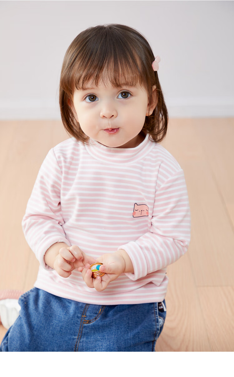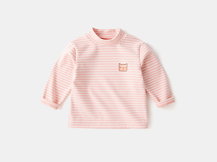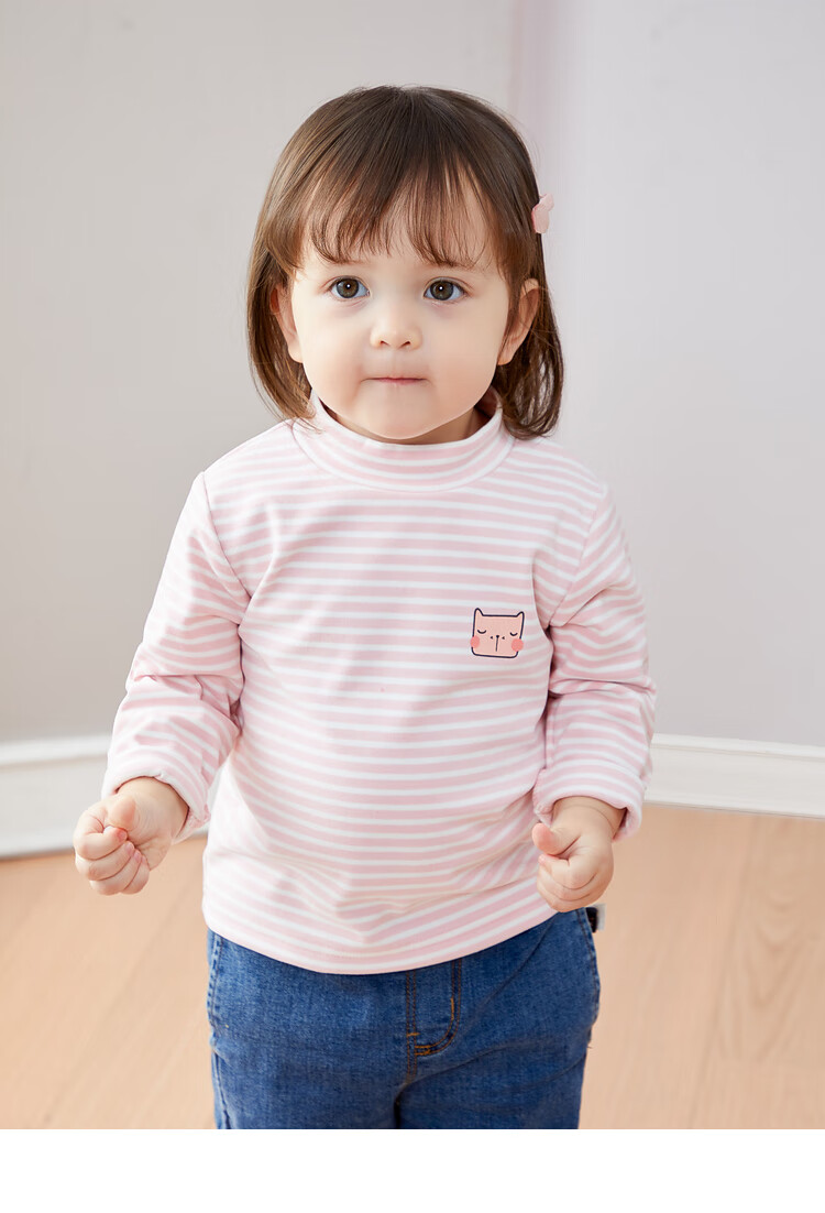 Dudujia Versatile Striped Baby Bottoming Shirt Winter Clothes Boys Warm Style Long Sleeve T-shirt Girls Turtleneck Top Trendy Pink White 90