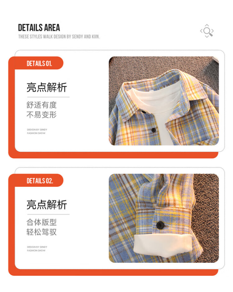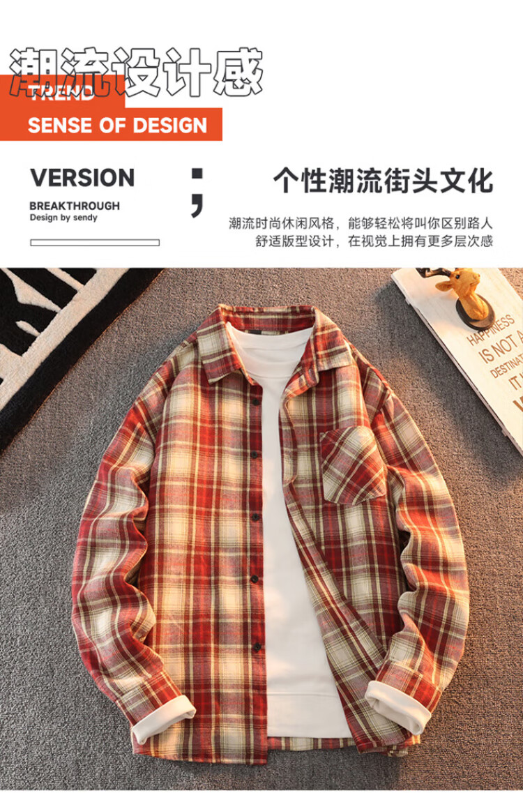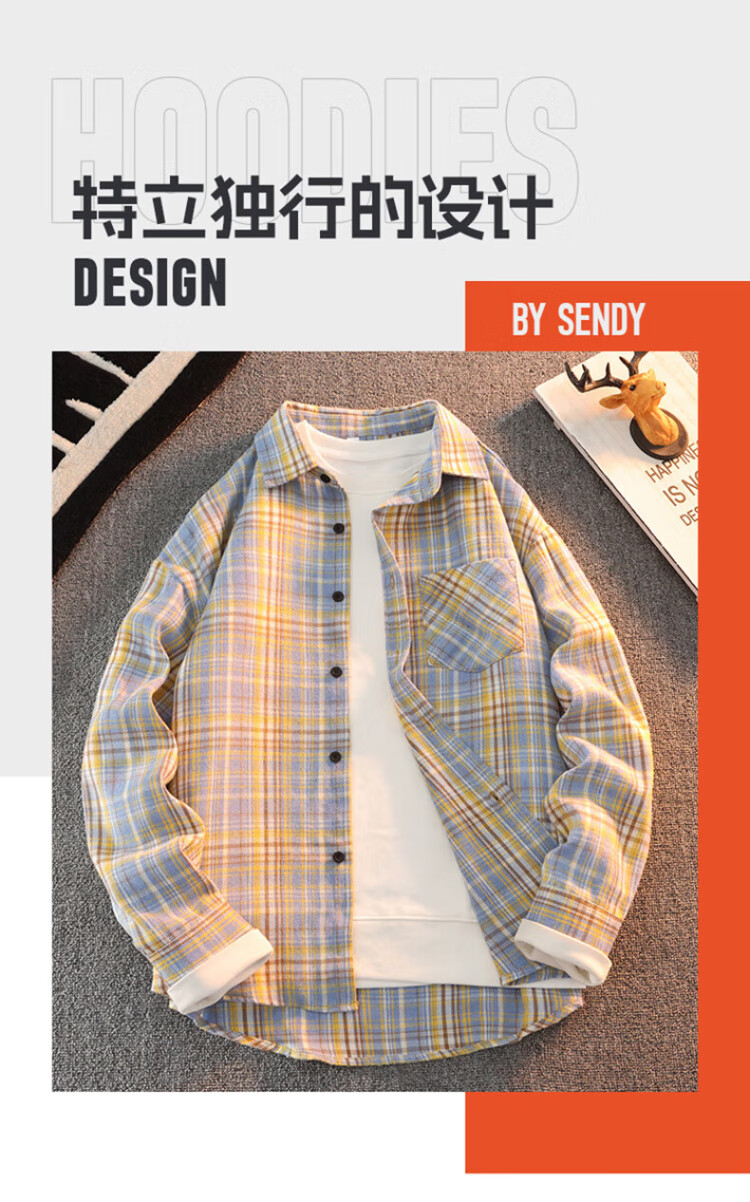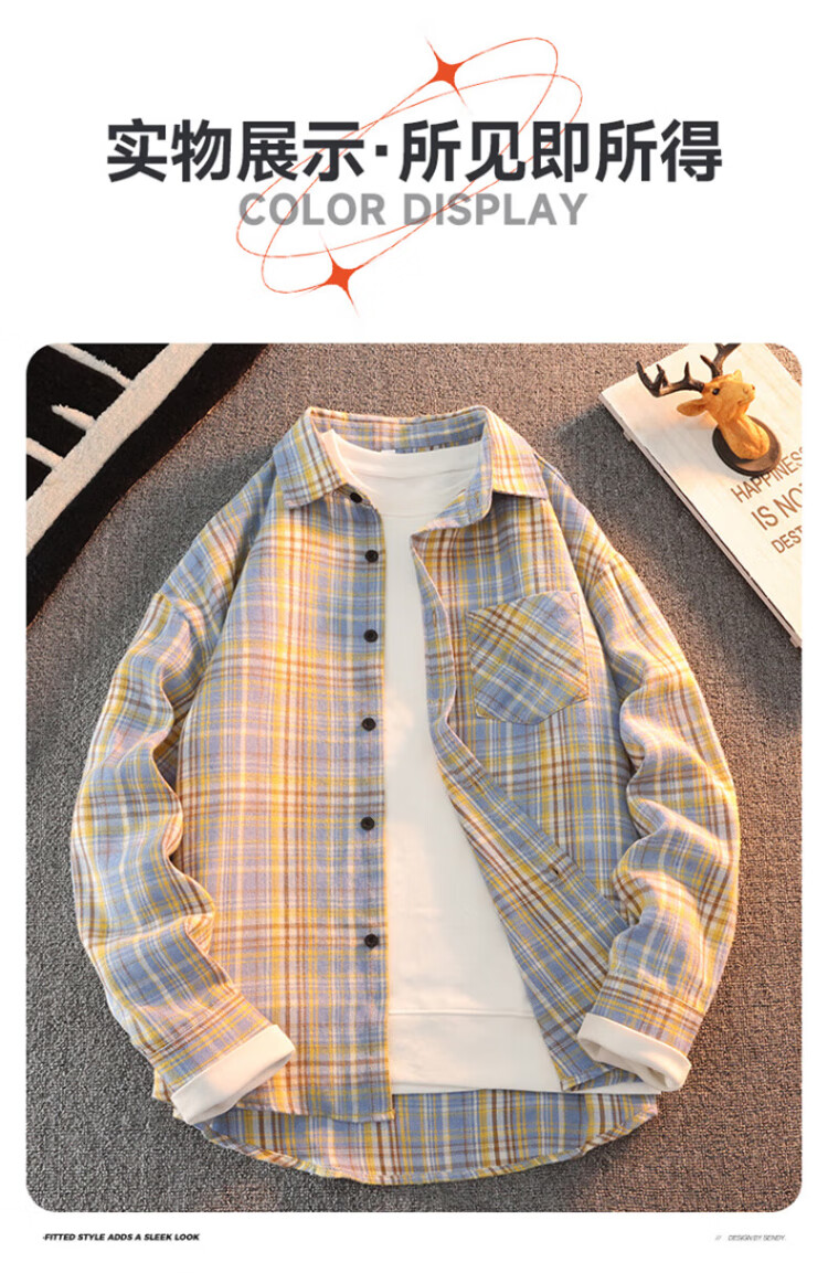 真维斯户外运动王一博代言长袖衬衫男士春秋百搭宽松格子衬衣休闲外套 黄色 L