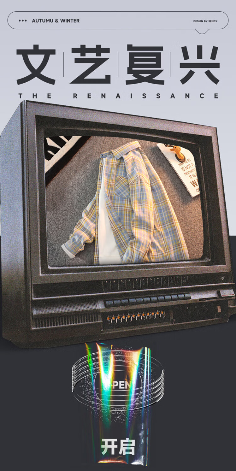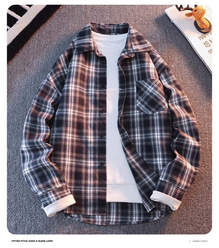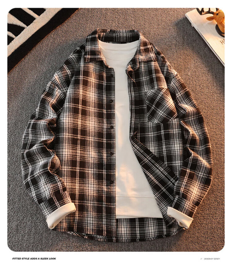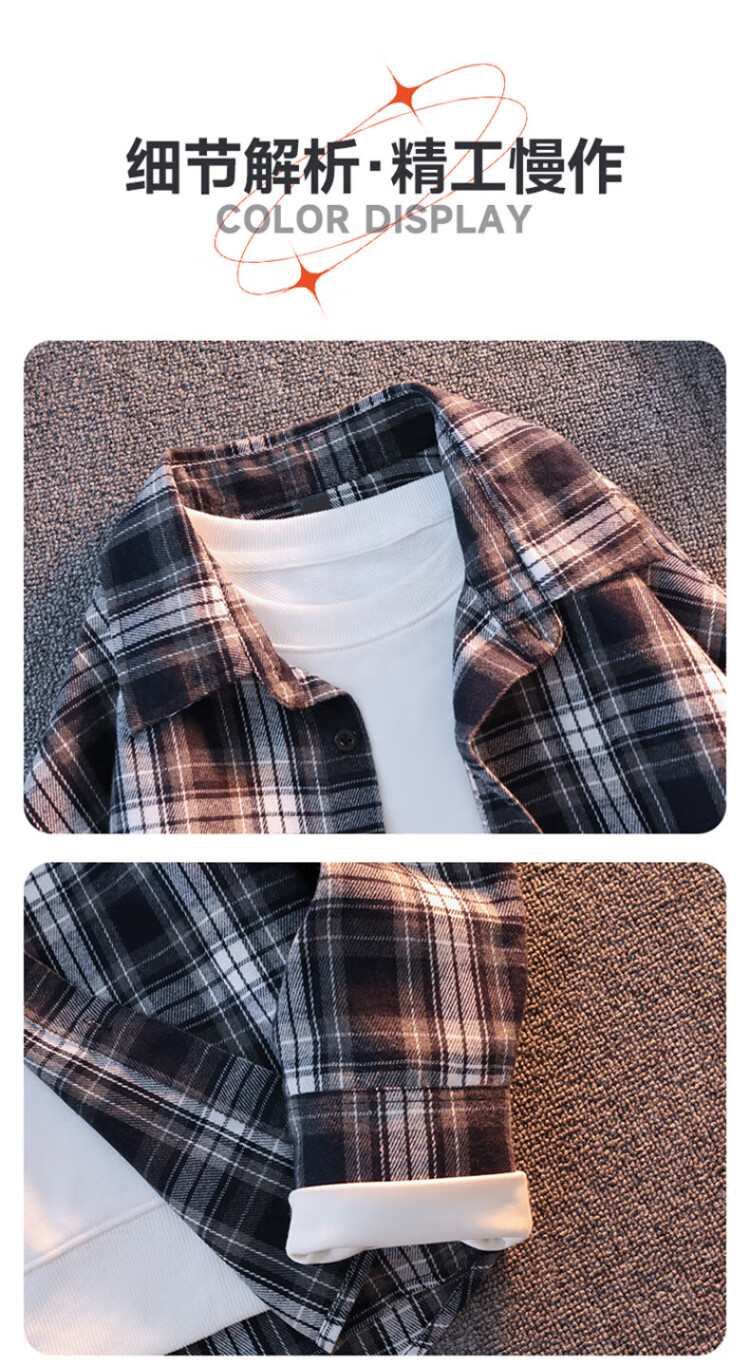 真维斯户外运动王一博代言长袖衬衫男士春秋百搭宽松格子衬衣休闲外套 黄色 L