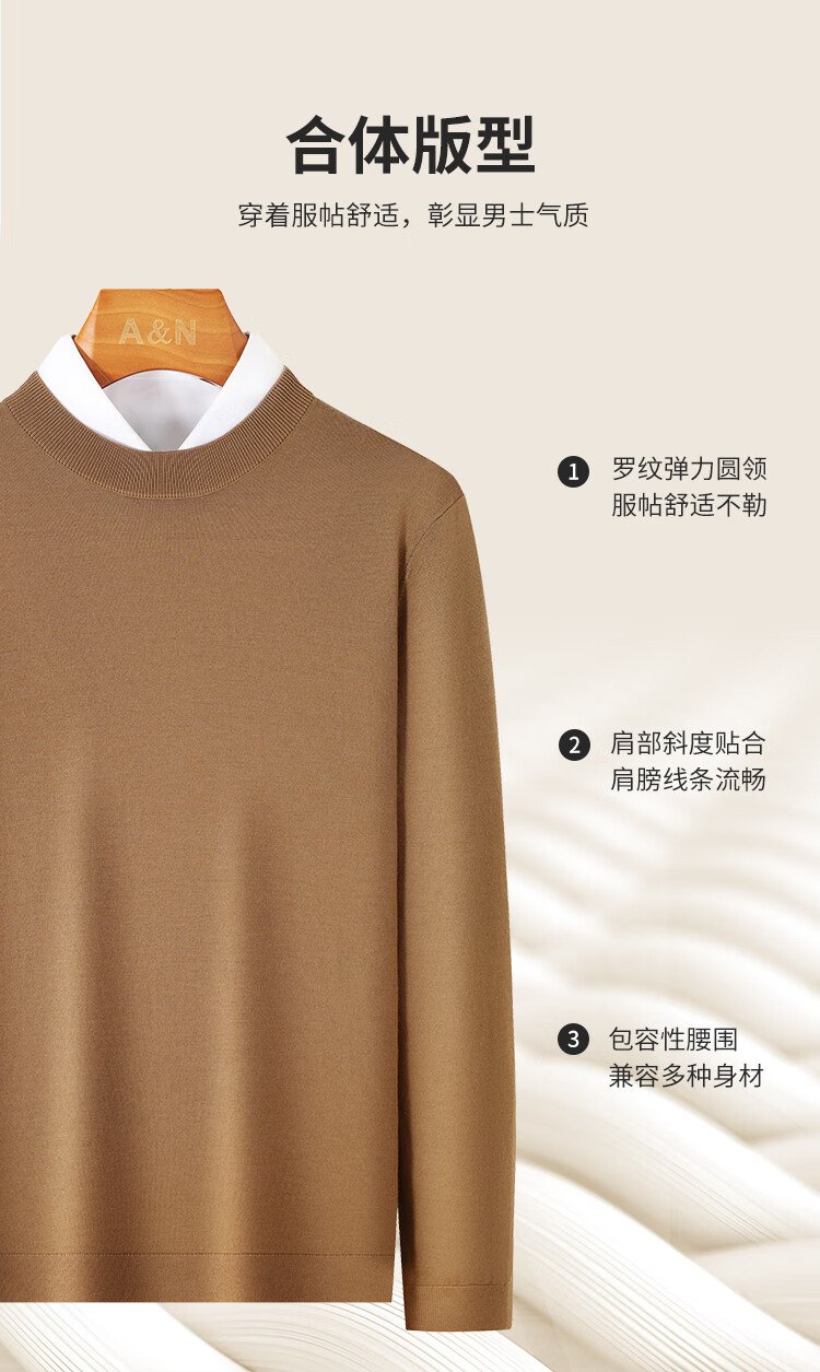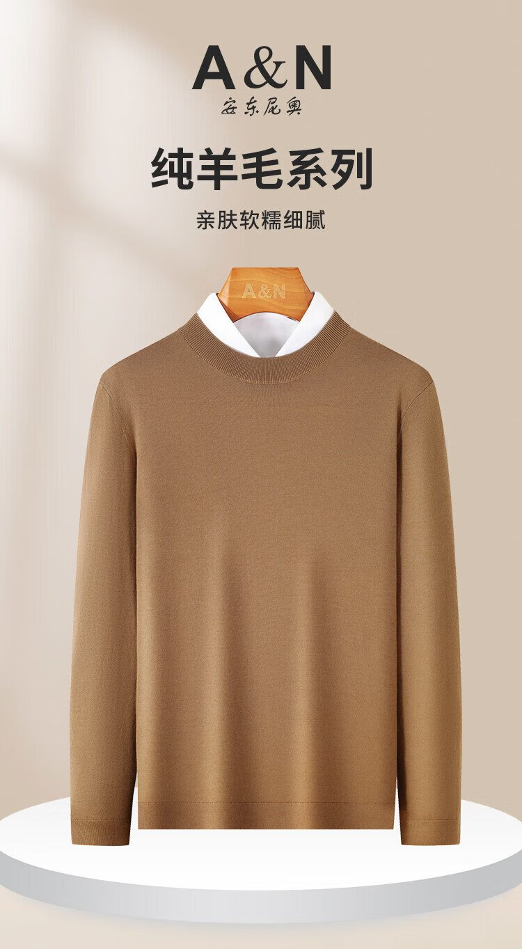 Antonio machine washable & worsted 100% sheep wool men's autumn and winter wool sweater knitted sweater base layer easy to care for