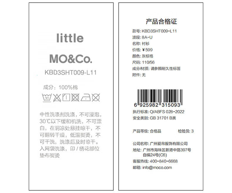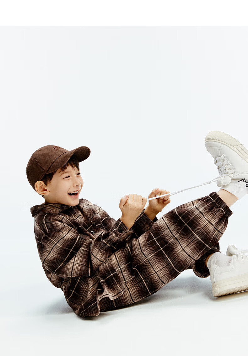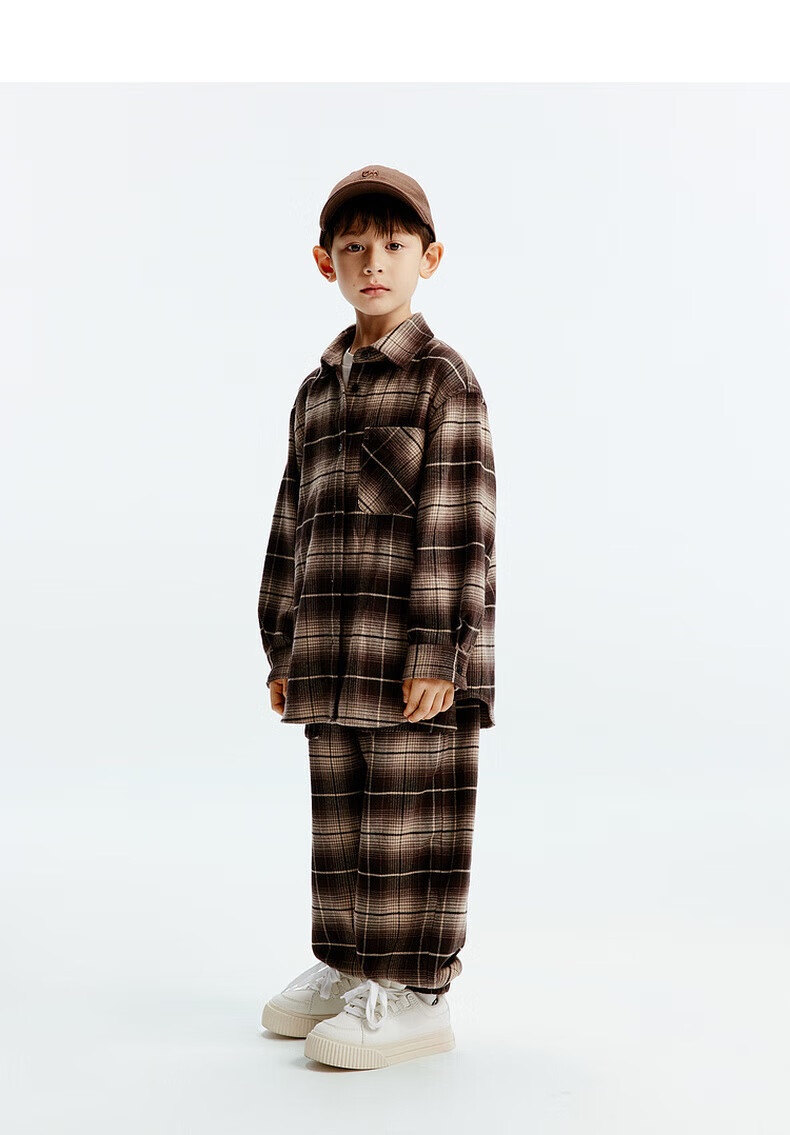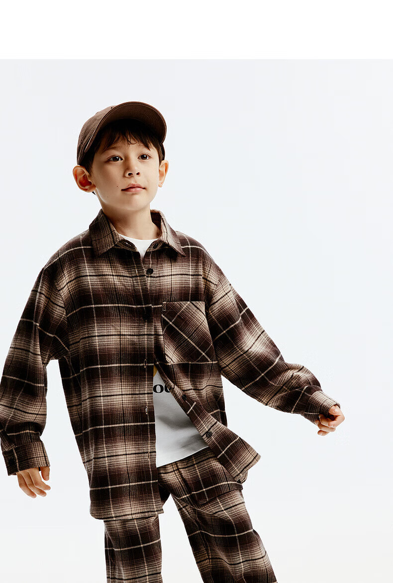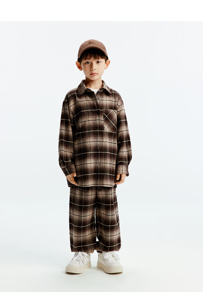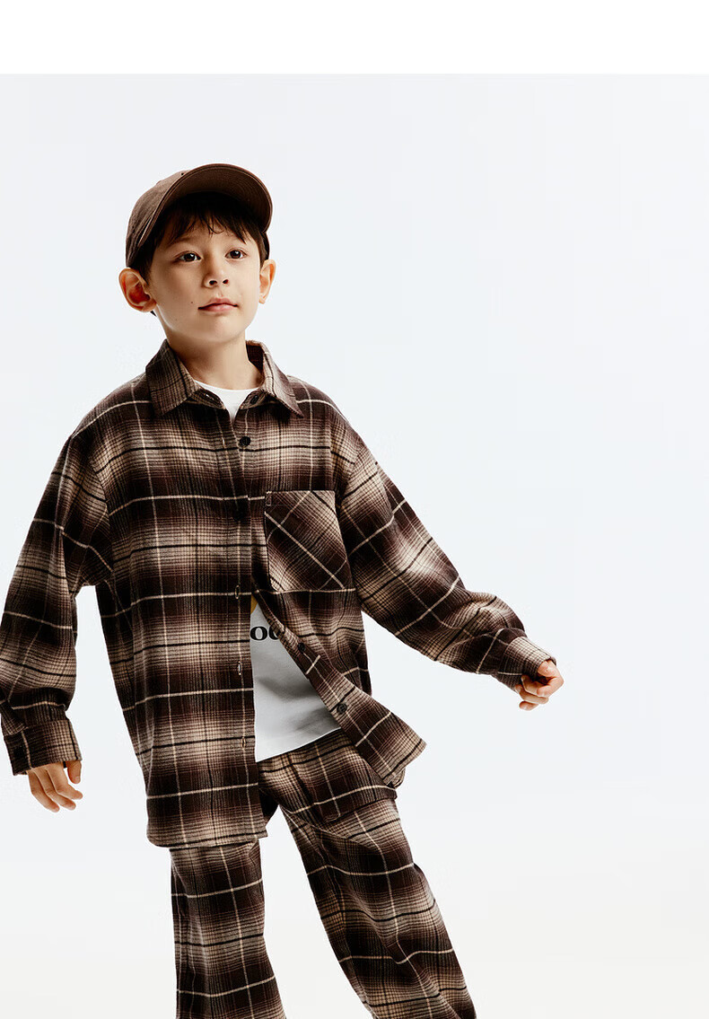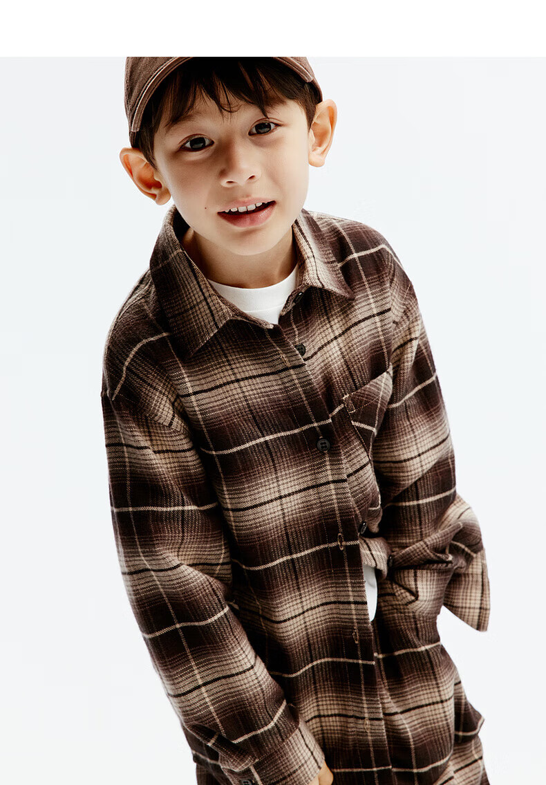 little MO&Co.童装秋装新款男女童纯棉复古格纹长袖衬衫衬衣开衫