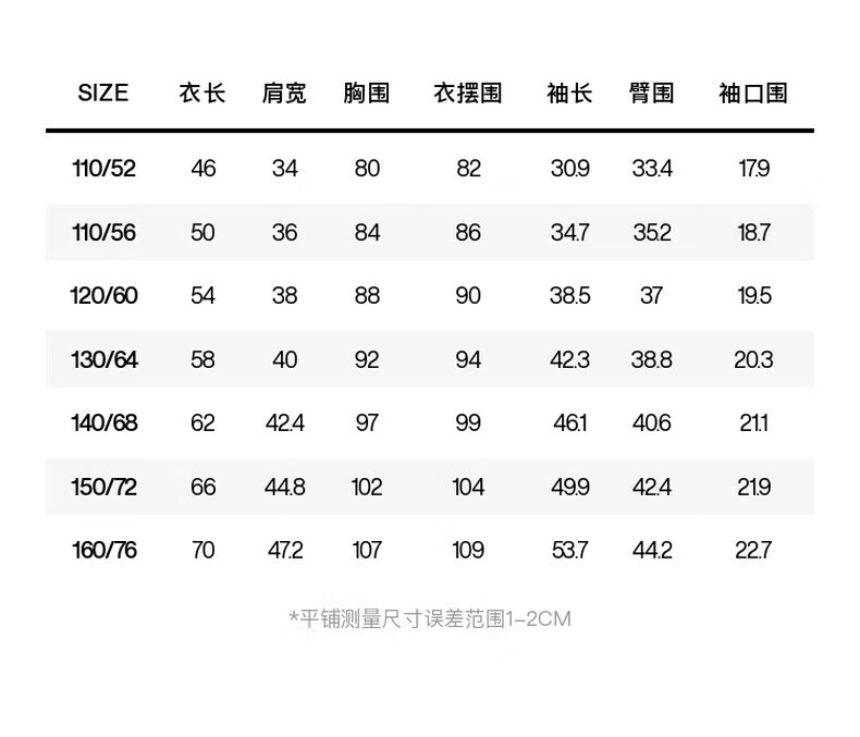 China (cm) 160-165/84-86 165-170 / 88-90 167-172 / 92-96 168-173 / 98-102 170-176 / 106-110