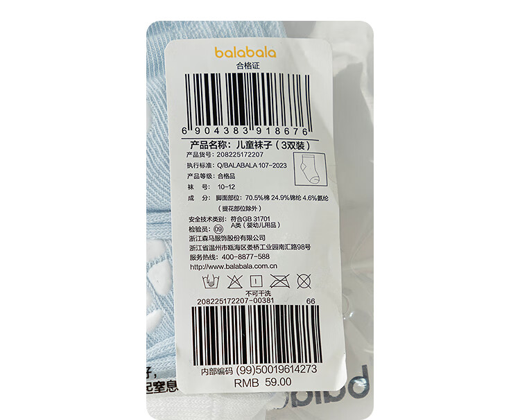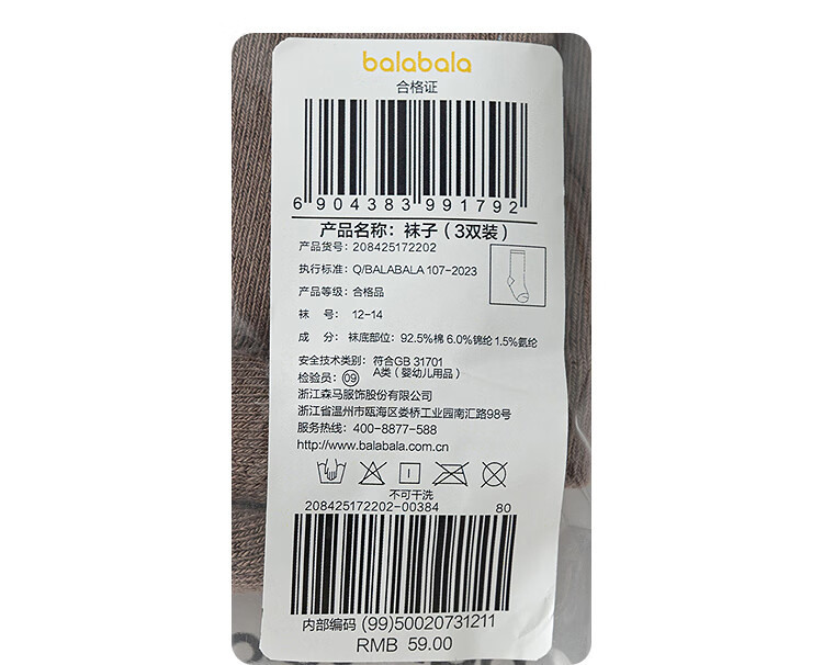 Bala Bala One socks winter warm socks infant floor socks anti-cold jacquard three pairs 208425172202