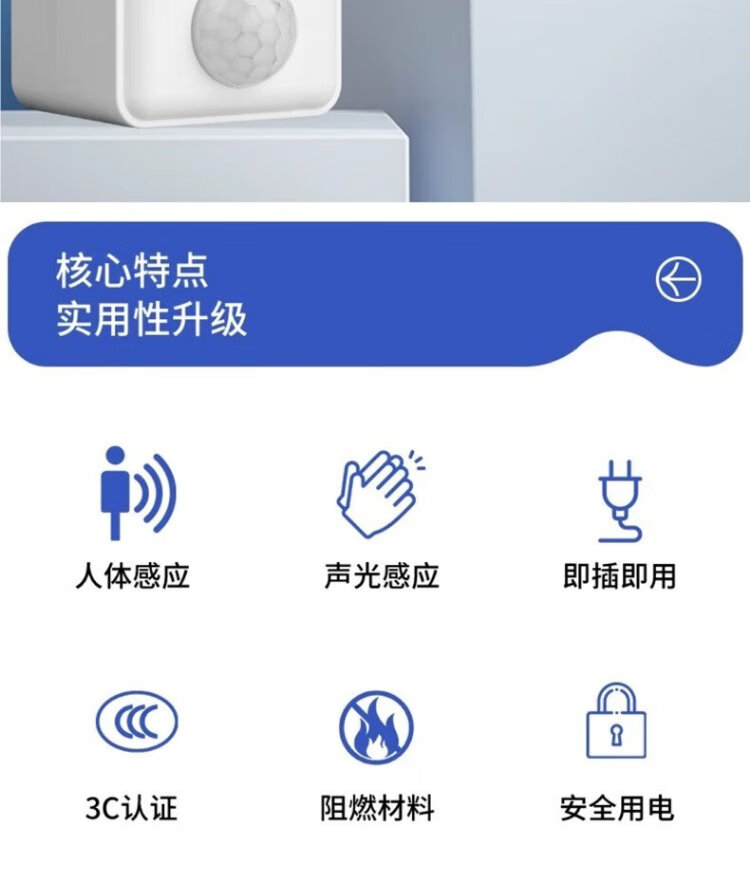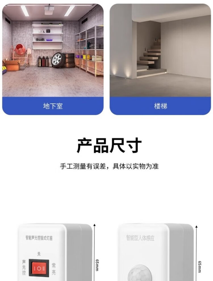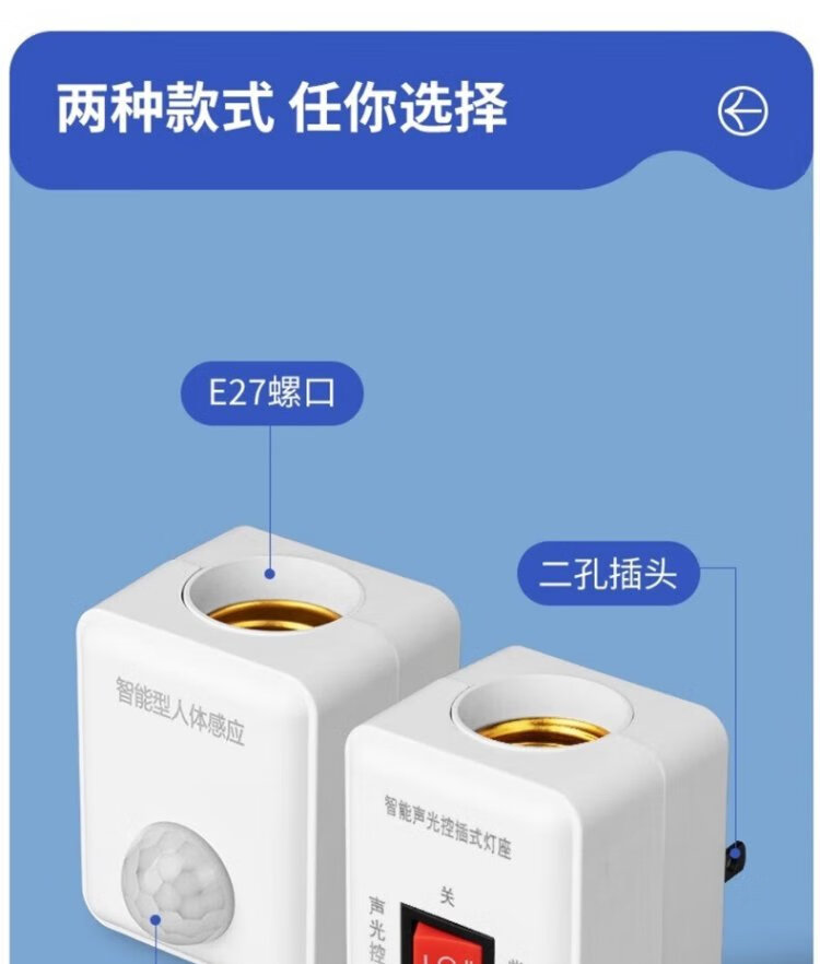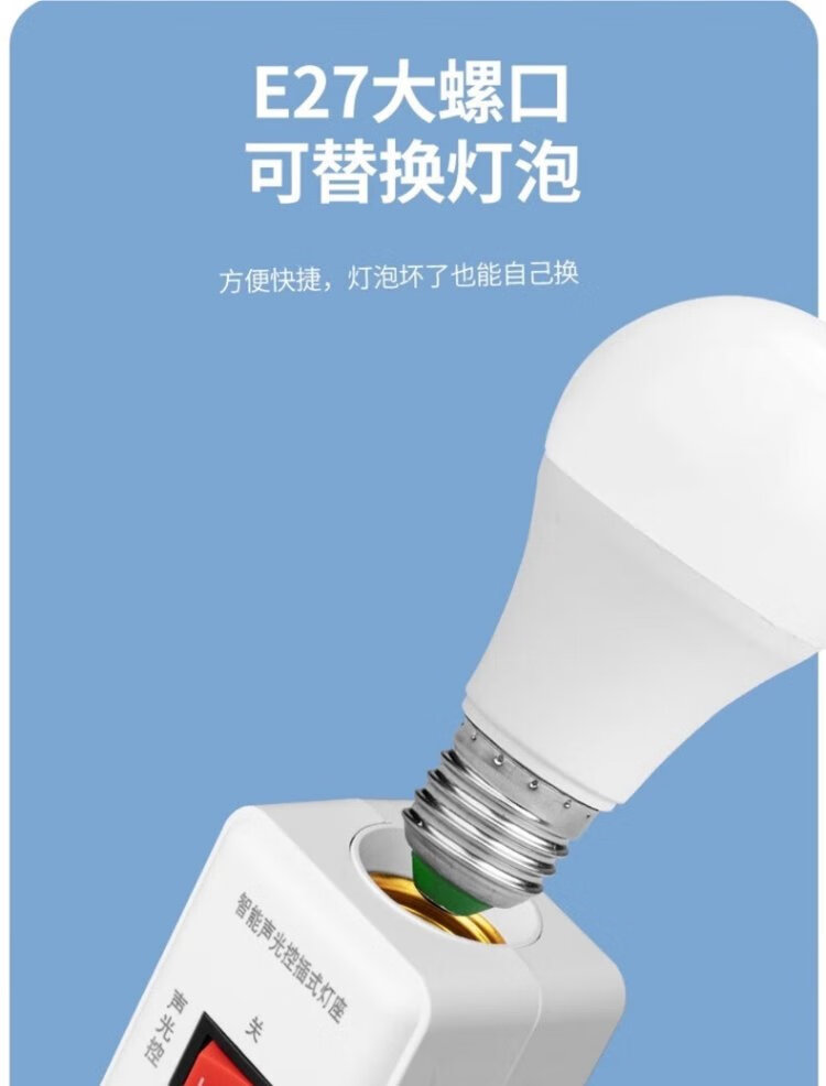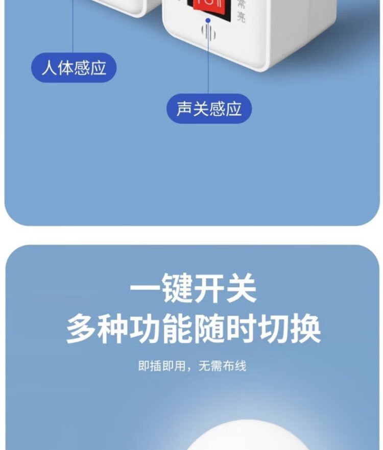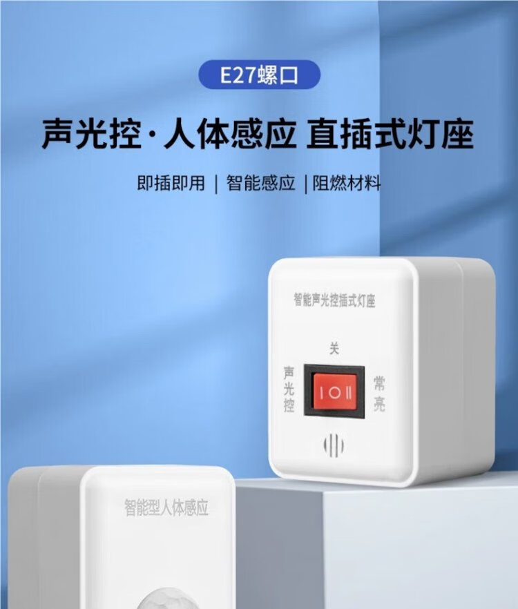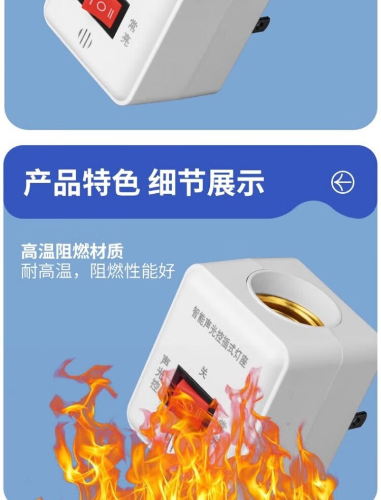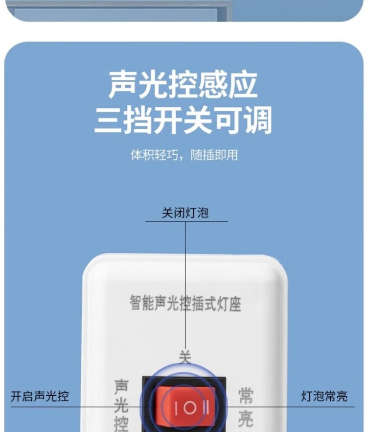 Pinjian wall-plug LED sound and light control lamp holder hotel corridor aisle energy-saving lamp holder intelligent delay switch automatic sound control lamp holder straight plug night light with switch