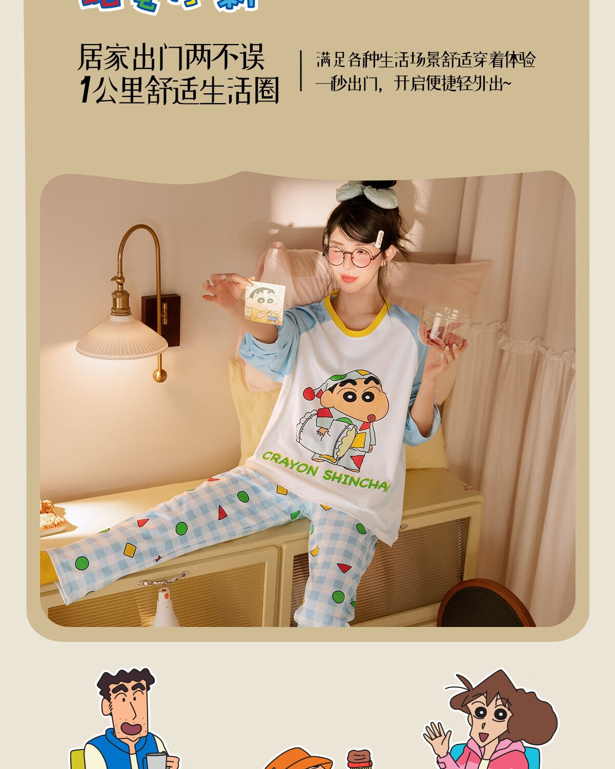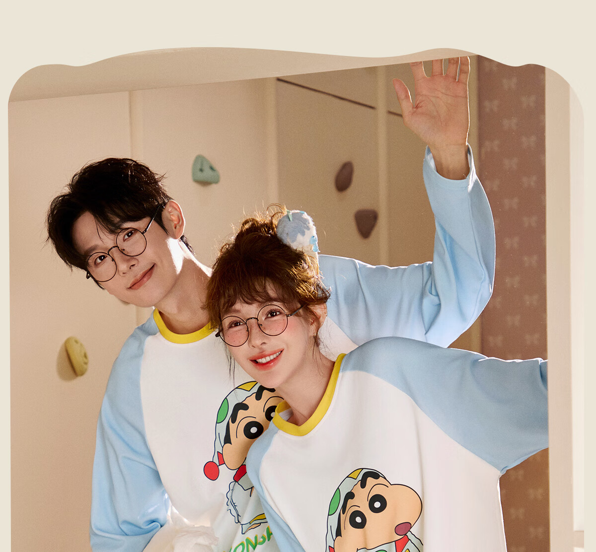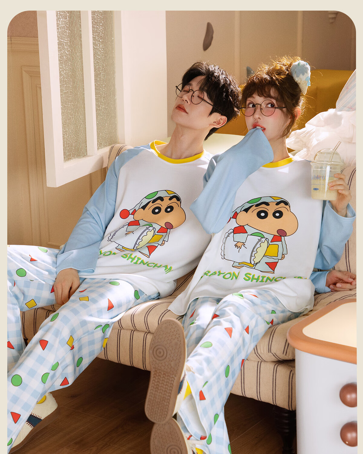 Gong Die Light and Soft Crayon Shin-chan Spring and Autumn Couple Pajamas Women's Long Sleeve Cute Casual Homewear Set Men's