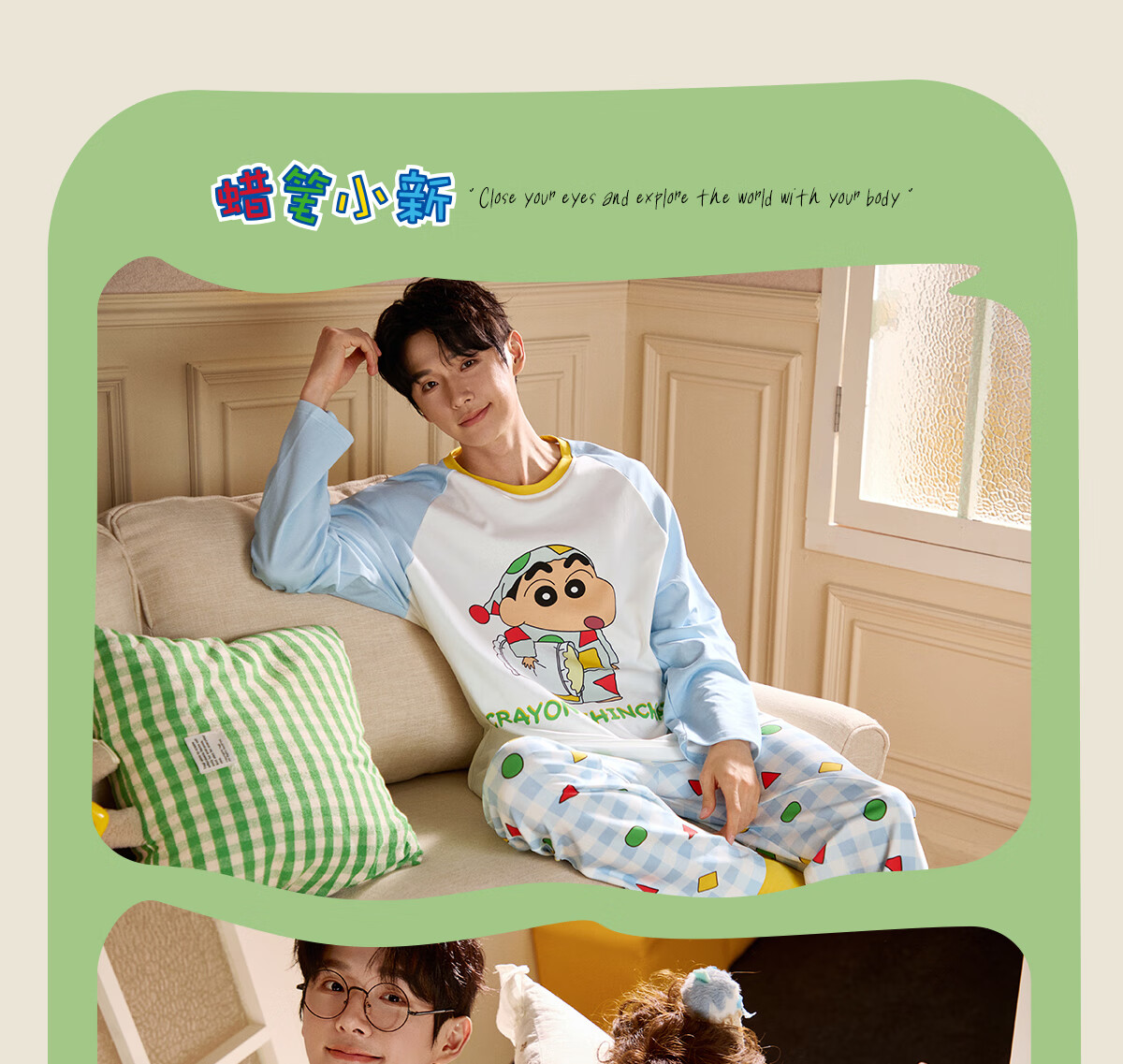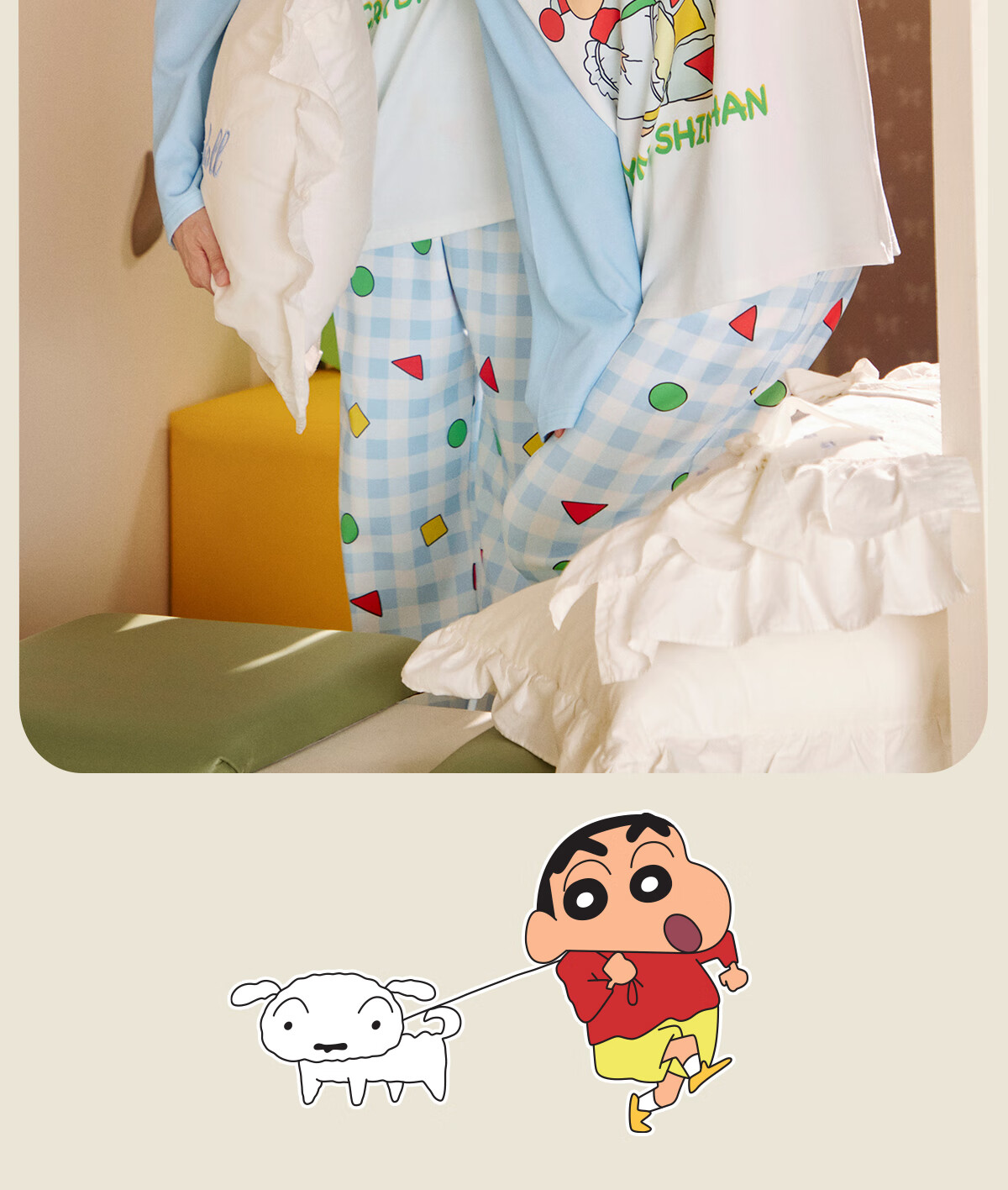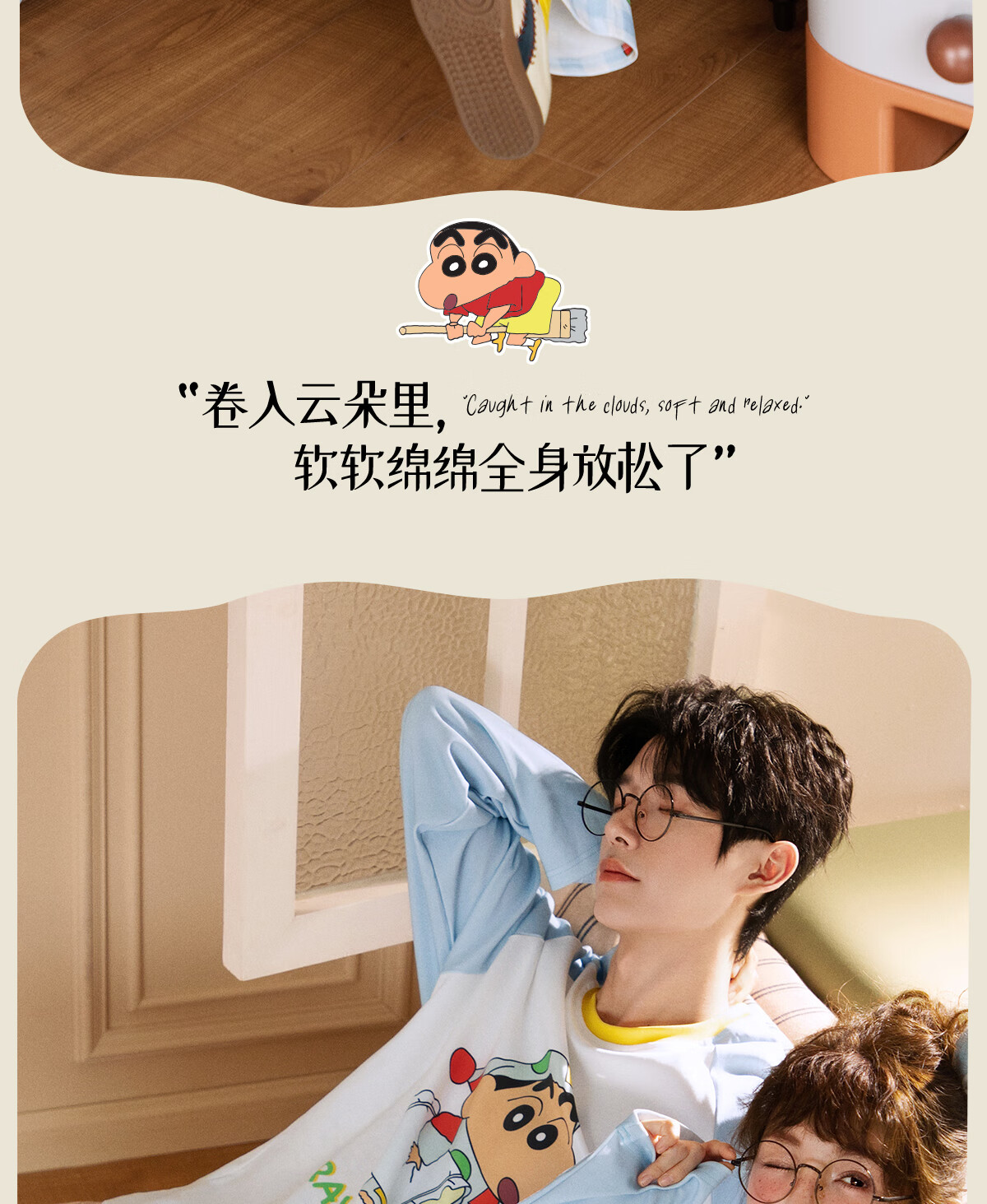 Gong Die Light and Soft Crayon Shin-chan Spring and Autumn Couple Pajamas Women's Long Sleeve Cute Casual Homewear Set Men's