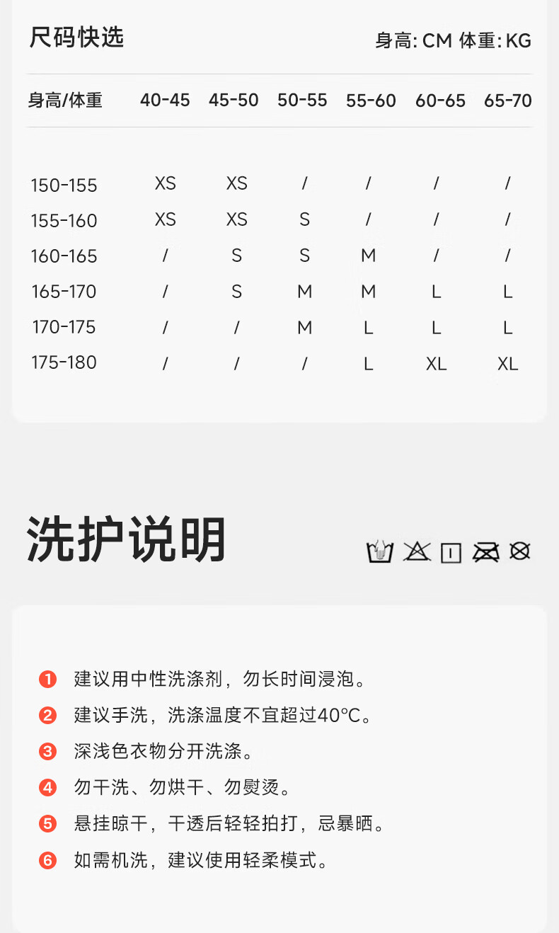 China (cm) 160-165/84-86 165-170 / 88-90 167-172 / 92-96 168-173 / 98-102 170-176 / 106-110