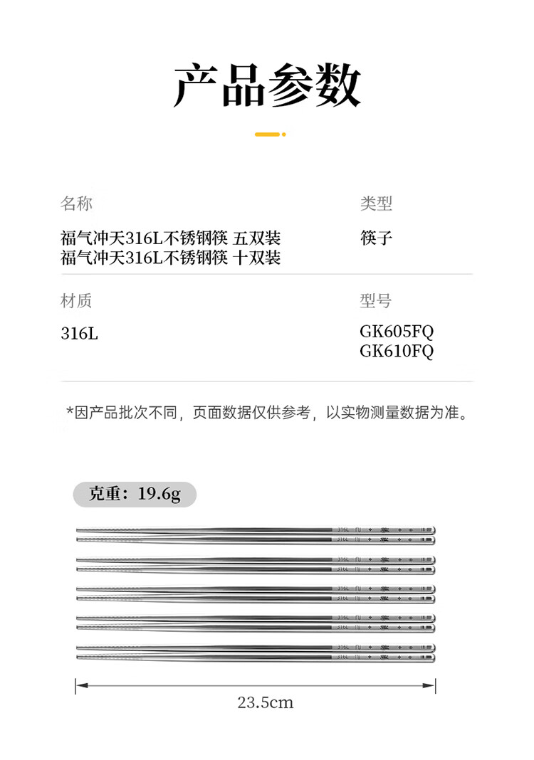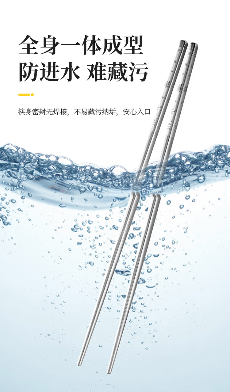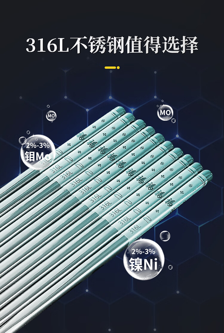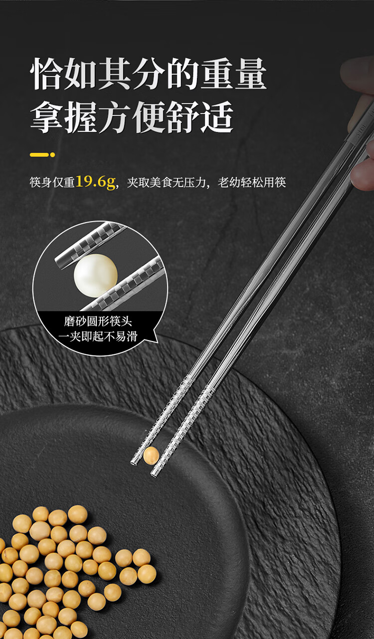 Cui Dahuang 316L stainless steel chopsticks for home use, high-end, mildew-proof, anti-bacterial and high-temperature resistant, 5 pairs of good fortune
