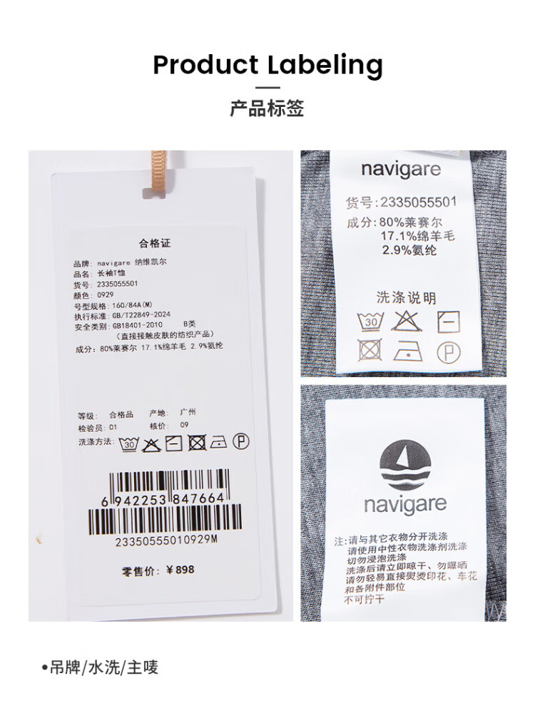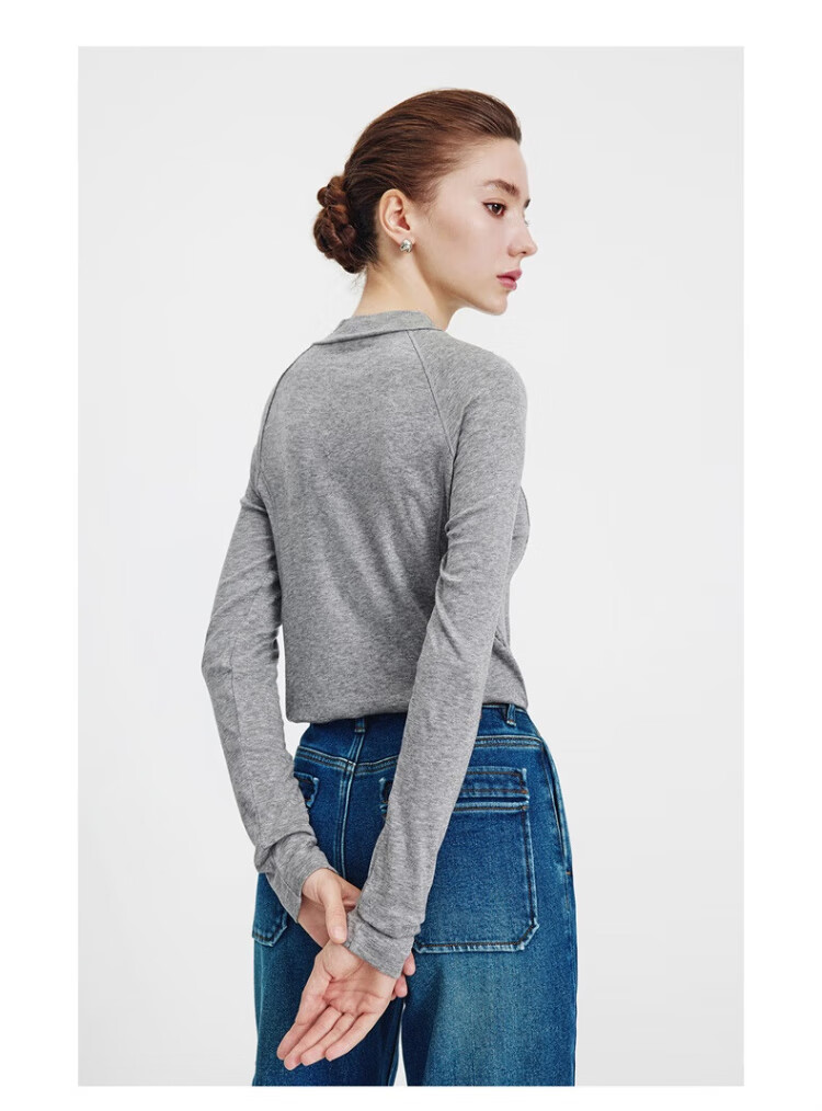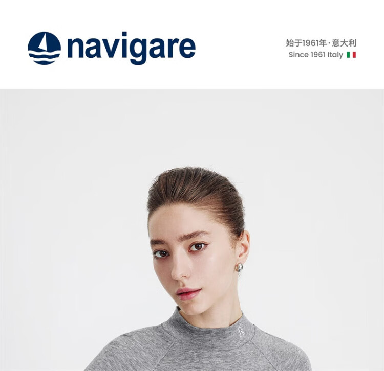Navigare Italian small sailing boat 25 new autumn and winter inner wear women's high elastic round neck slim long-sleeved T-shirt 2335055501