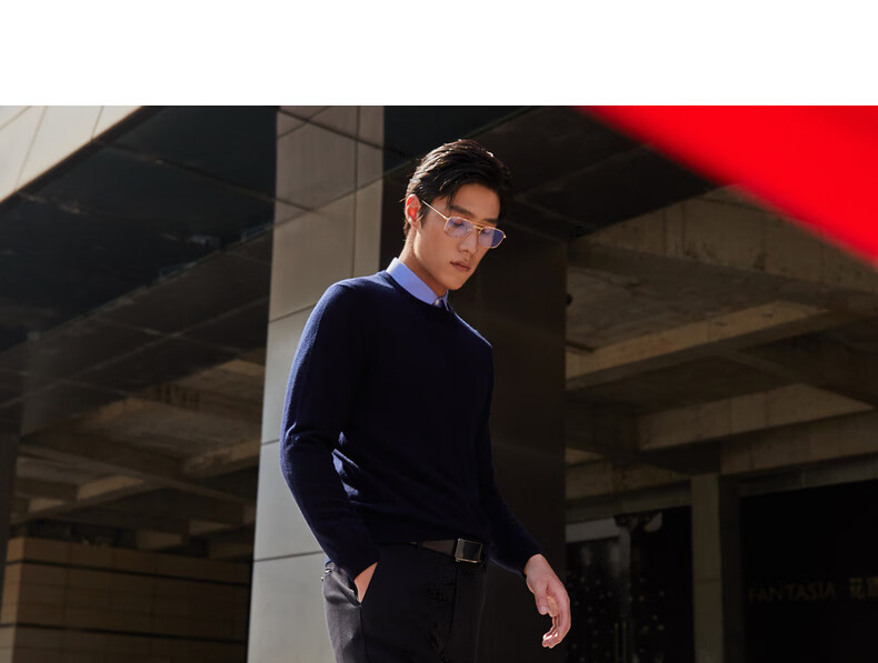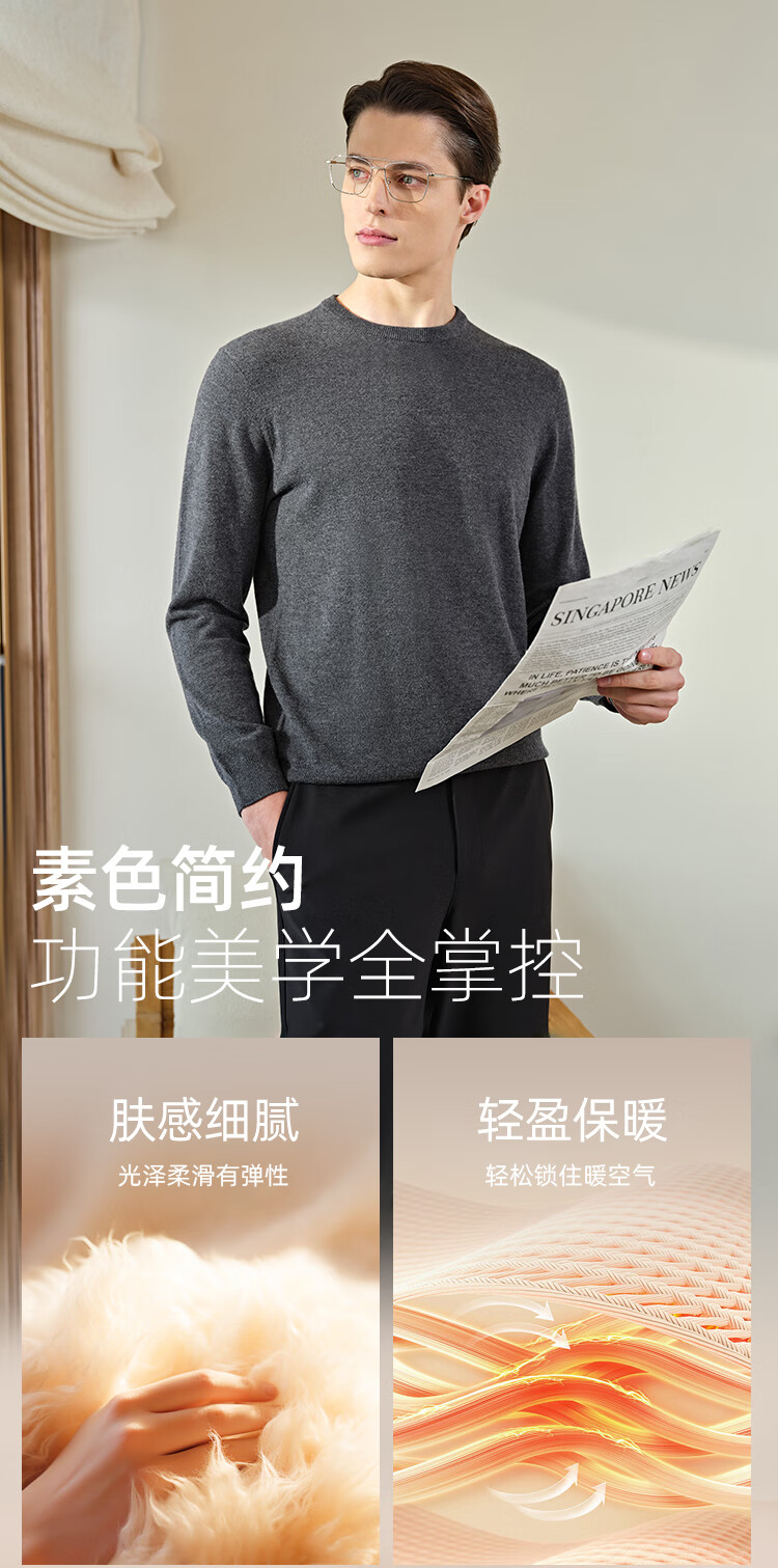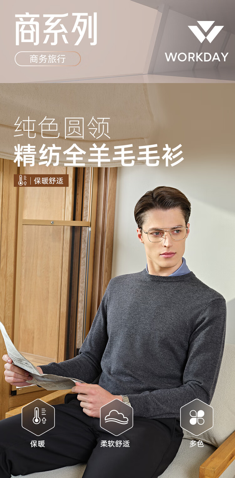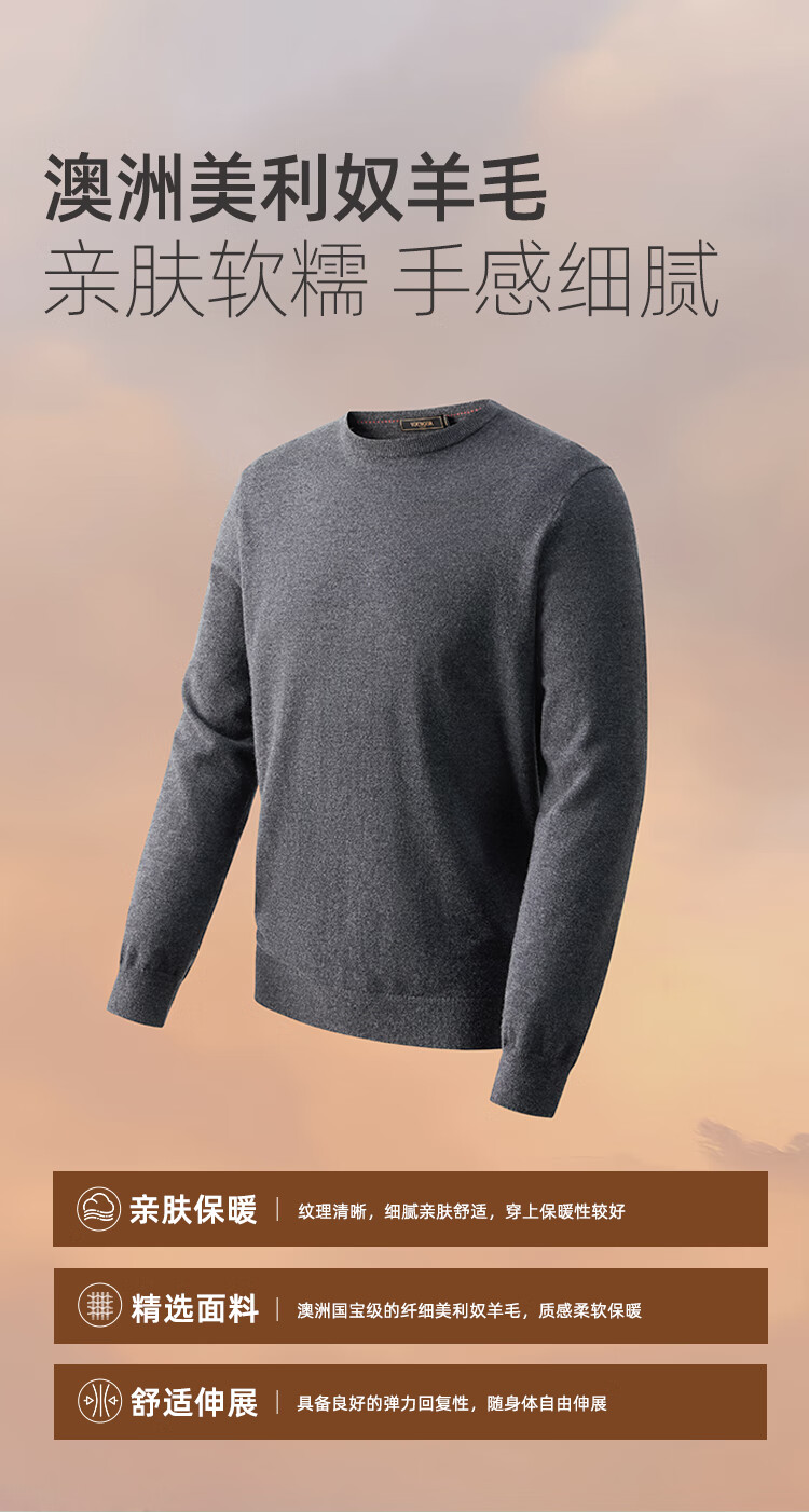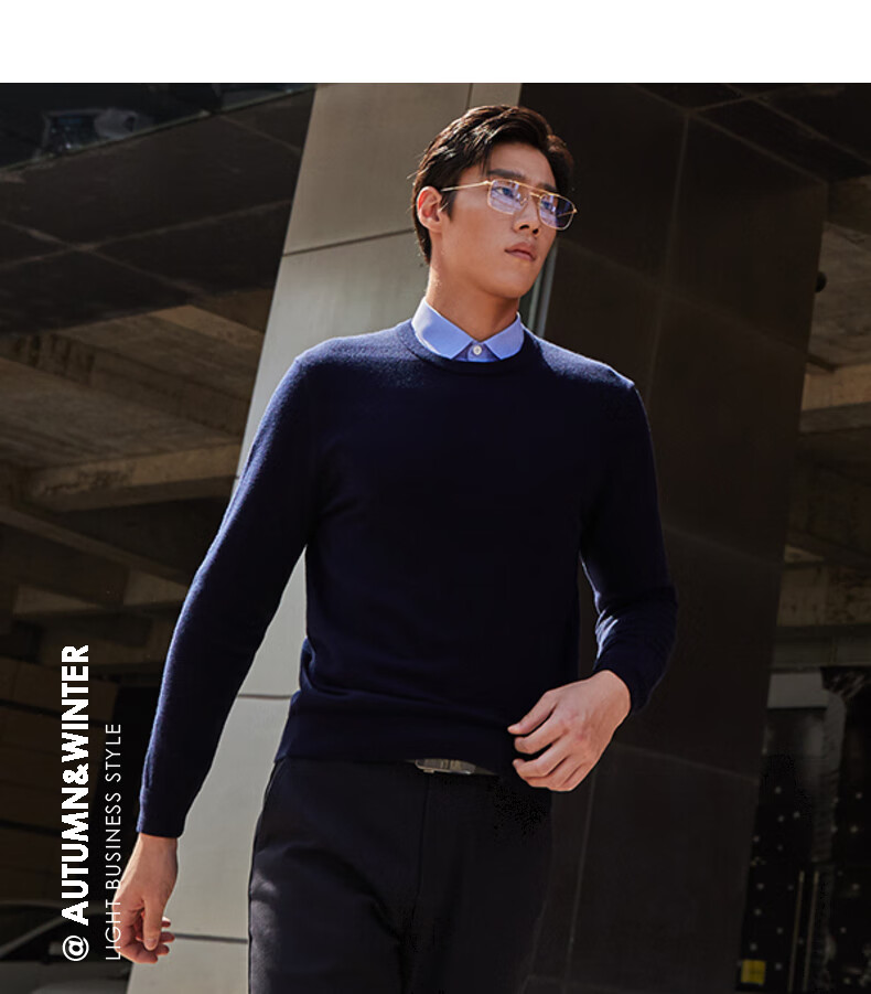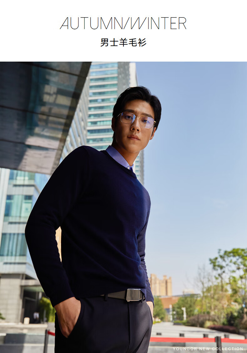Youngor (YOUNGOR) wool sweater for men, all-sheep wool sweater, comfortable and warm, moderate thickness, warm and comfortable, can be worn with a lapel shirt VYQW639994FYA Navy L 105cm
