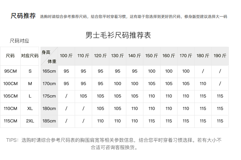 China (cm) 165 / 88-90 170 / 96-98 175 / 108-110 180 / 118-122 185 / 126-130