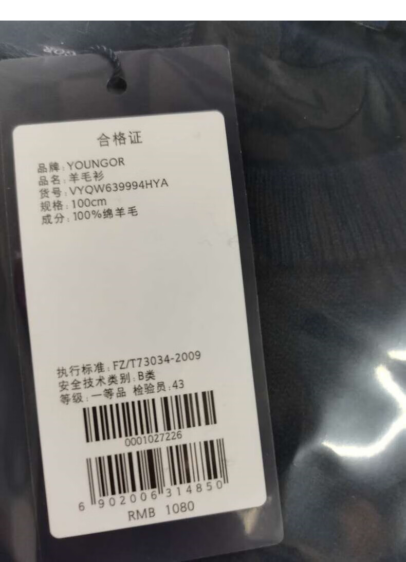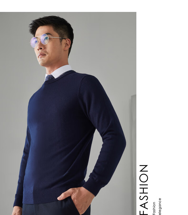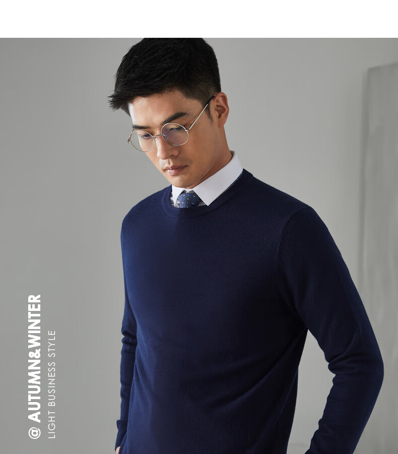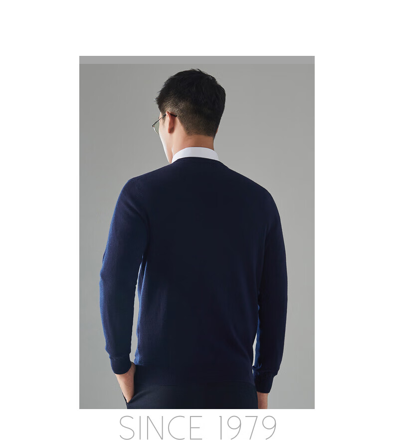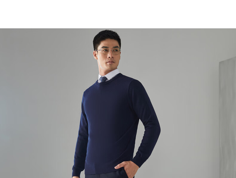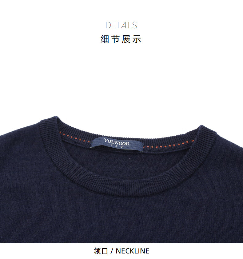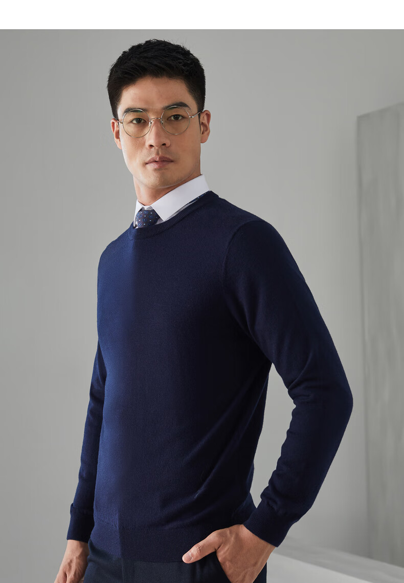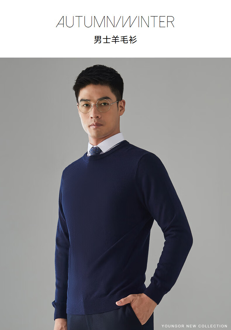YOUNGOR wool sweater men's round neck all-sheep wool sweater comfortable, warm and moderately thick blue L 105c