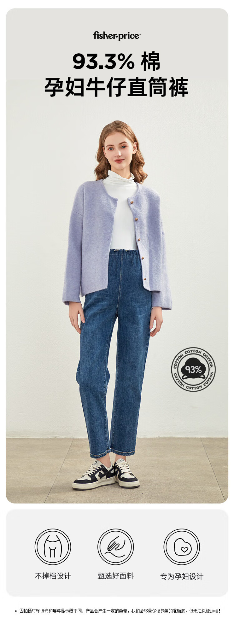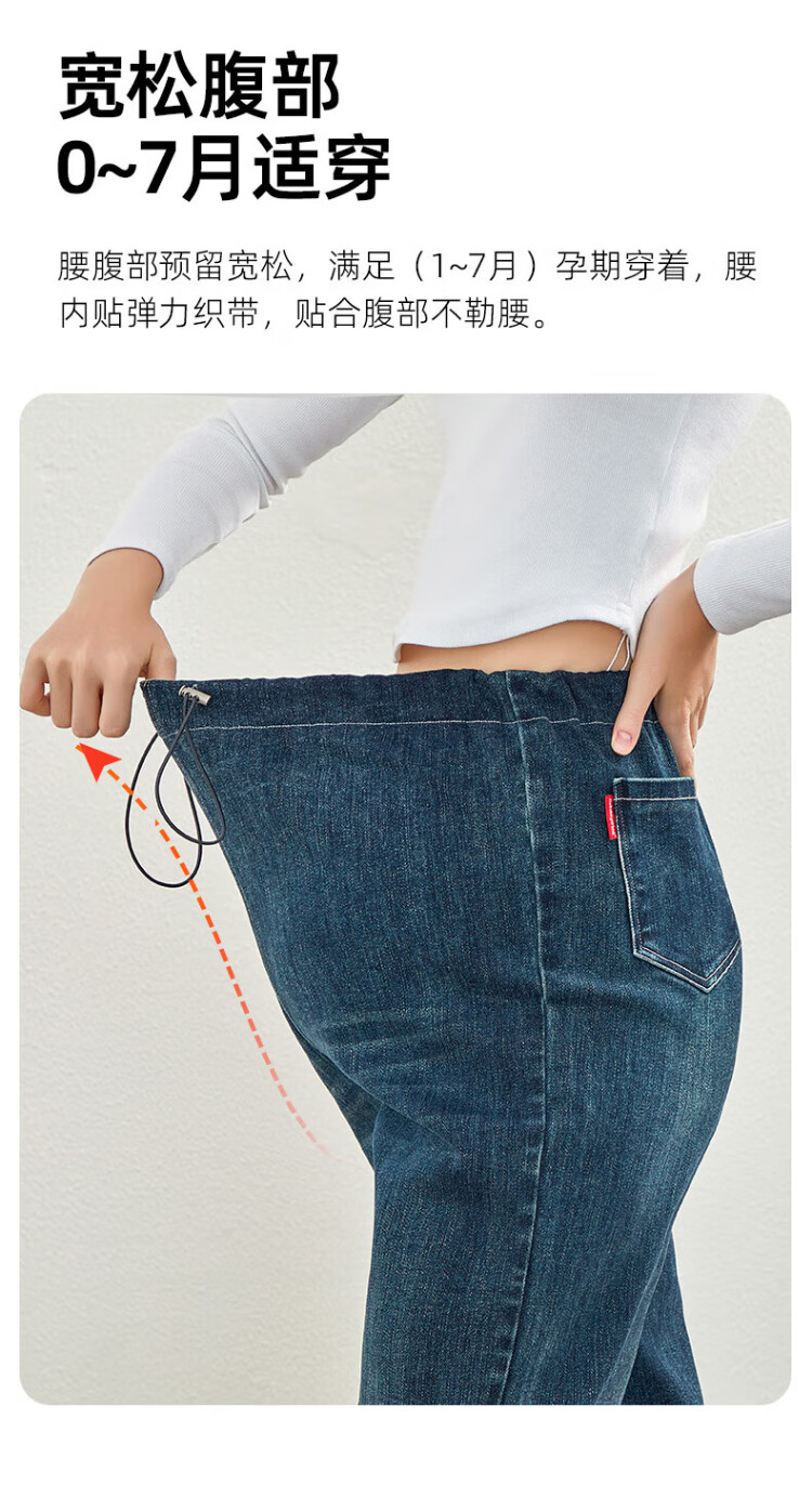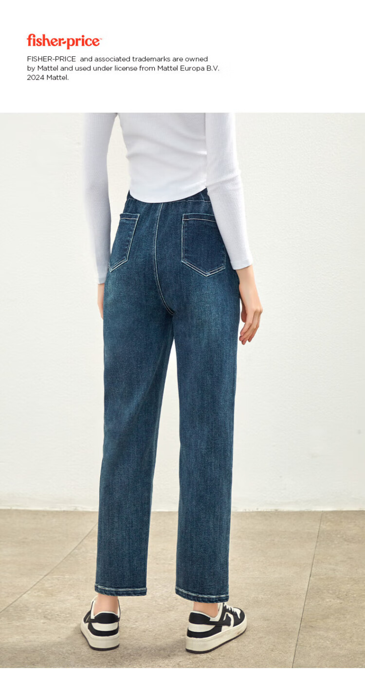 Fisher-Price maternity jeans 2025 spring and autumn new outer wear large size unsupported belly casual straight pants dark blue M