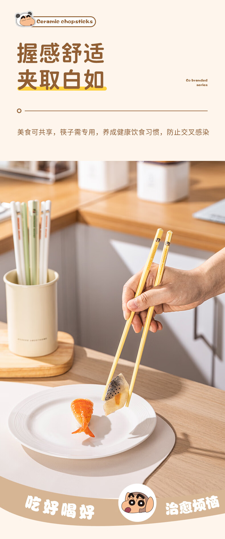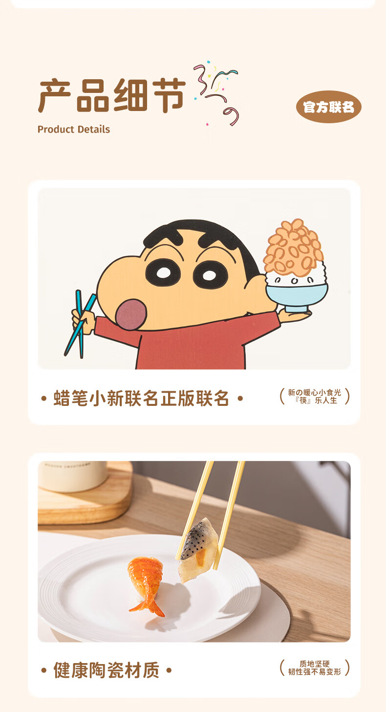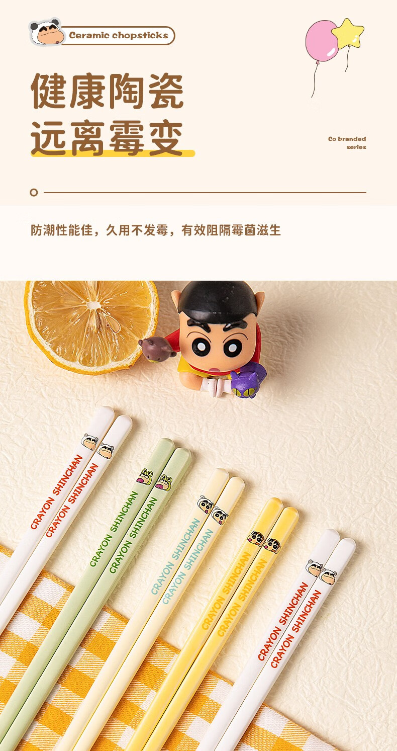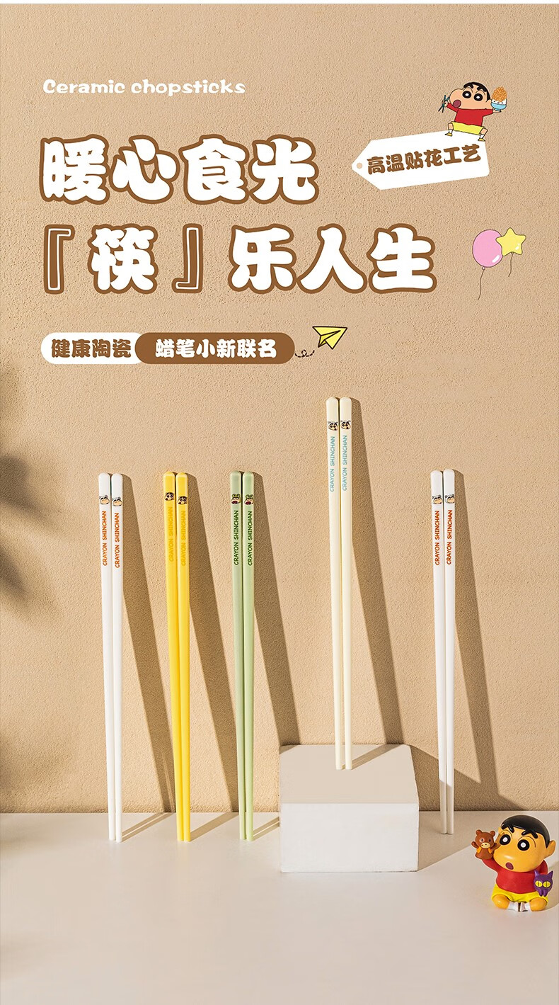 Modern Housewife Crayon Shin-chan Ceramic Chopsticks for Household New Style, One Chopstick for One Person and High-Value Family - 5 Pairs