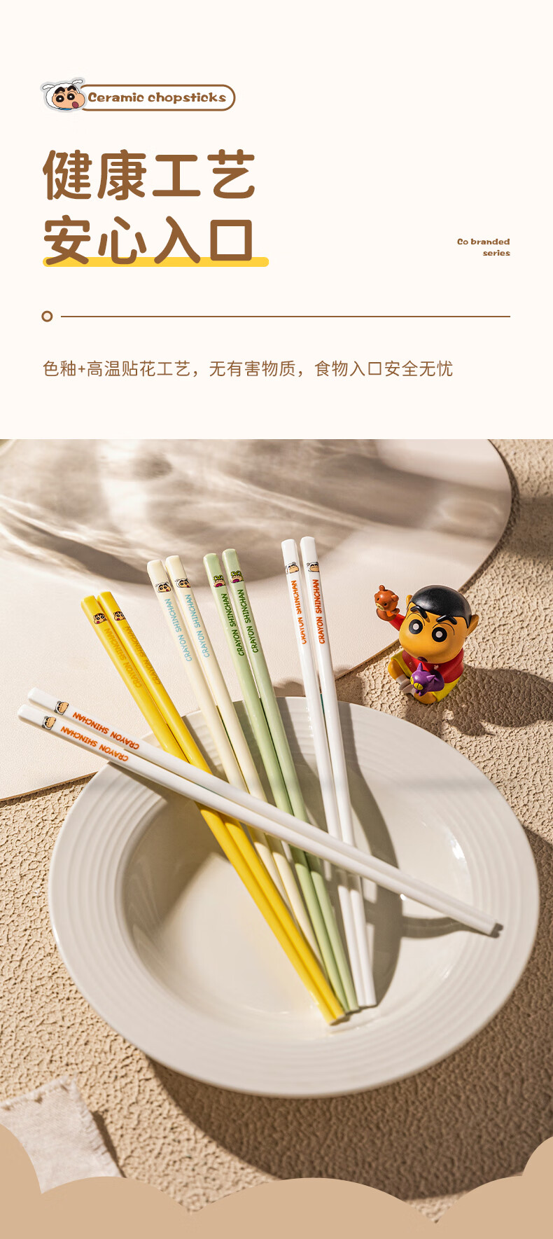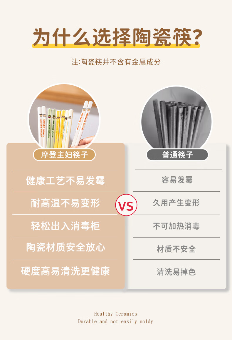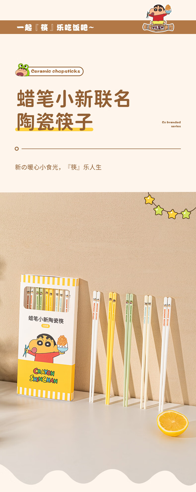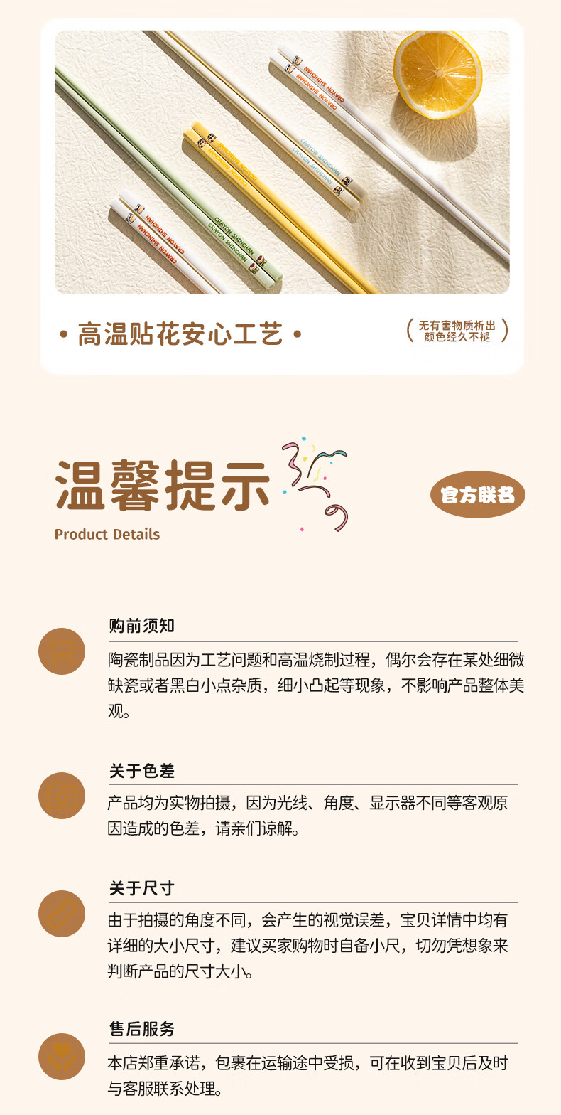 Modern Housewife Crayon Shin-chan Ceramic Chopsticks for Household New Style, One Chopstick for One Person and High-Value Family - 5 Pairs