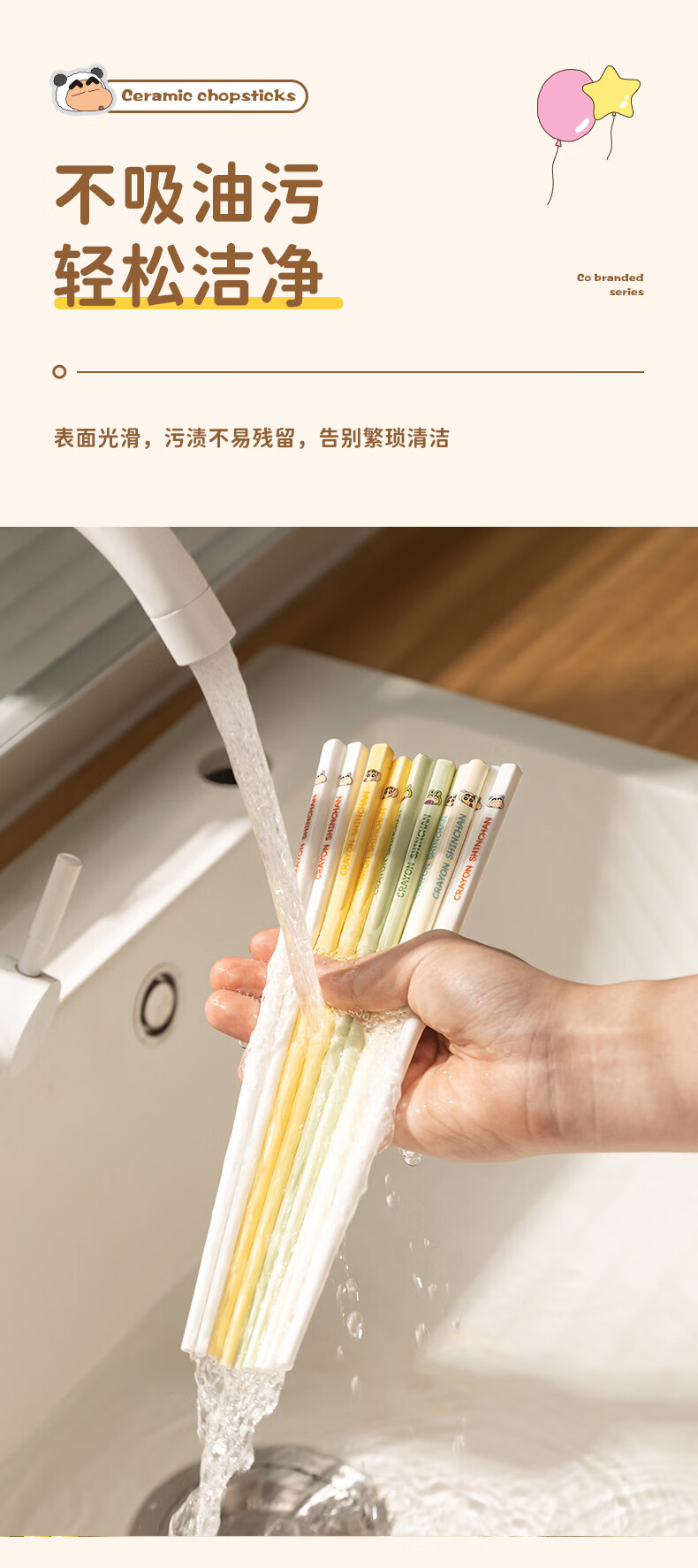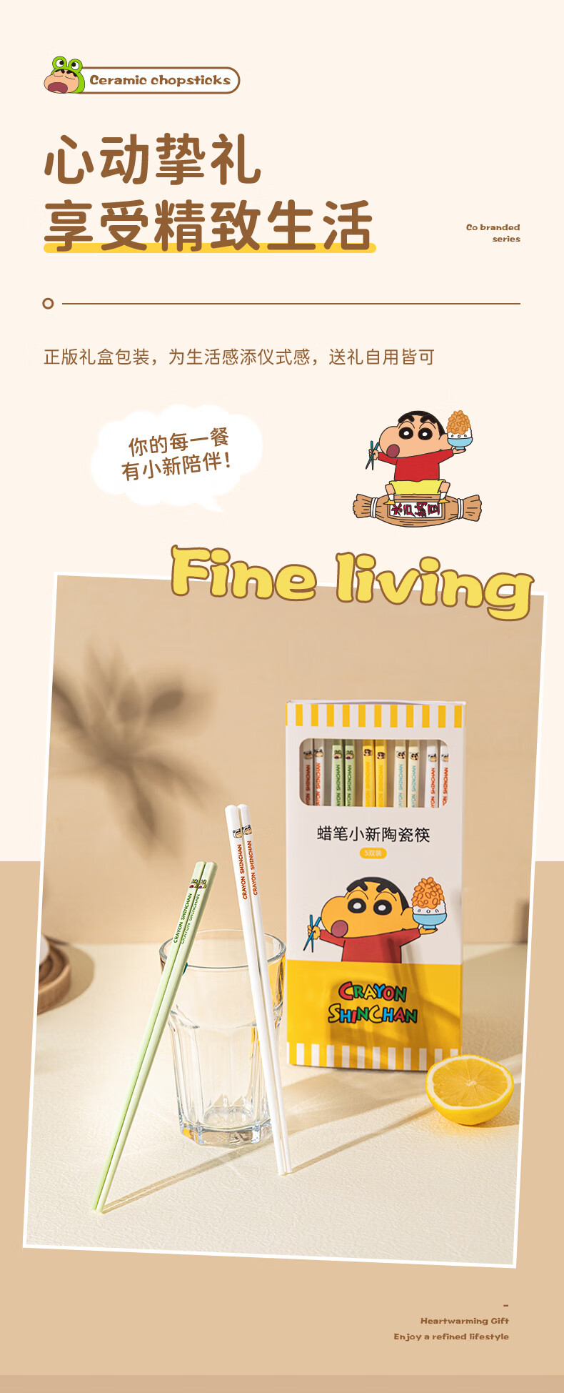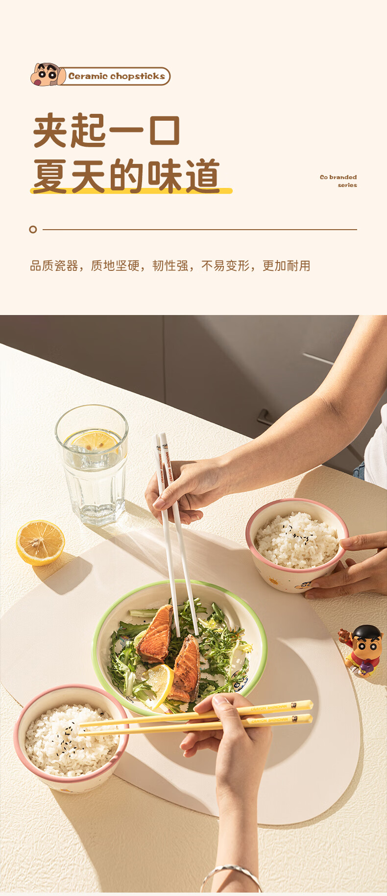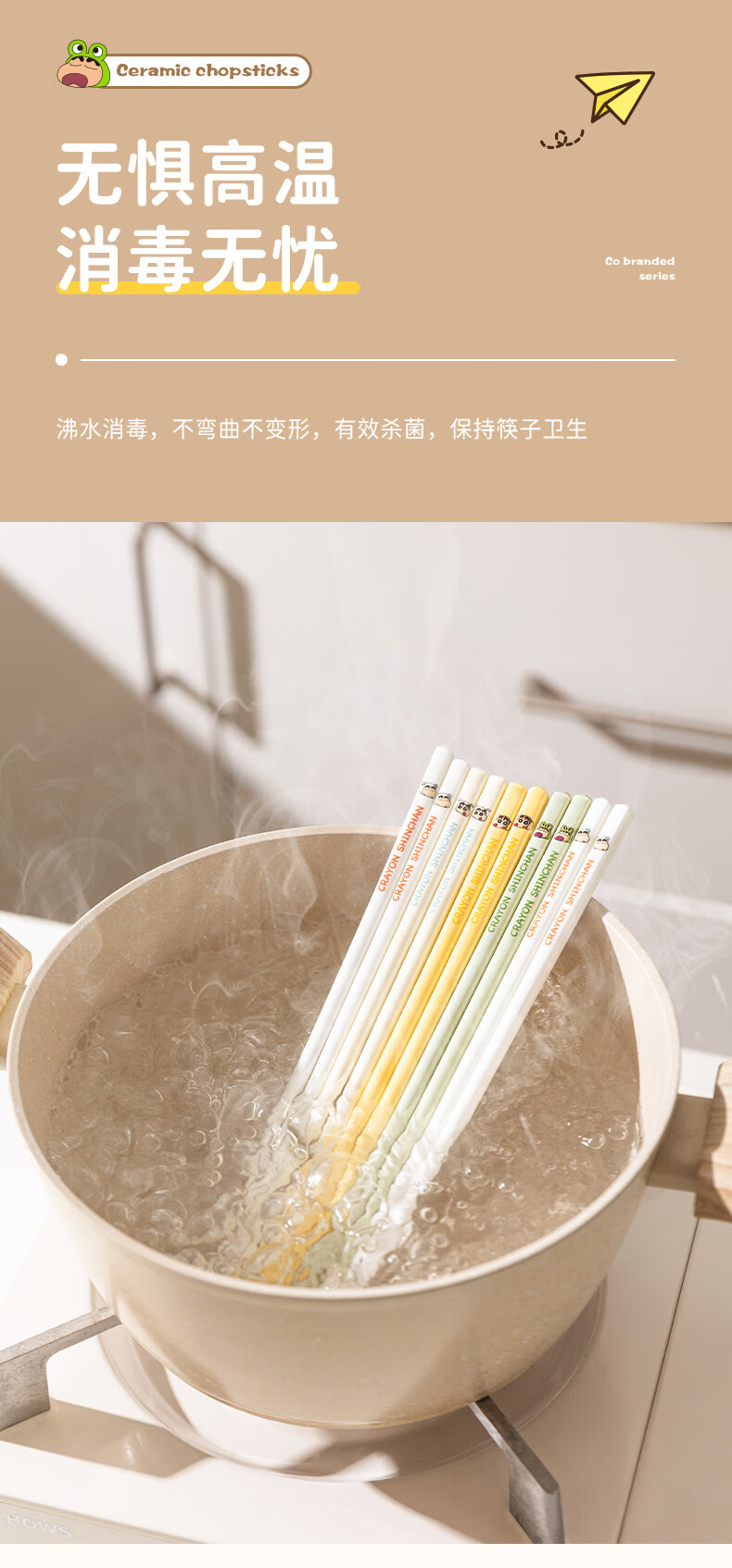 Modern Housewife Crayon Shin-chan Ceramic Chopsticks for Household New Style, One Chopstick for One Person and High-Value Family - 5 Pairs