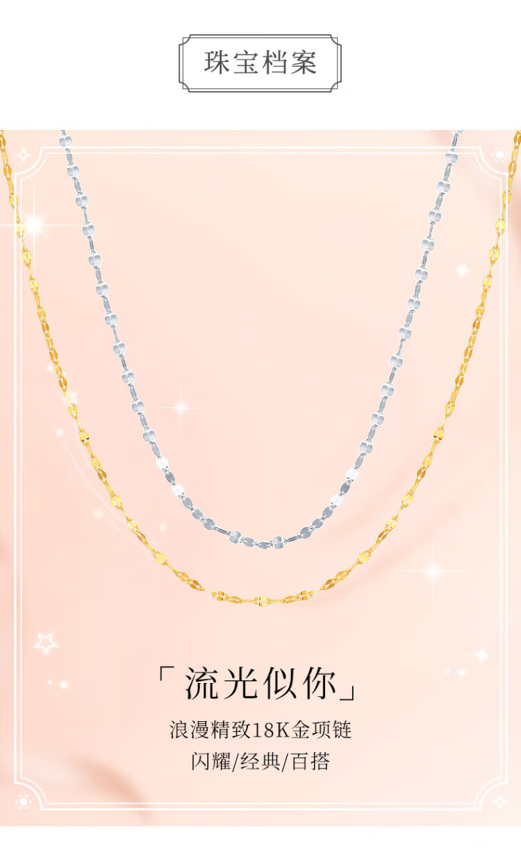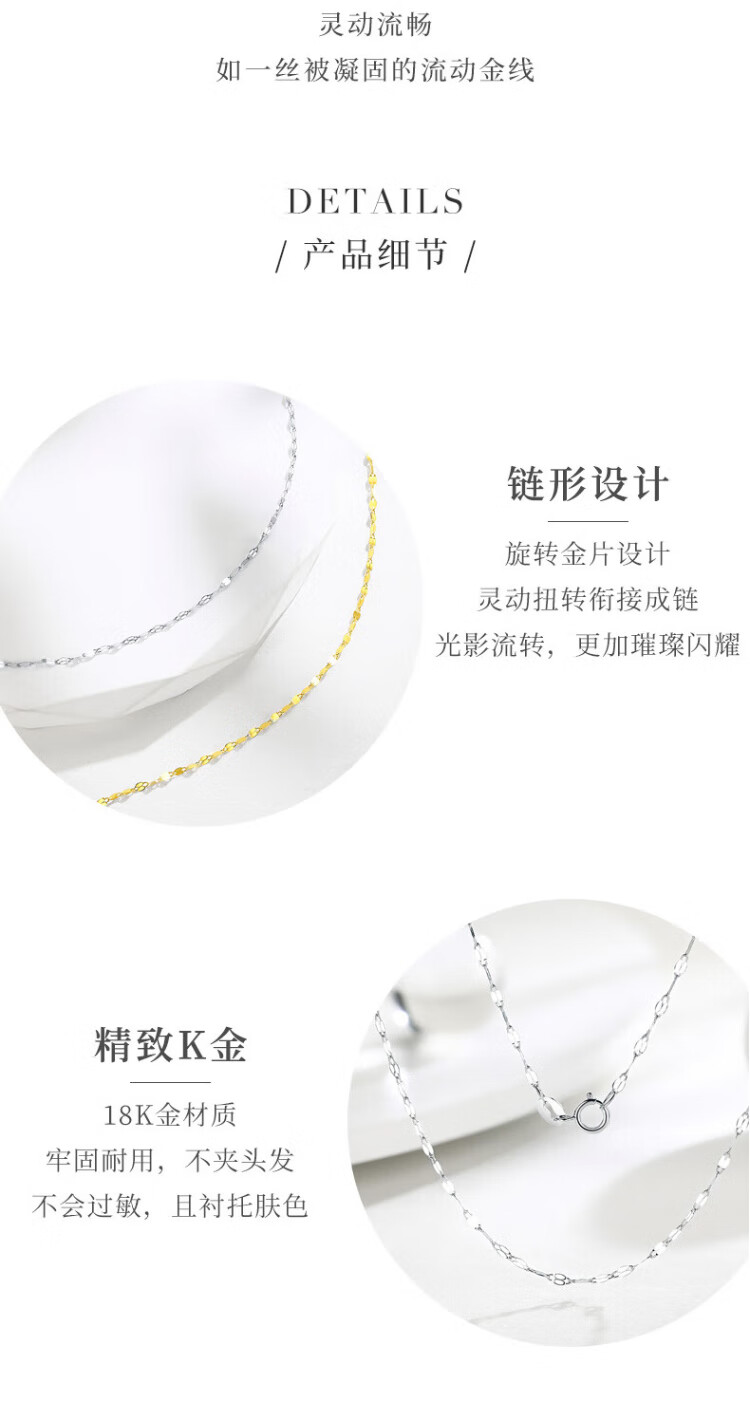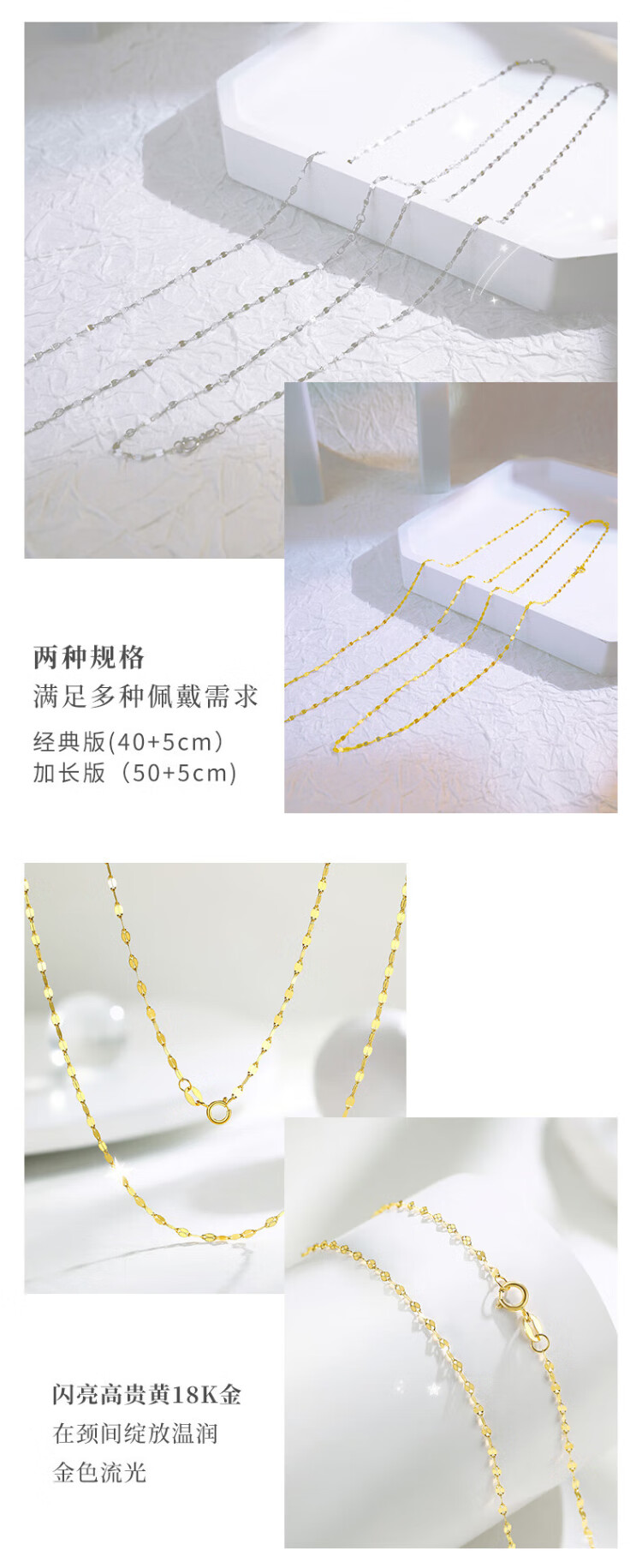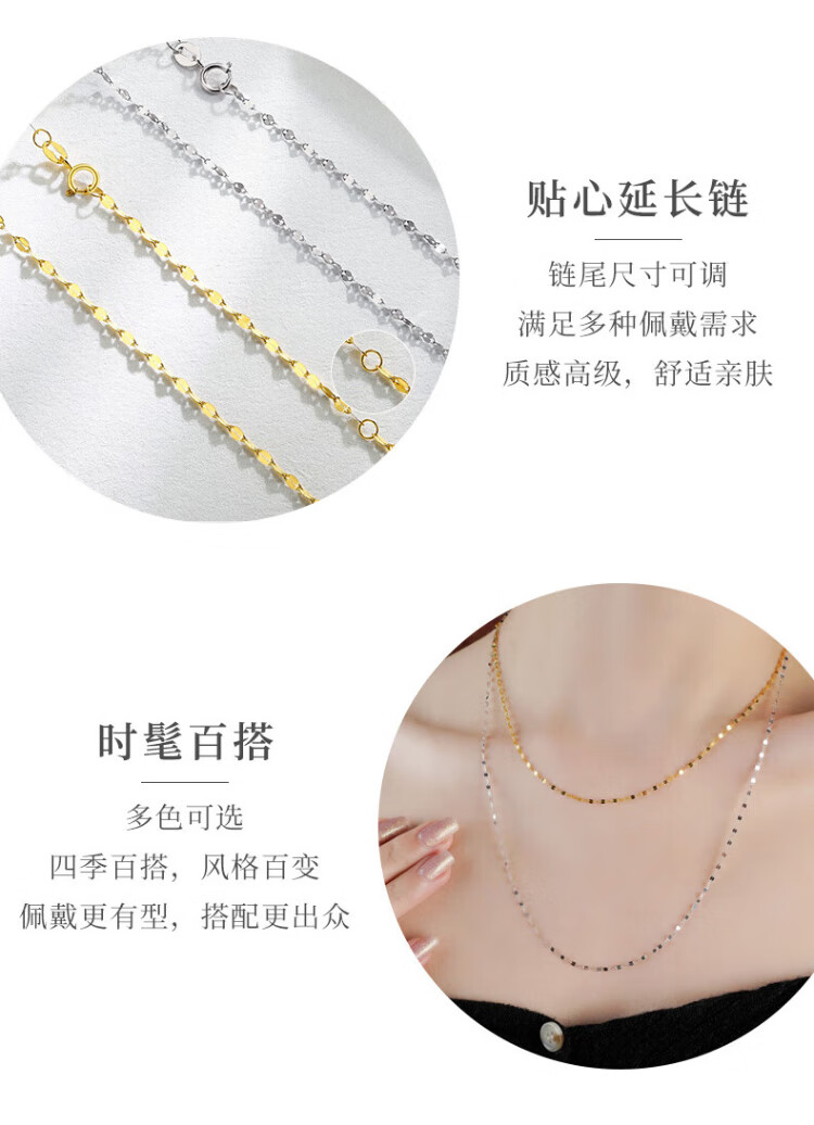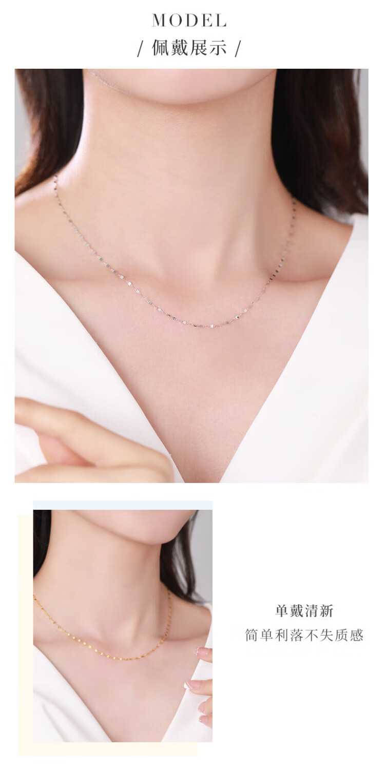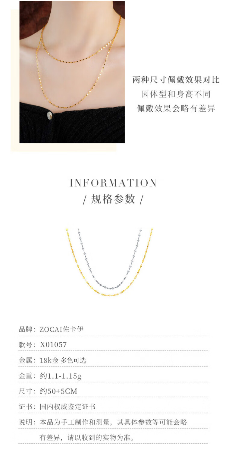 Zokai yellow 18K gold necklace plain gold chain versatile lip chain with chain birthday gift X01057