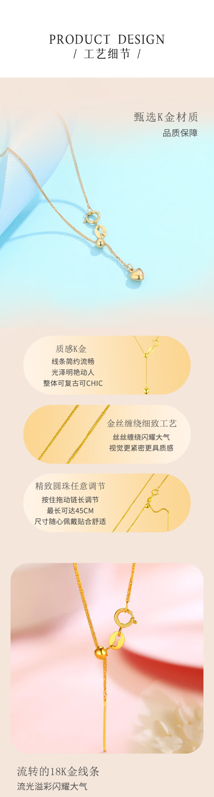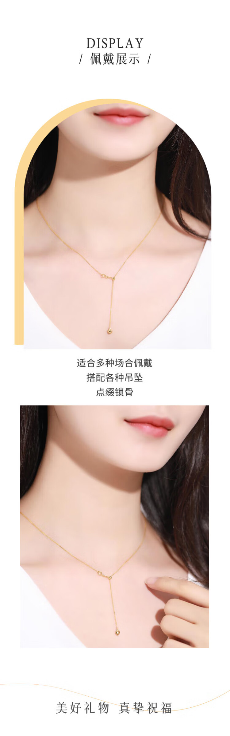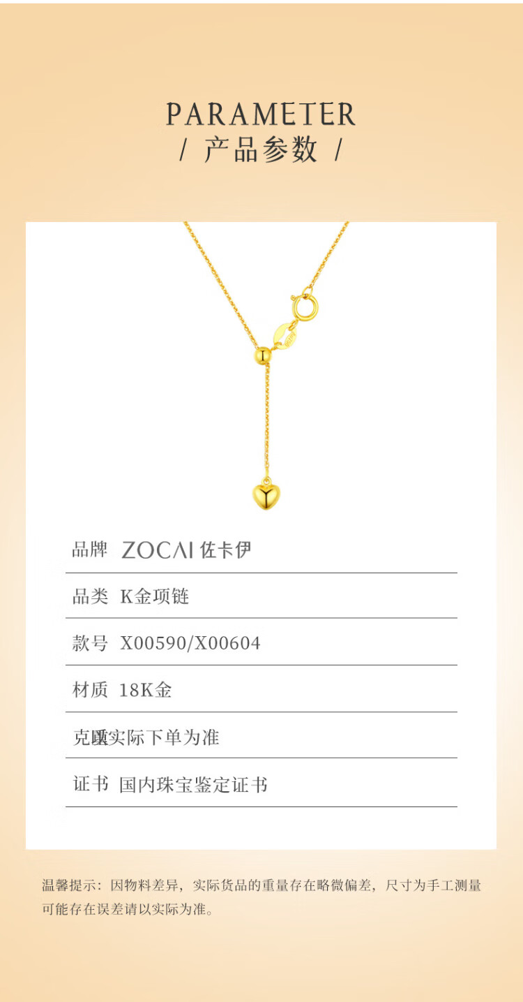 Zokai yellow 18K gold necklace plain gold chain versatile Chopard chain zipper with chain birthday gift X00590