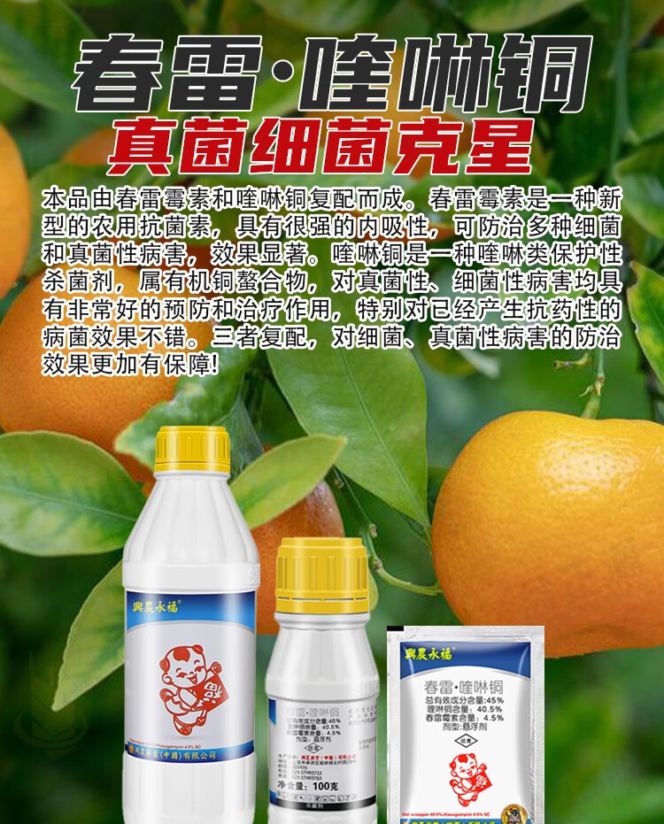 Xingnong Yongfu 45% Kasugamycin Quinoline Copper Xingnong Citrus Canker Watermelon Bacterial Angular Spot Fungicide Pesticide 1000g