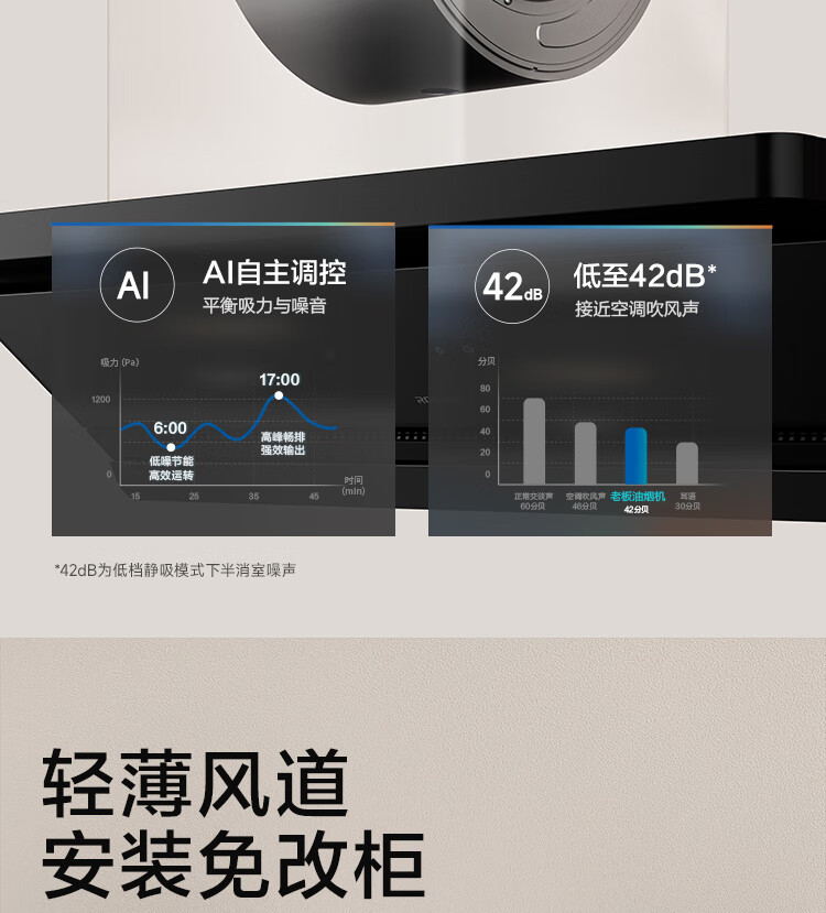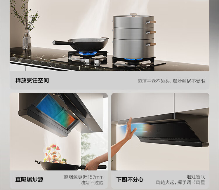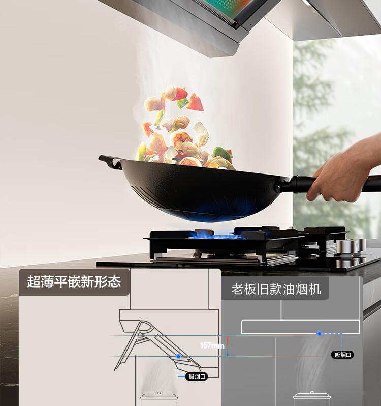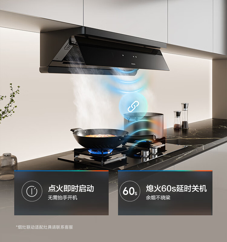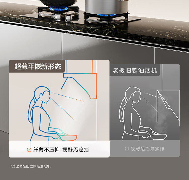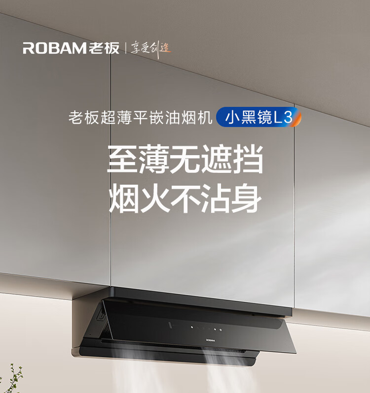 Boss stove-linked small black mirror L3 suction range hood. Highly recommended set for only 4598. Ultra-thin flat-embedded 66X7-L3 top side integrated household 27 large suction power.