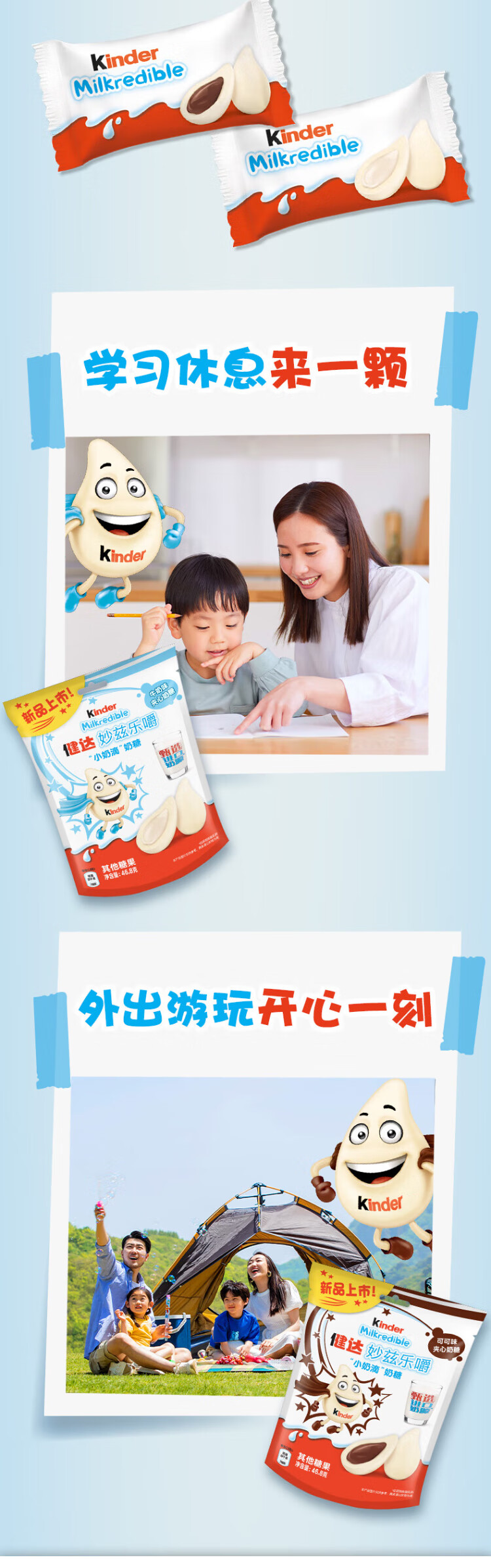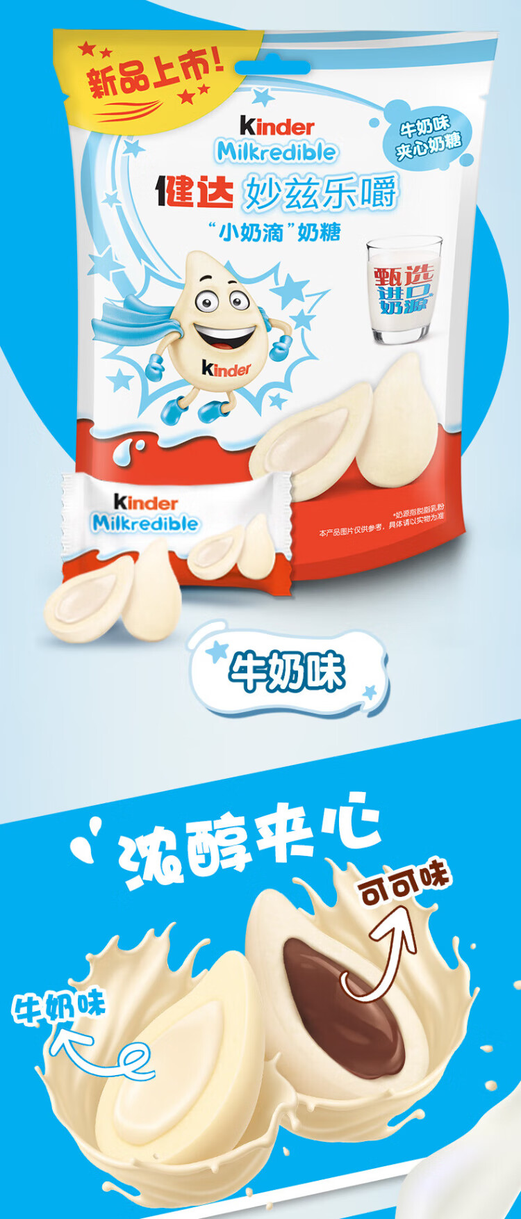 Kinder Milk Drops Sandwich Milk Candy Milk Flavor 12 pieces 46.8g Snacks Imported Milk Candy