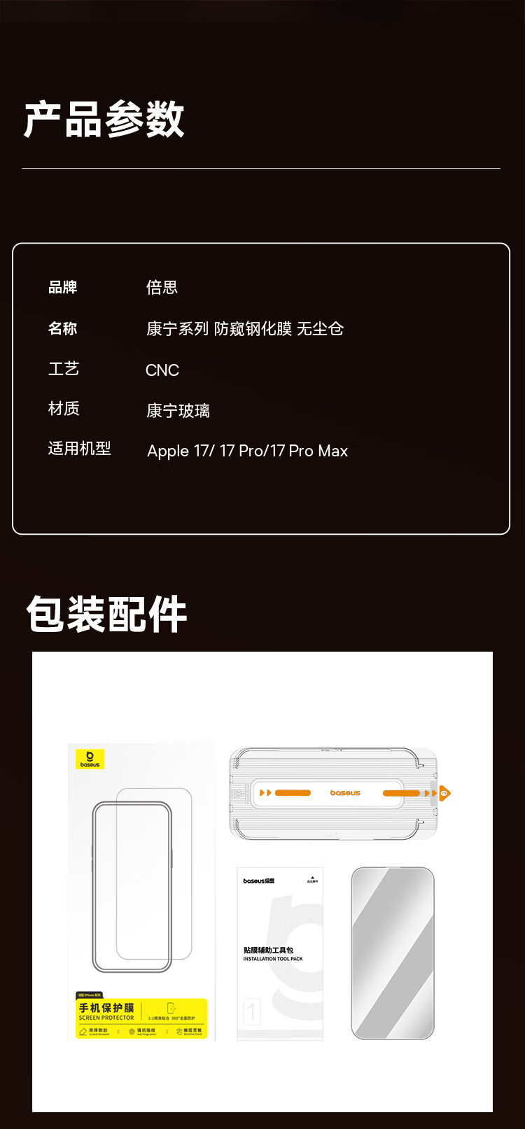 Baseus 28 Anti-Peeping丨Corning Film Suitable for iPhone17Promax Tempered Film Apple 17promax Anti-Peeping Film 17promax Mobile Phone Film Anti-fall Fingerprint Anti-Peeping