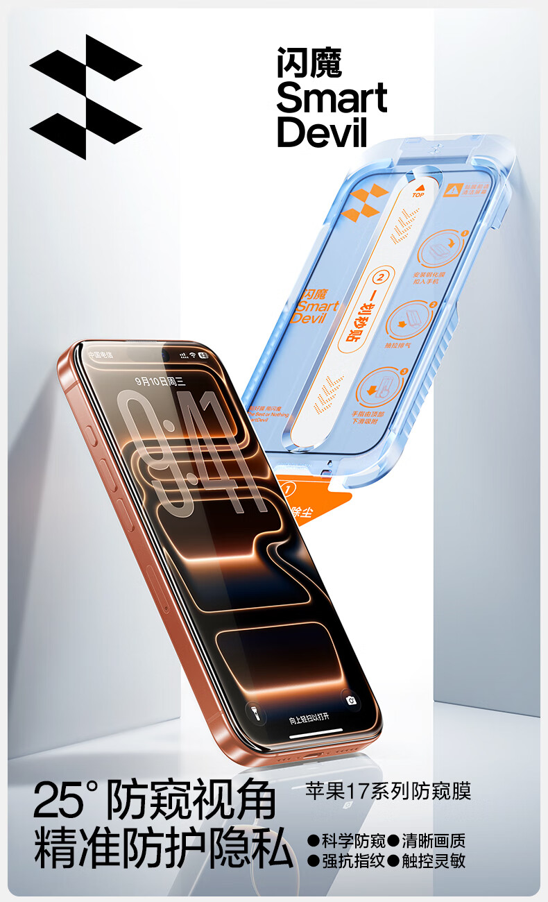 Flash Magic is suitable for Apple 17Pro anti-peeping tempered film iPhone17Pro mobile phone film, anti-peeping, dust-proof, anti-fall, anti-fingerprint, full screen coverage, dust-free compartment protective film