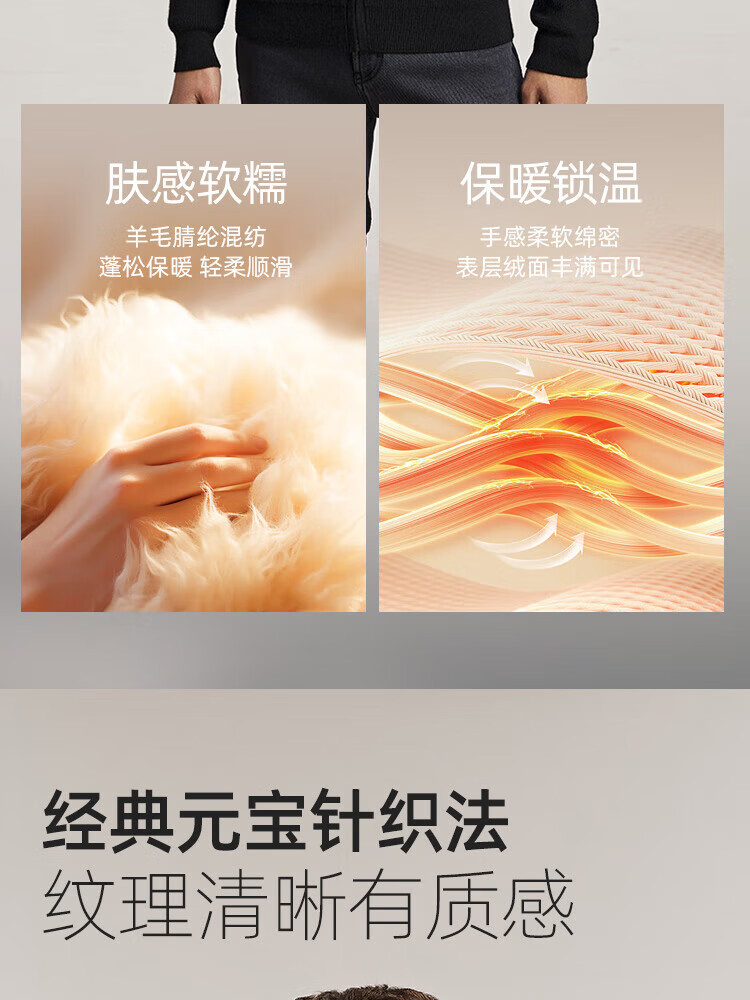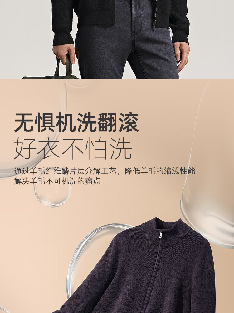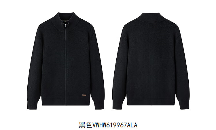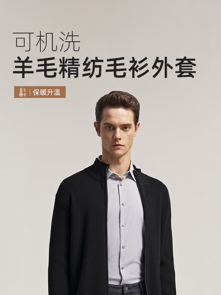 Youngor machine washable wool autumn and winter men's sweater warm stand collar solid color versatile cardigan jacket 619967