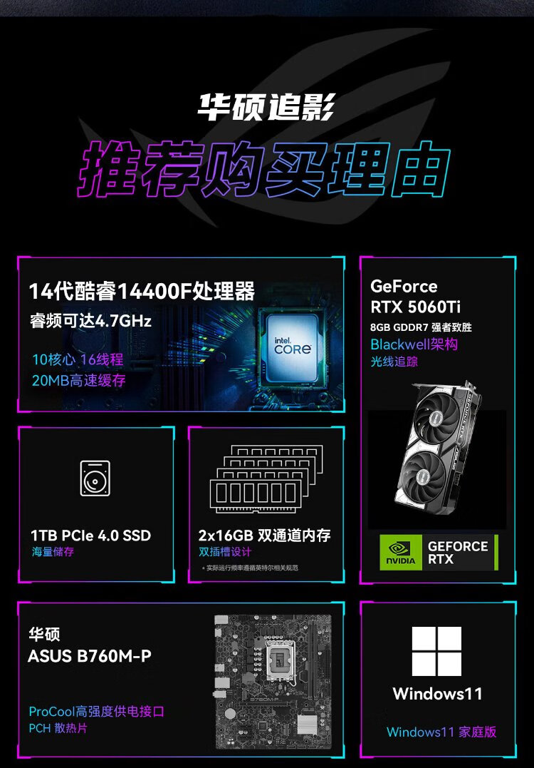 ASUS Family Bucket i5 14400F/RTX5060Ti/32G/1T gaming e-sports desktop complete designer assembled computer host