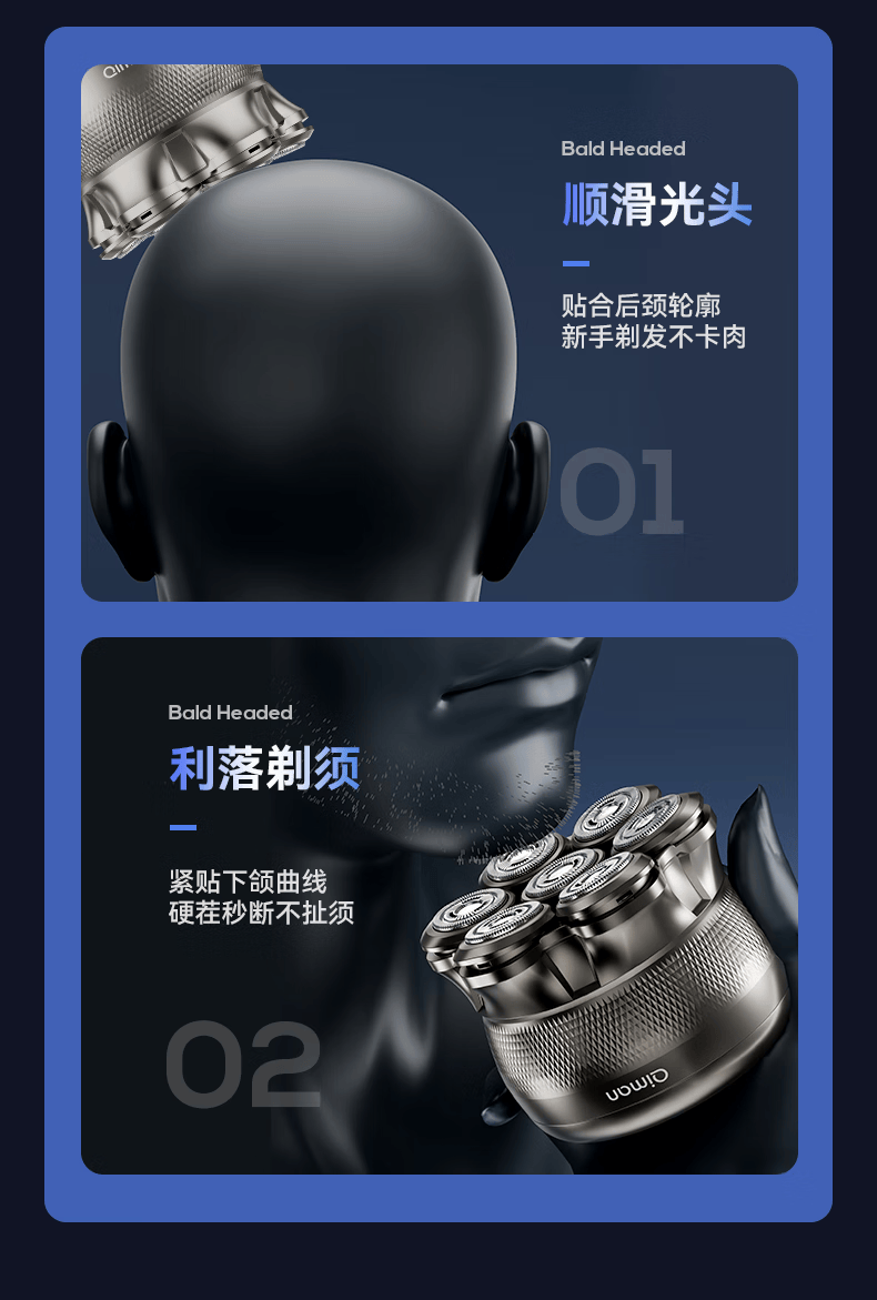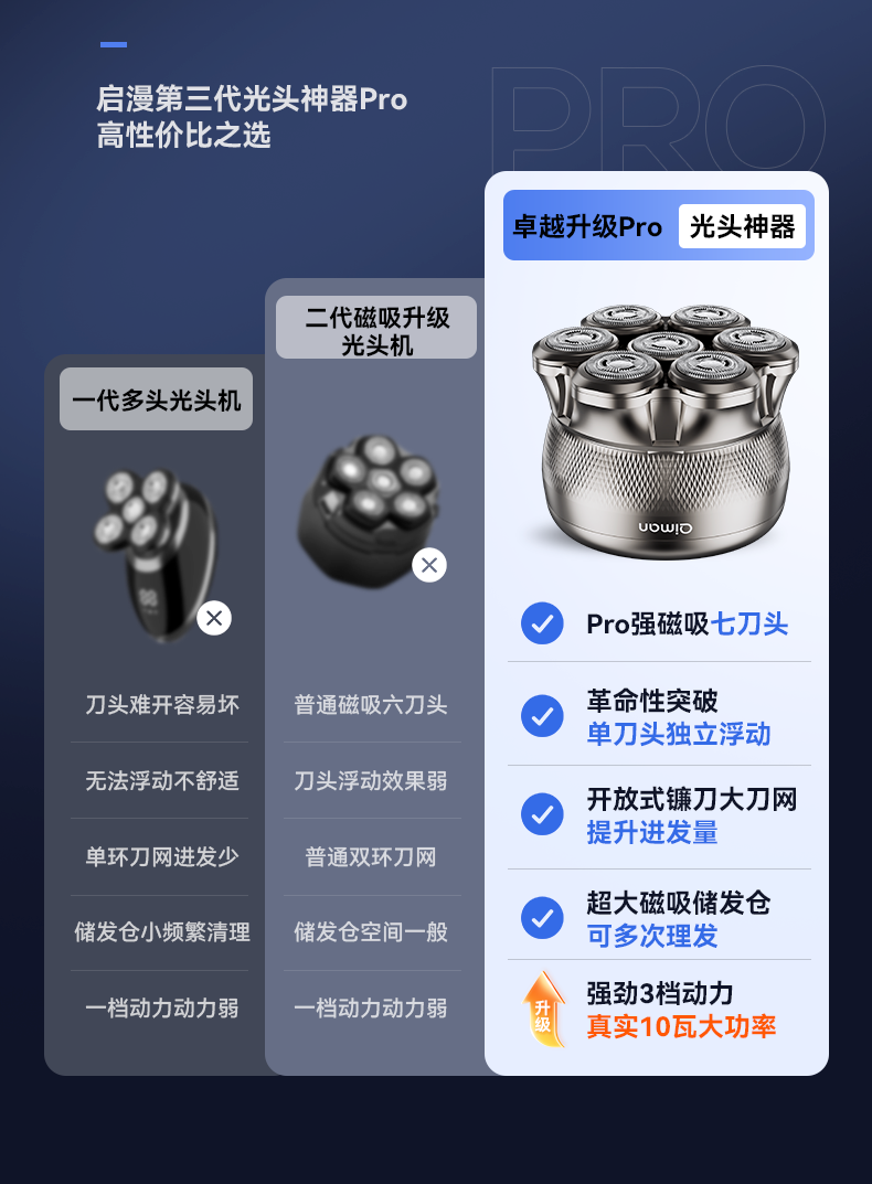 启漫光头神器剃光头专用自助理发器成人磁吸七刀头男士电动大功率剃须刀刮光头神器送爸爸父亲生日礼物