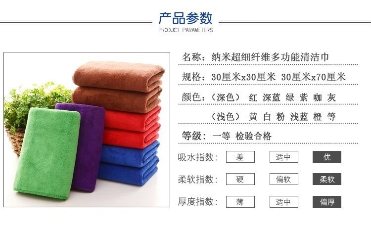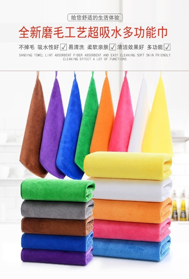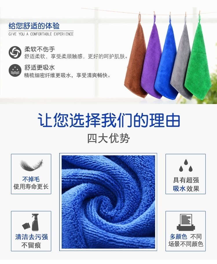 Five-color rags used in Lanbaihui Hotels, guest rooms, housekeeping cleaning, special hotel towel wiping cloths 30x30 medium thick coffee 10 pack