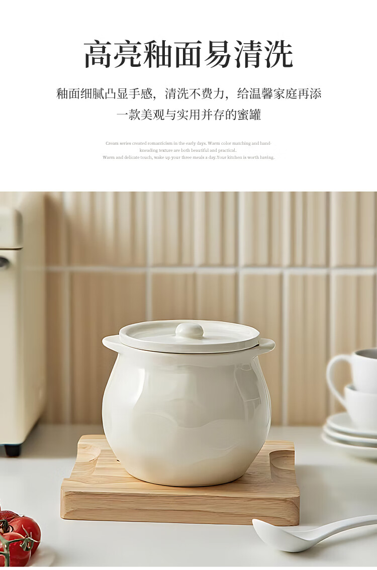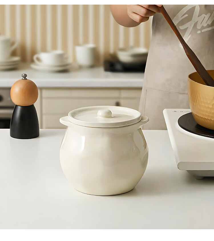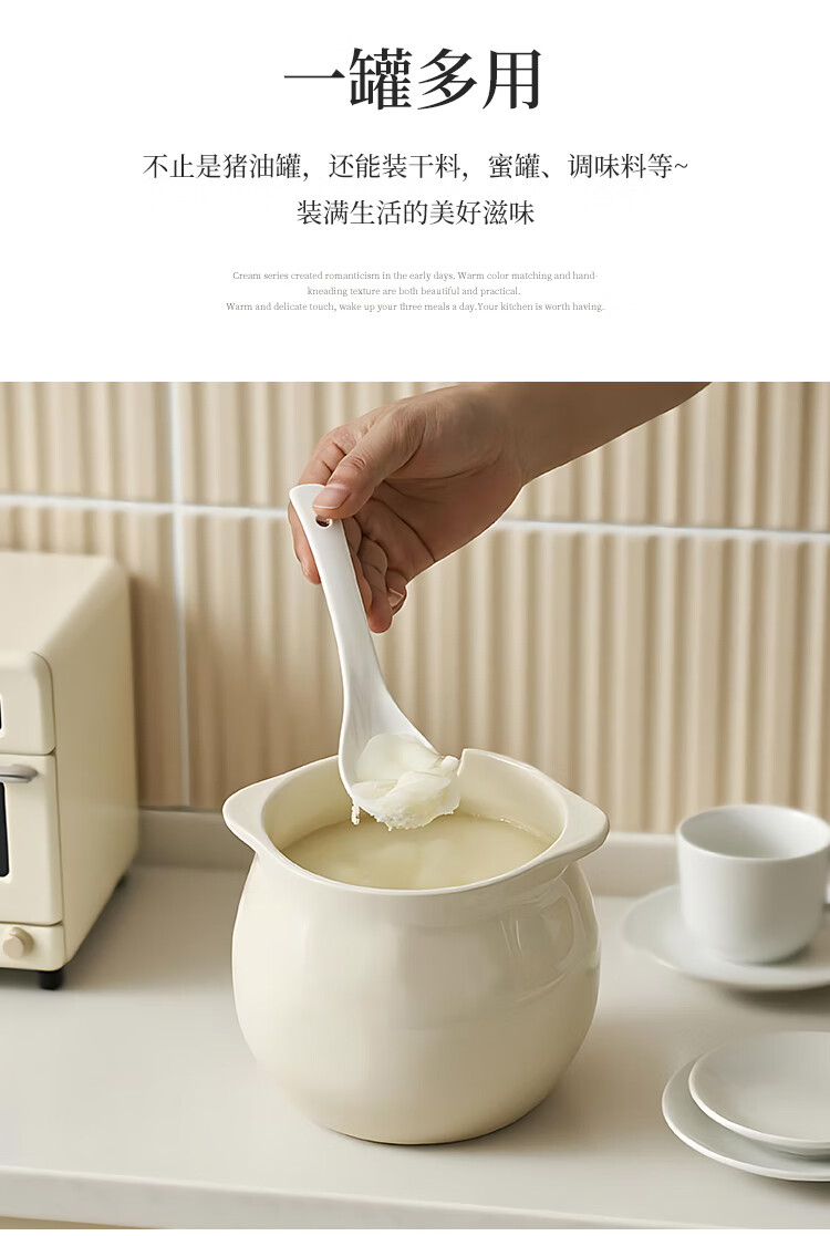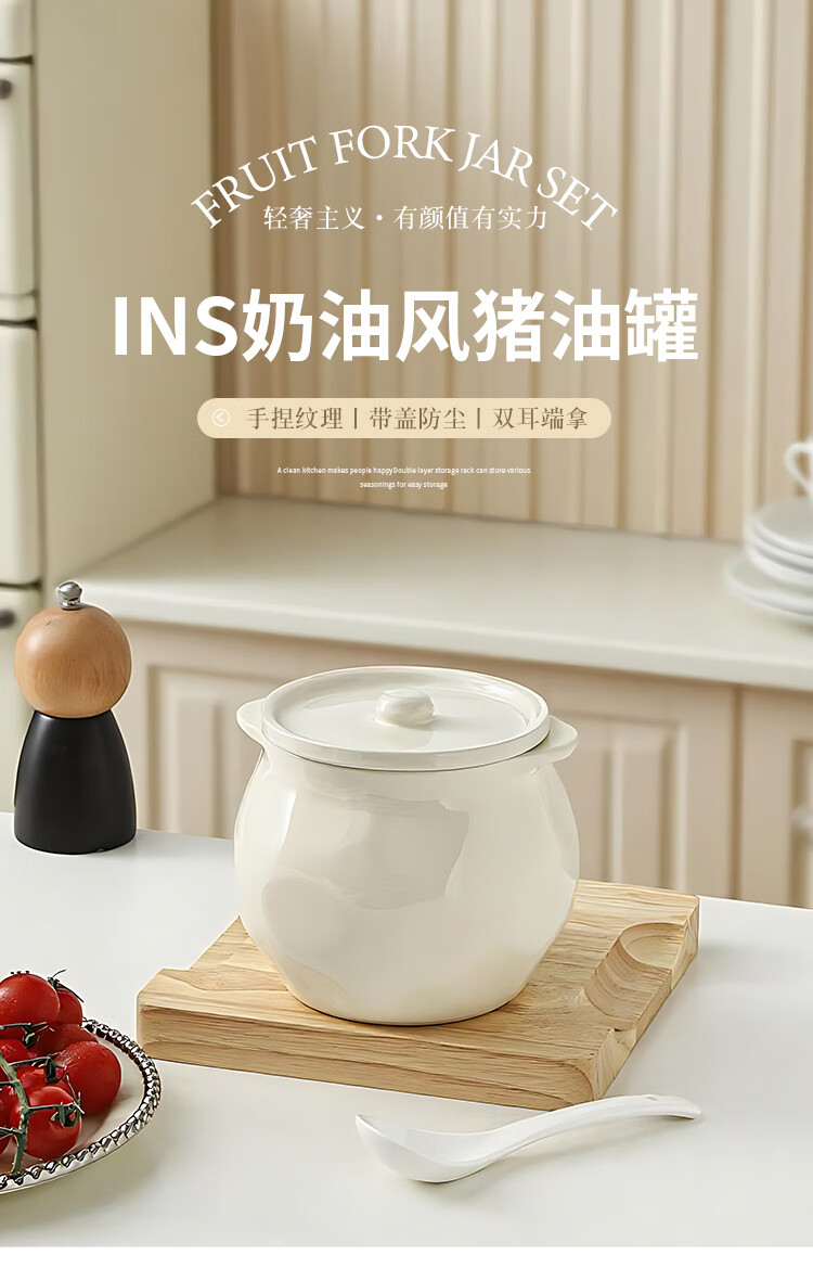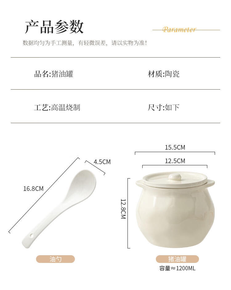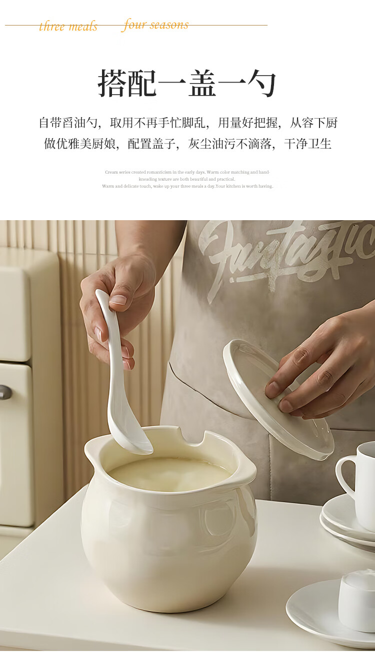 Linion ceramic lard jar 1200ml household kitchen high temperature resistant seasoning jar with lid chili oil jar oil salt jar seasoning jar