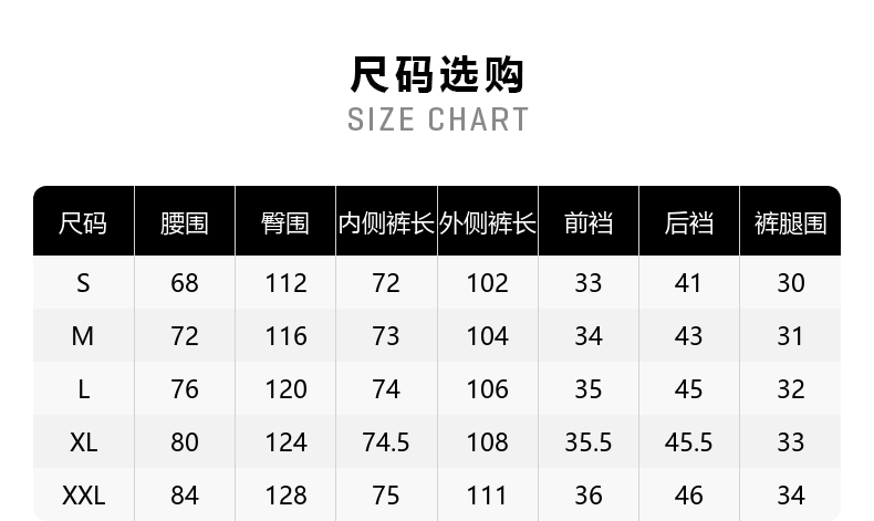 Outseam (cm) 99 cm 101.5 cm 104 cm 106.5 cm 109 cm