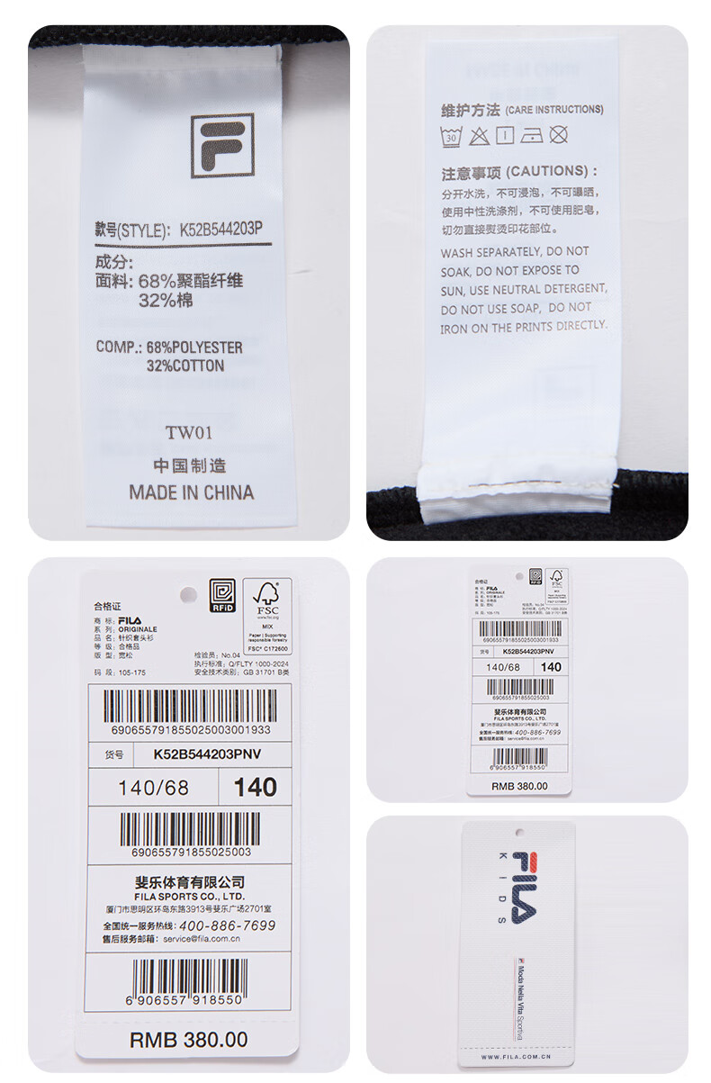 FILA antibacterial function FILA children's sweatshirts 2025 winter fleece tops for boys and girls