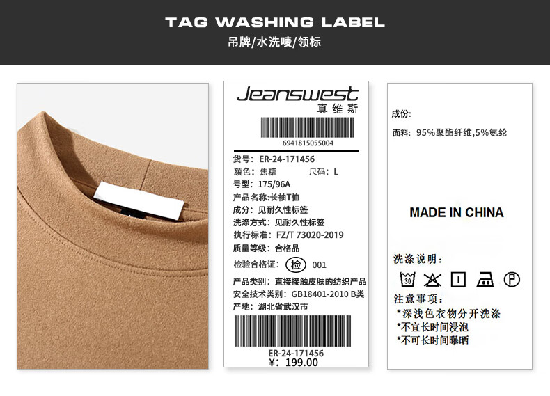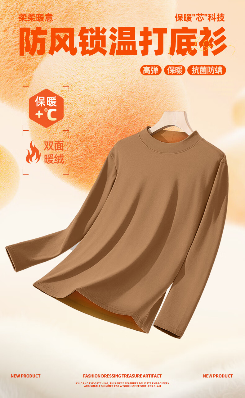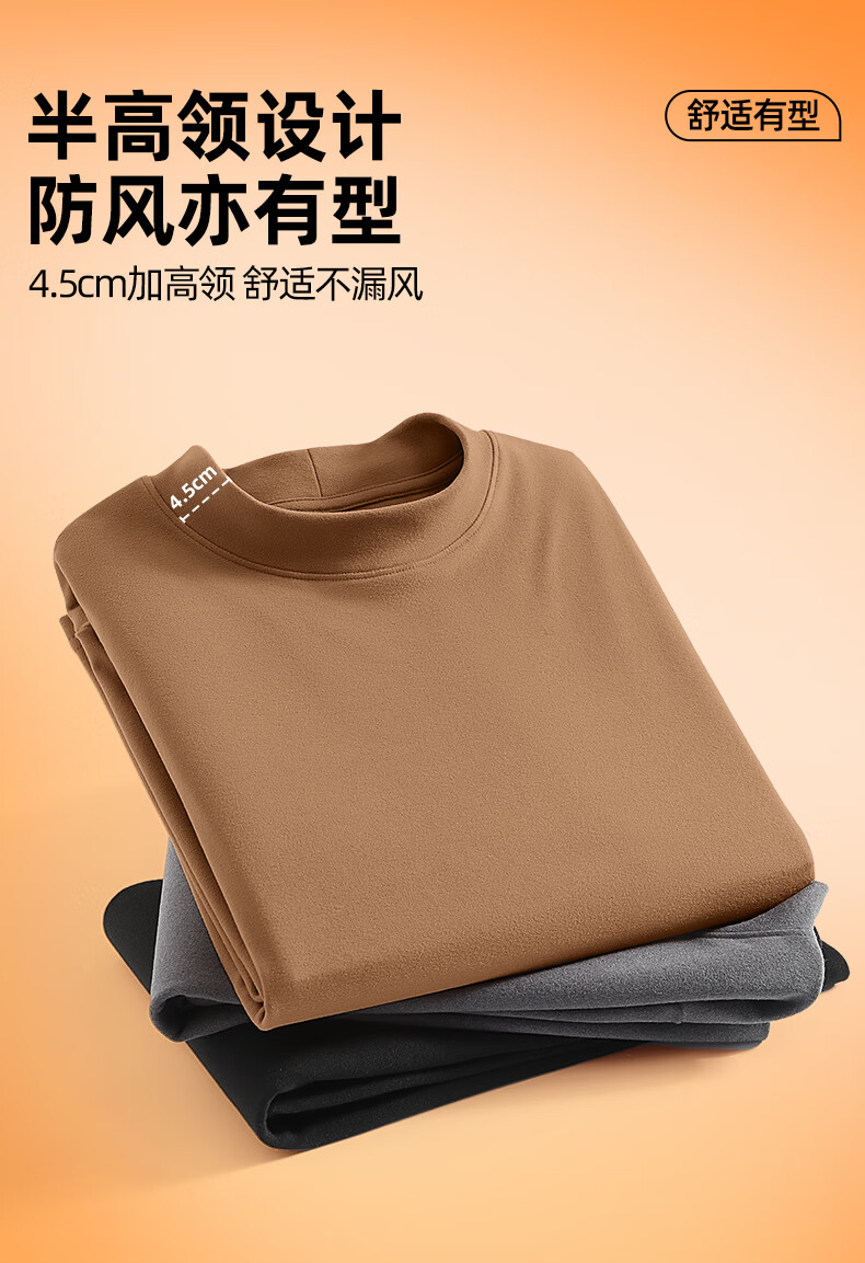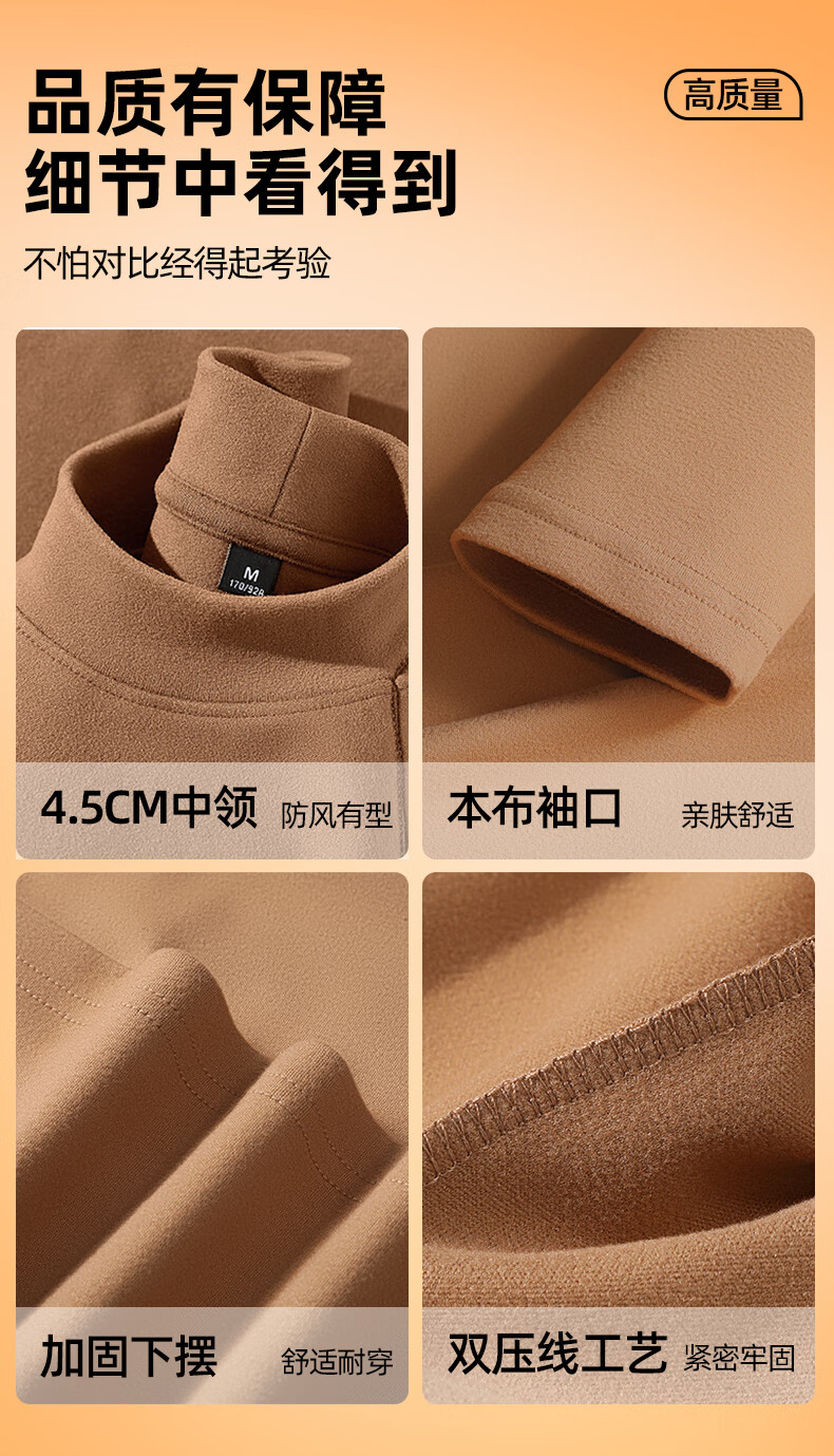 JEANSWEST LIFE Double-sided German velvet inner men's autumn and winter warm top half turtleneck skin-friendly long-sleeved T-shirt bottoming shirt