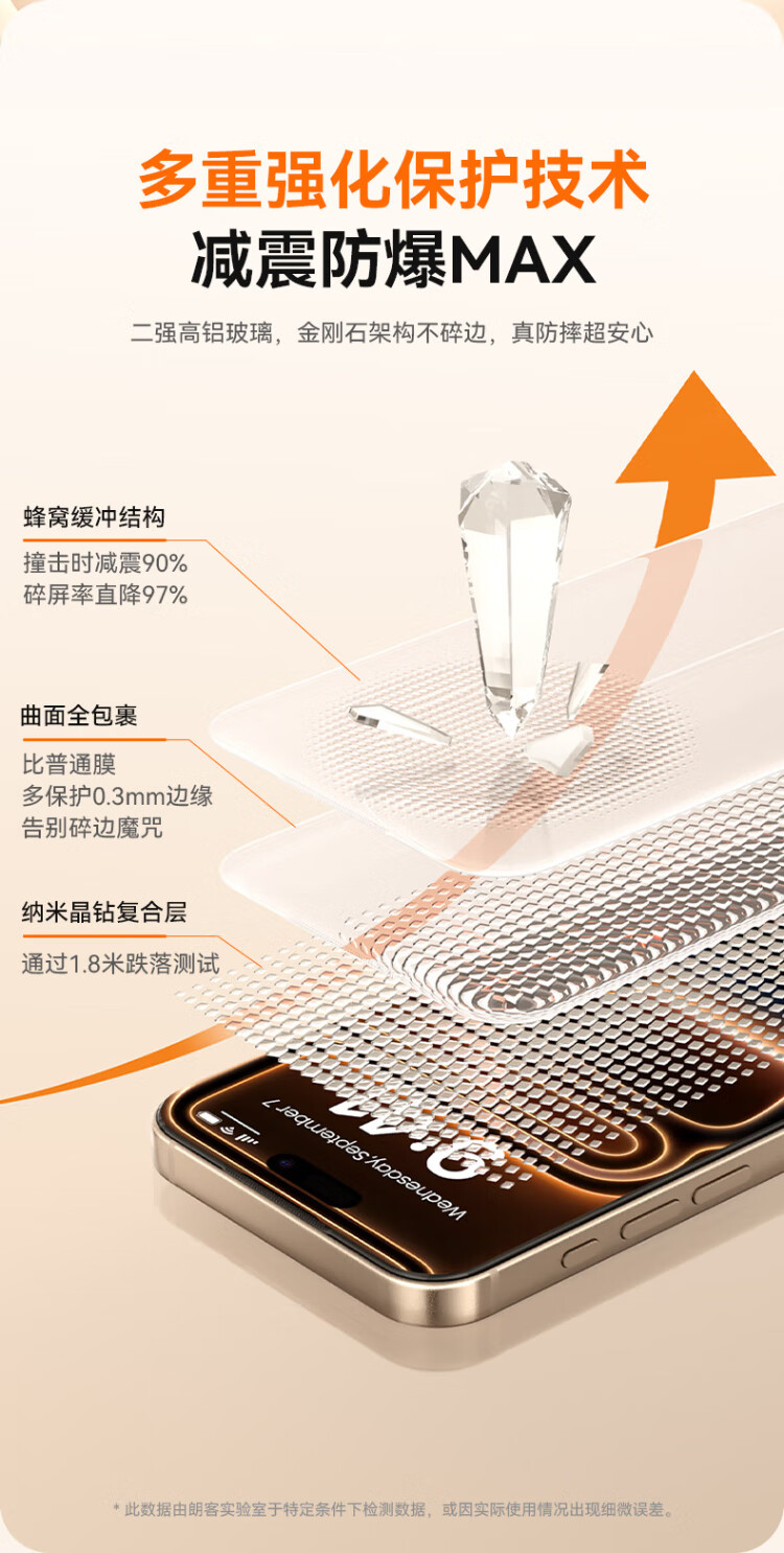 Langke AR anti-reflective + 0.1 ultra-thin suitable for iPhone17pro tempered film Apple 17Pro mobile phone film ultra-thin high-definition full screen anti-fingerprint anti-fall and explosion-proof dust-free warehouse